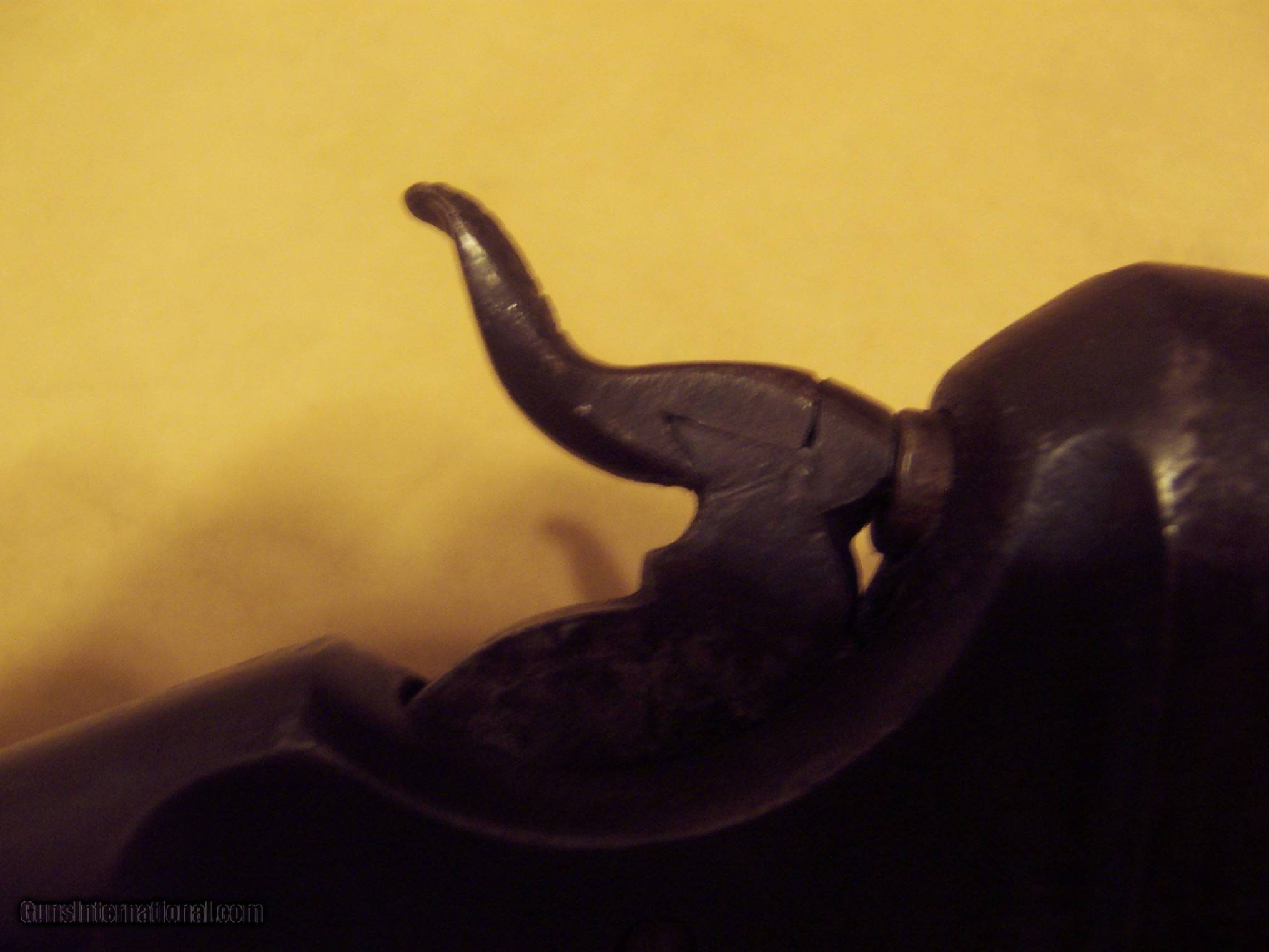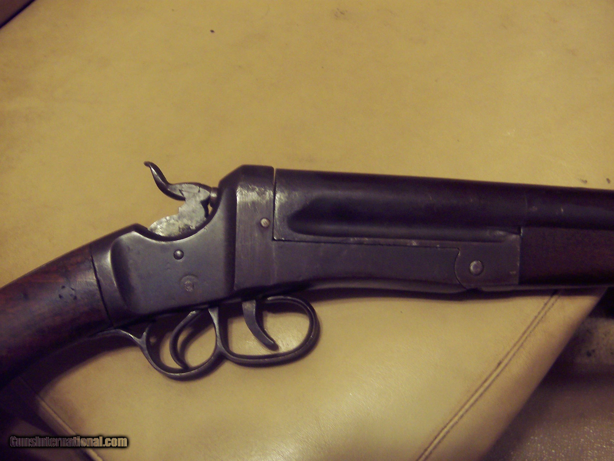 Description: works in dry fire fair bore ;;;;; shows gunsmithing repairs ; butt plate replaced;; fair condition ; 32 inch barrel;;; marked american on top of barrel looks like the shapleigh model ,, antique looks like a steel breach with damascus barrel ;;;; gun in patina finish; hammer spur repaired SOLD Antique: Yes |