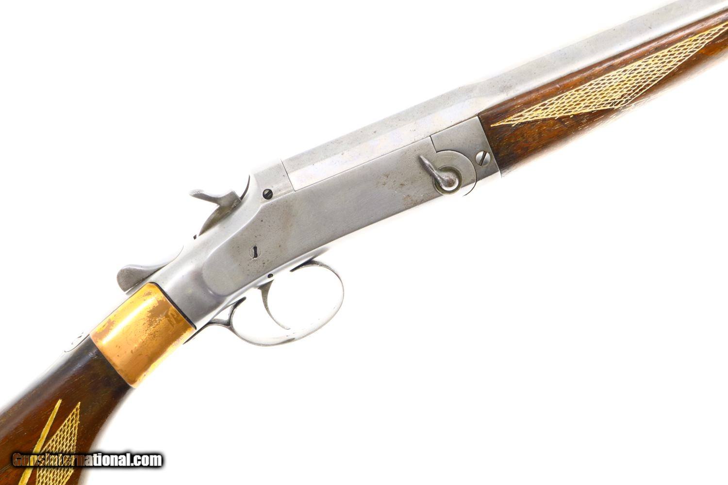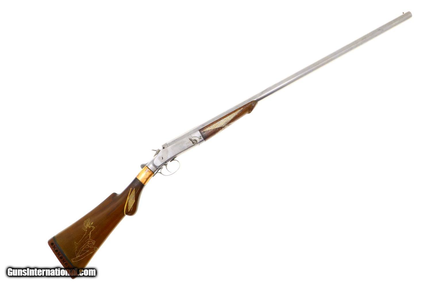 Description: Synopsis: W.H. Davenport Firearms single barrel 12 gauge shotgun. A great wall hanger! Description: W.H. Davenport Firearms single barrel 12 gauge shotgun, with personalized checkering and a scribed deer on the left side of buttstock that has been fitted with a Western Field recoil pad. Made in Norwich, Conn. Condition: Virtually no finish, the surface appearing as bright cleaned metal. Metal reinforcement around the wrist. Correct manual function and dull bore. This shotgun is sold as a wall hanger, reflective of early Americana, NOT TO BE FIRED UNLESS ASSESSED AND APPROVED BY A COMPETENT GUNSMITH. ~~Insured shipping fee of $75; most packages shipped using FedEx 2nd Day.~~ SOLD Manufacturer: W.H. Davenport Firearms Serial Number: 26622 Caliber Info: 12ga |