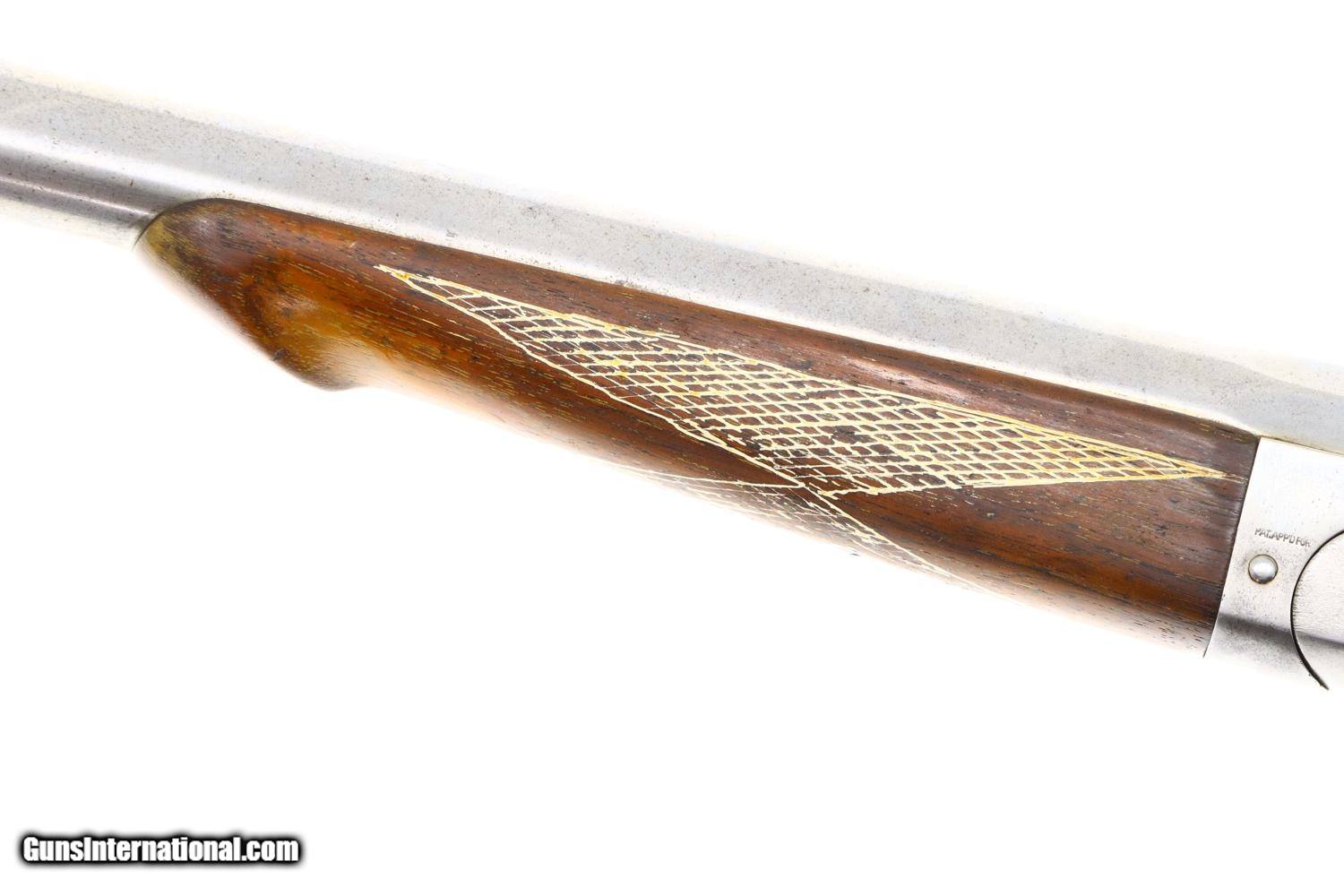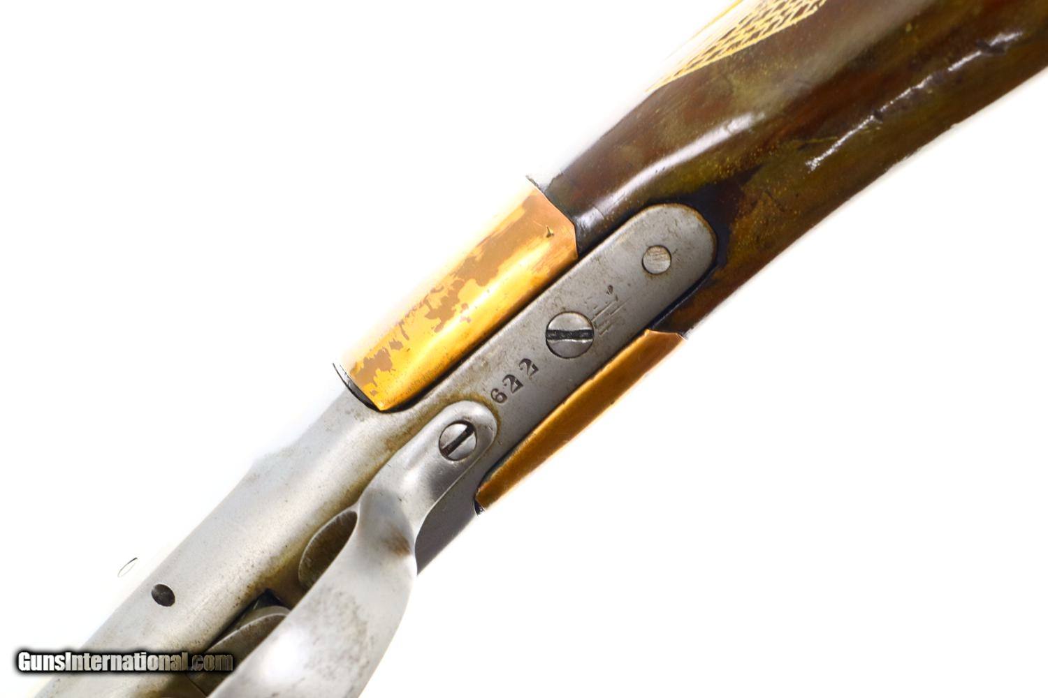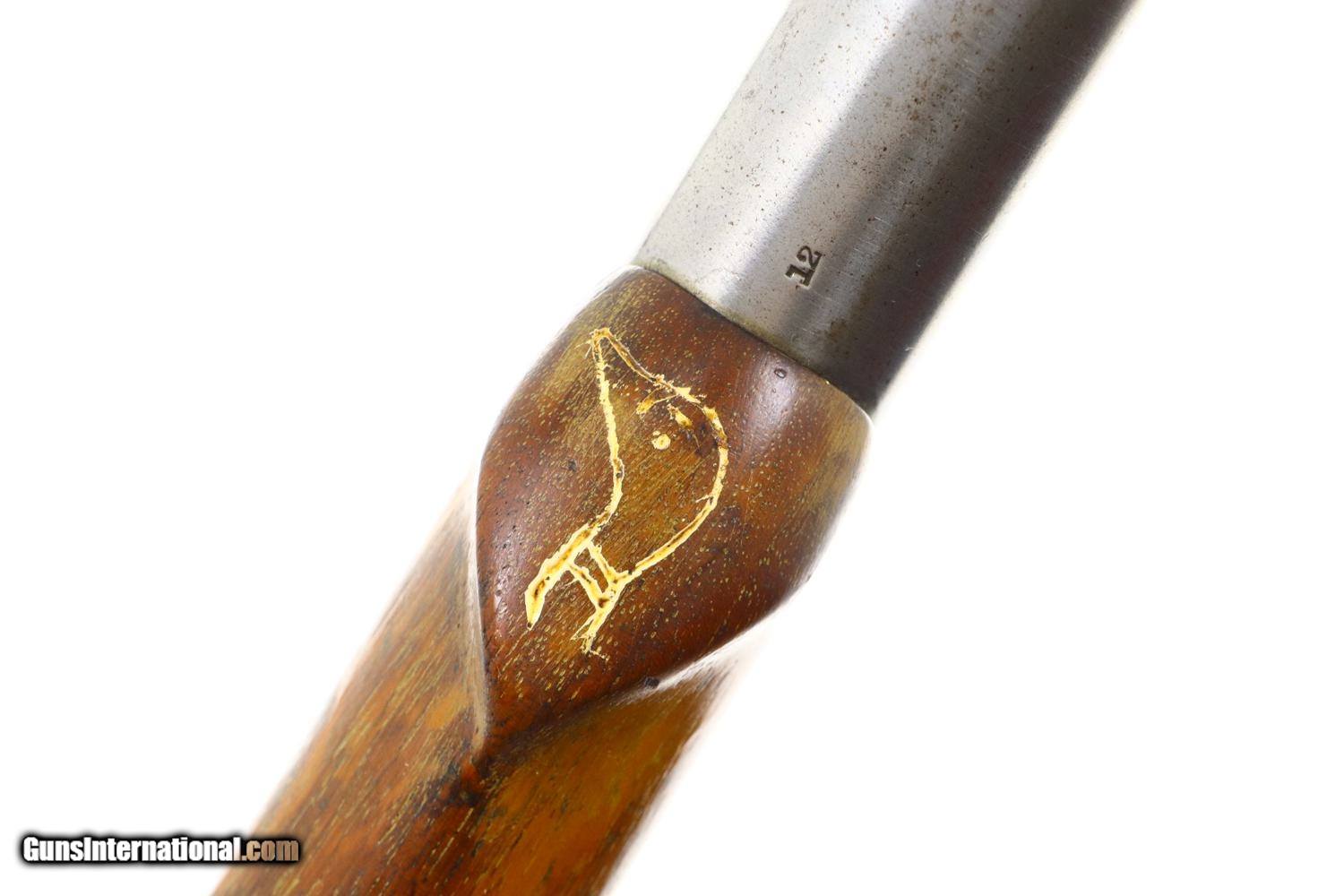 Description: Synopsis: W.H. Davenport Firearms single barrel 12 gauge shotgun. A great wall hanger! Description: W.H. Davenport Firearms single barrel 12 gauge shotgun, with personalized checkering and a scribed deer on the left side of buttstock that has been fitted with a Western Field recoil pad. Made in Norwich, Conn. Condition: Virtually no finish, the surface appearing as bright cleaned metal. Metal reinforcement around the wrist. Correct manual function and dull bore. This shotgun is sold as a wall hanger, reflective of early Americana, NOT TO BE FIRED UNLESS ASSESSED AND APPROVED BY A COMPETENT GUNSMITH. ~~Insured shipping fee of $75; most packages shipped using FedEx 2nd Day.~~ SOLD Manufacturer: W.H. Davenport Firearms Serial Number: 26622 Caliber Info: 12ga |