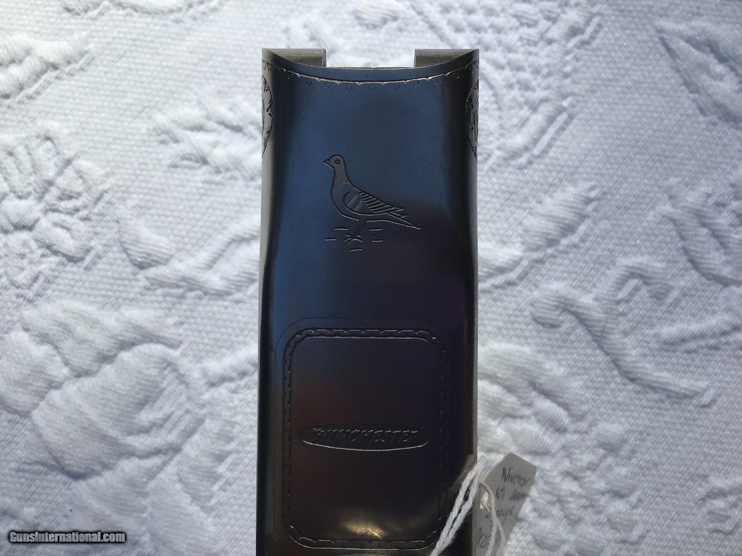 Description: Winchester 101 Pigeon Grade 20 gauge Skeet gun with 27 1/4 " barrels. Very nice scroll engraved nickel finished receiver, blued barrels, extra nice checkering, nice wood, factory pad. Comes in a Beretta hard case. $2300.00 Buyer pays shipping. SOLD Shotgun Gauge: 20 Gauge Manufacturer: Winchester Model: 101 Barrel Length: 27 1/4” Bore: Bright Condition: Excellent Metal Condition: Excellent Wood Condition: Very good Bore Condition: Mint Barrels: Over/under Chokes: Skeet Engraving: Scroll Case: Hard case Item Location: GA |