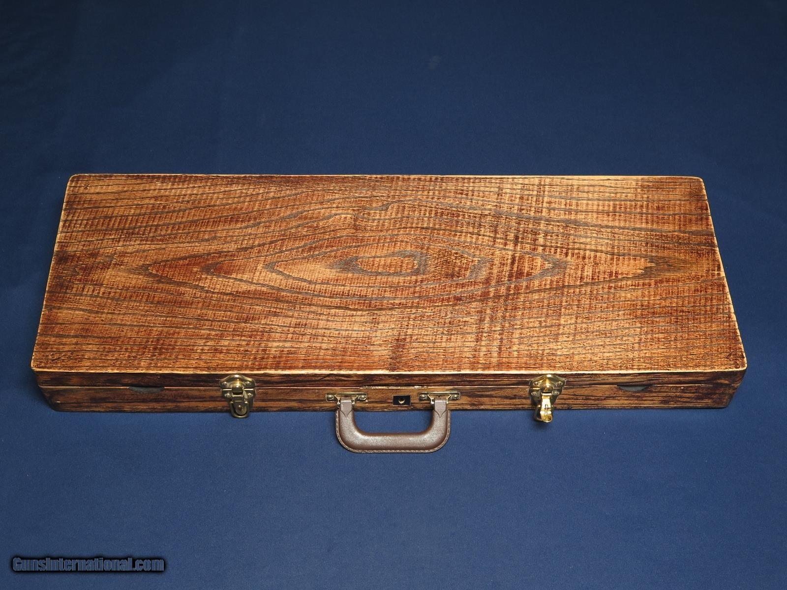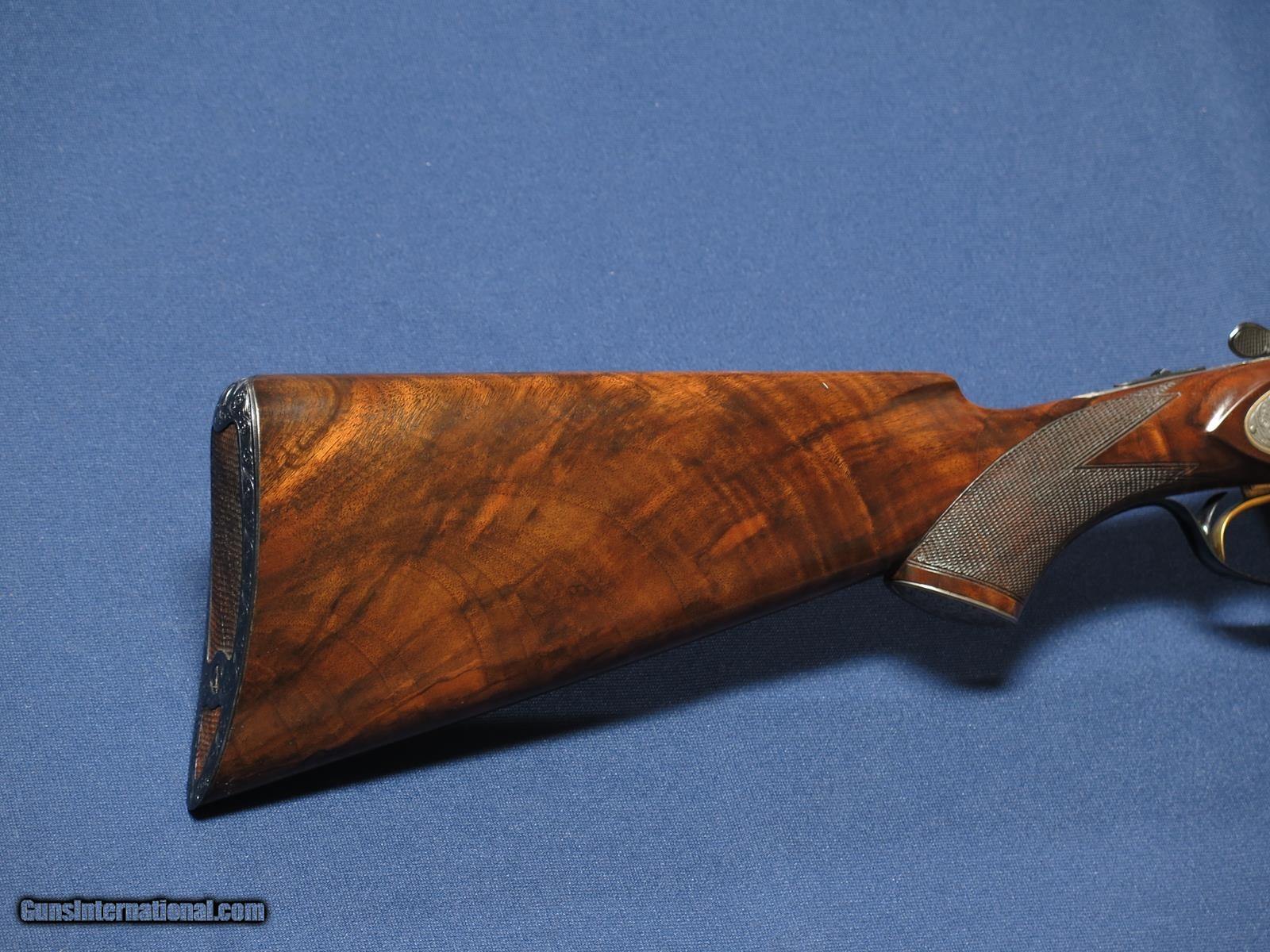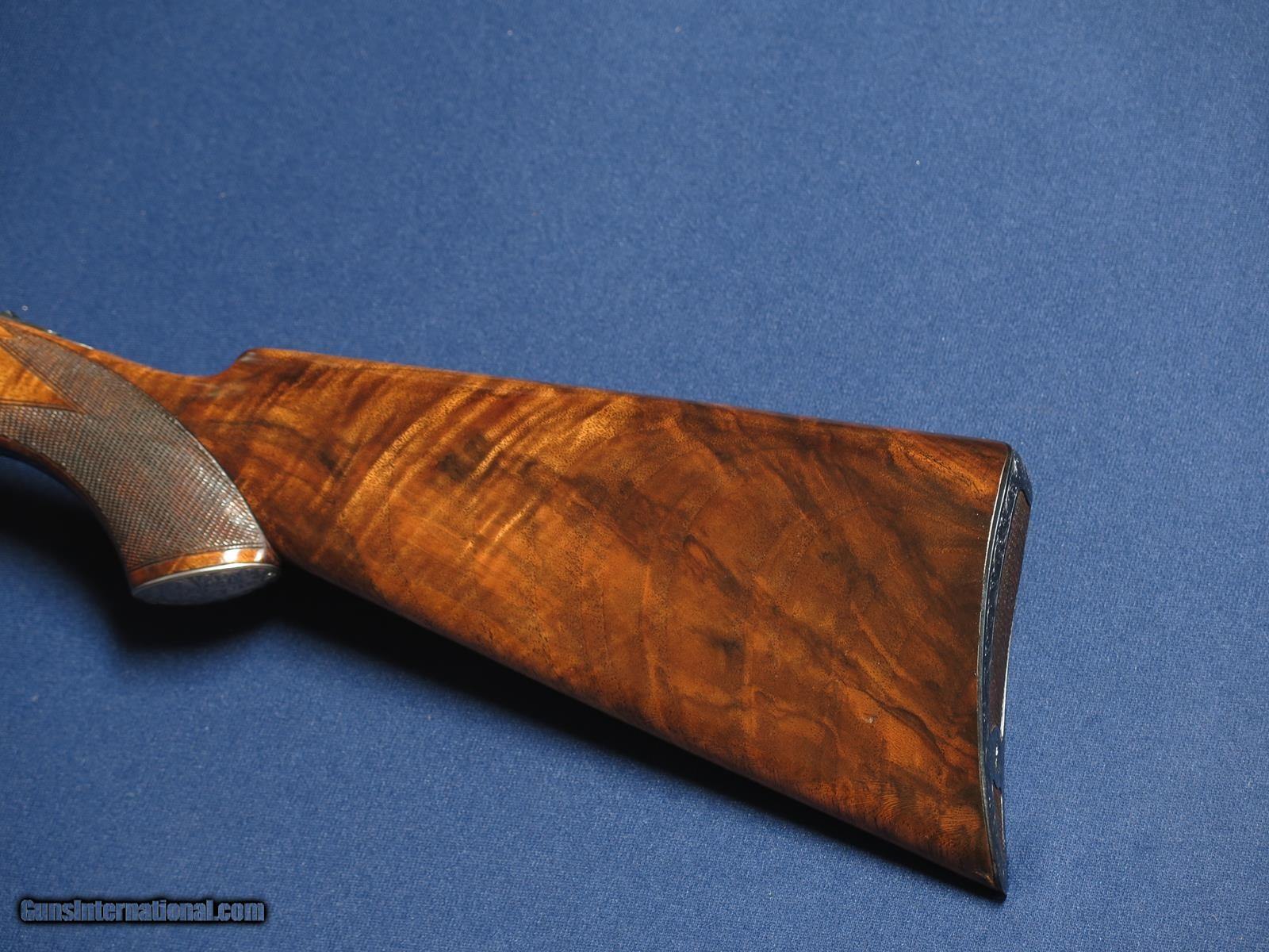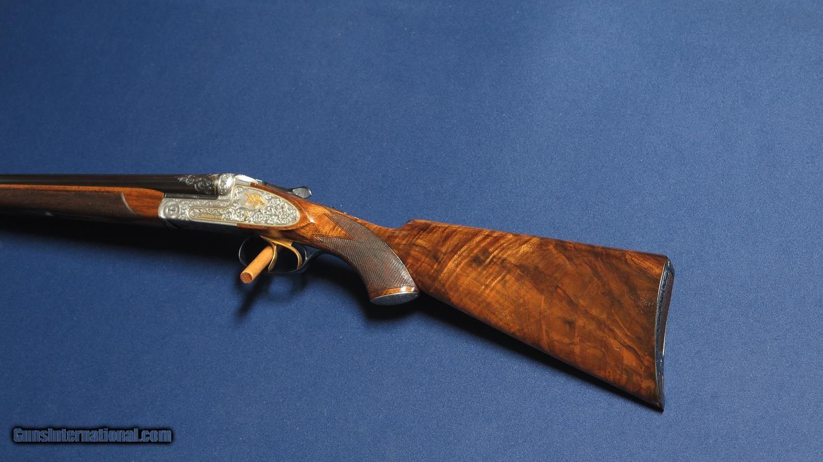 Description: L. Borovnik Ferlach Sidelock 2 barrel 20ga. Engraved by Hunt Turner. Beautiful scroll engraving with gold borders and birds. 26 inch IC and Mod .012 .017 + 28 inch Mod and Full .017 .031. Double triggers. Ejectors. 14 1/4 LOP skeleton butt. Gold line and engraved barrels. 2 3/4 chambers. Engraved grip cap and trigger guard. 1 3/8 comb 2 1/2 heel. Absolutely beautiful gun. Excellent condition and bores. With wooden case with Borovnik label. 6 lbs 8 oz. Over 45 years in business, and not only do we buy guns, but we accept collections (and single/multiple guns) on consignment. SOLD Shotgun Gauge: 20 Gauge |