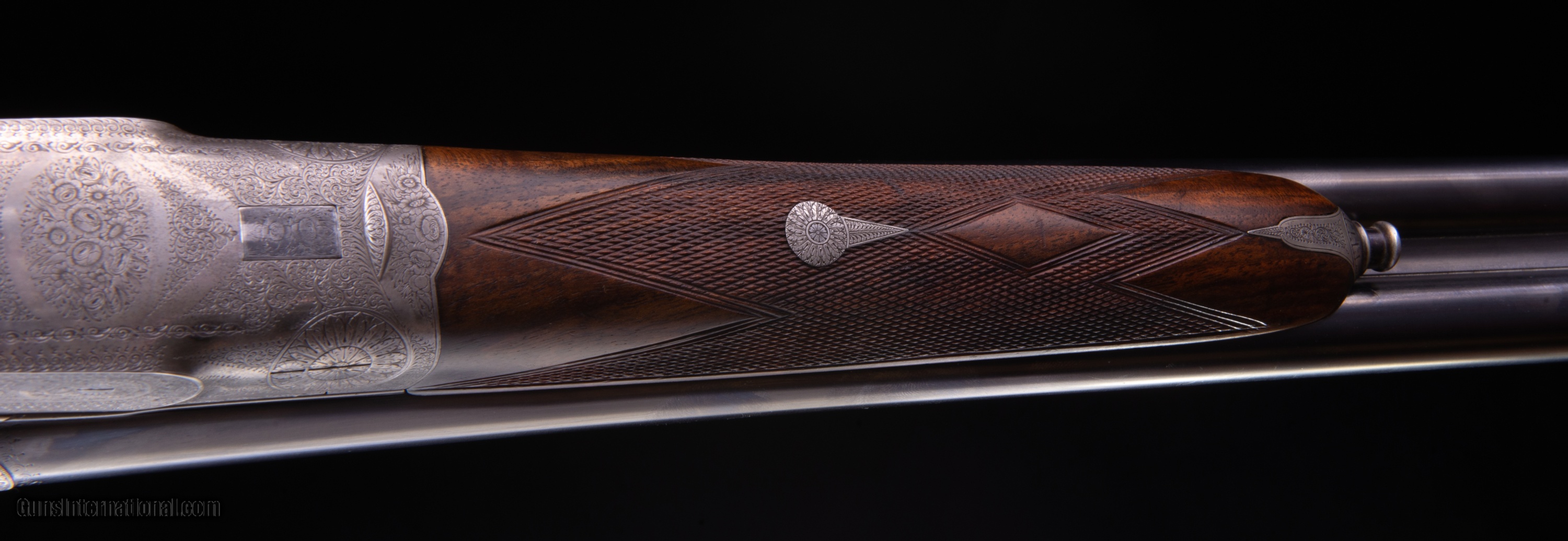 Description: Boxlocks - The quality of these early Springer shotguns is off the scale. I think the pictures will give you an idea of this but even better if you get the gun in your hands. On the heavier side for a 20g but handles well and the extra weight would be an advantage for sporting clays or wild upland roosters. This gun was invisibly sleeved and nitro proofed in England by the well known and highly respected restoration shop of John Foster. *** Note: To see this gun with high resolution photos and a zoom-in feature, go to the vintagedoubles main site and search for the gun ID: 4831 or browse the main site to see our full gun collection. SOLD Curio/Relic: Yes Manufacturer: Johann Springer "Best" side plated boxlock from the early 1900\'s with 2 3/4" proofs Model: best boxlock Serial Number: 10020 Ejectors: Yes Barrels: 28 Barrel Type: Sleeved Action: Boxlock ejector Gauge Info: 20 gauge Stock Comb: 1 9/16 Stock Heel: 2 7/16 Stock Cast: 1/4 LOP: 14 5/16" with h Weight: 6lbs 11ozs Choke Left: .017 Choke Right: .003 Proof:Nitro: 2 3/4 Minimum Wall Thickness Left: .040 Minimum Wall Thickness Right: .040 |