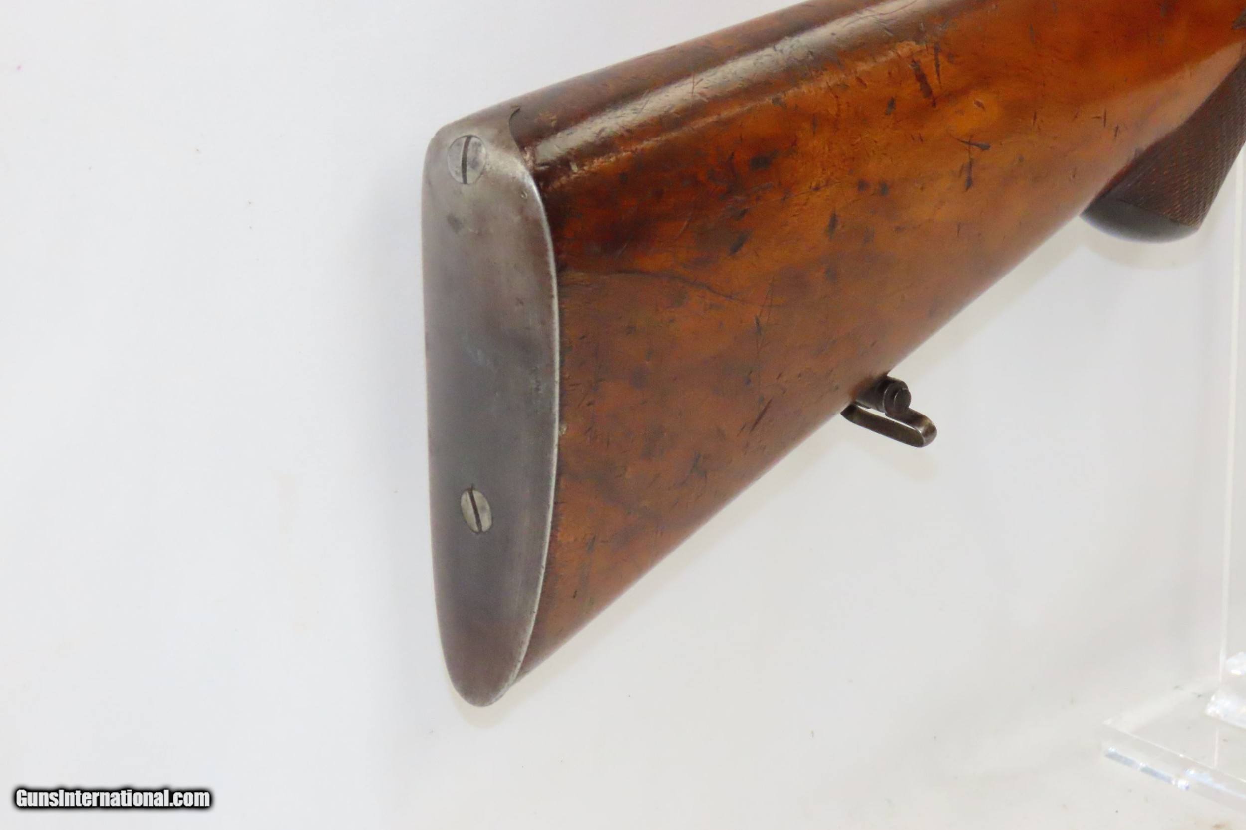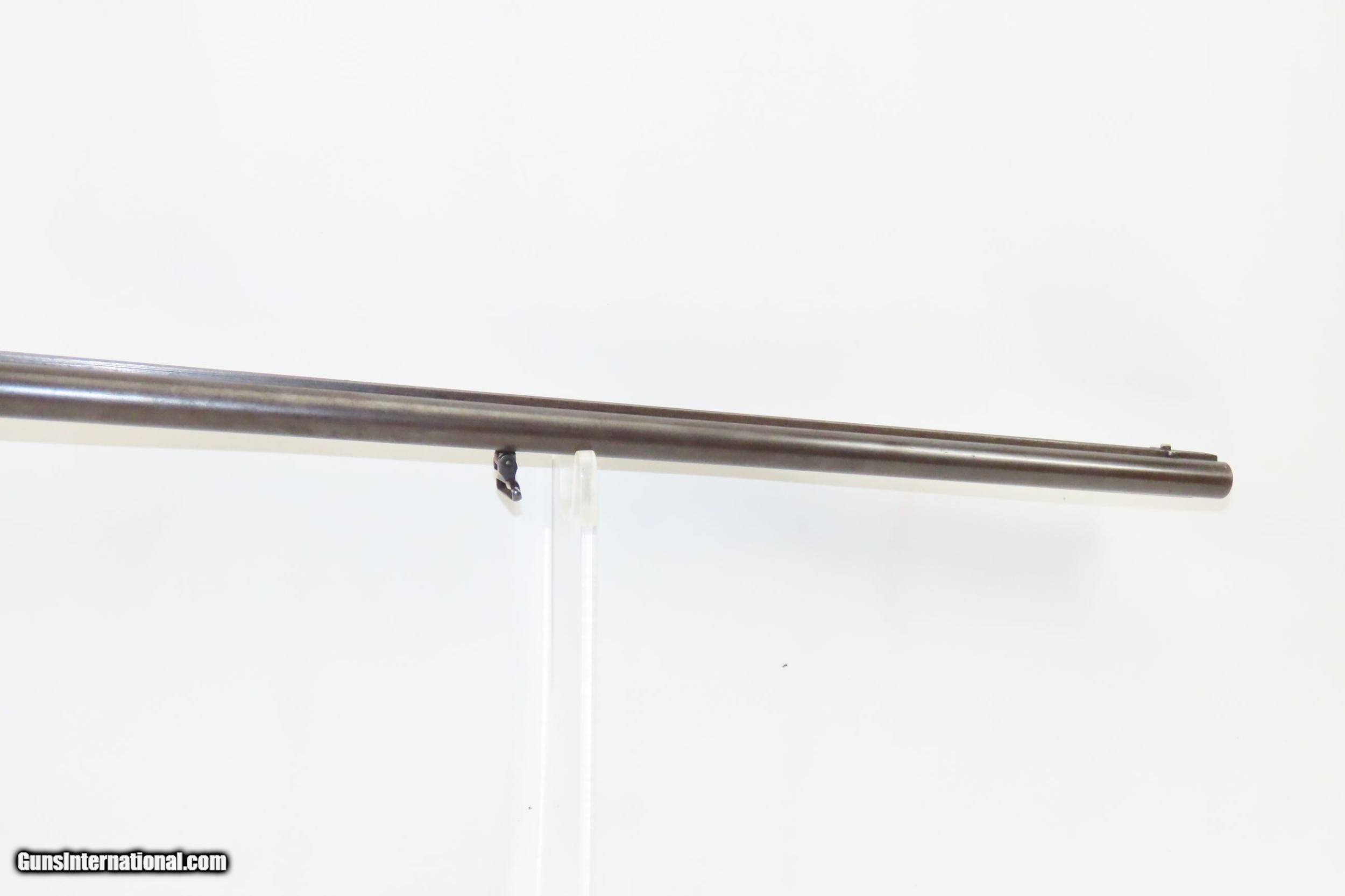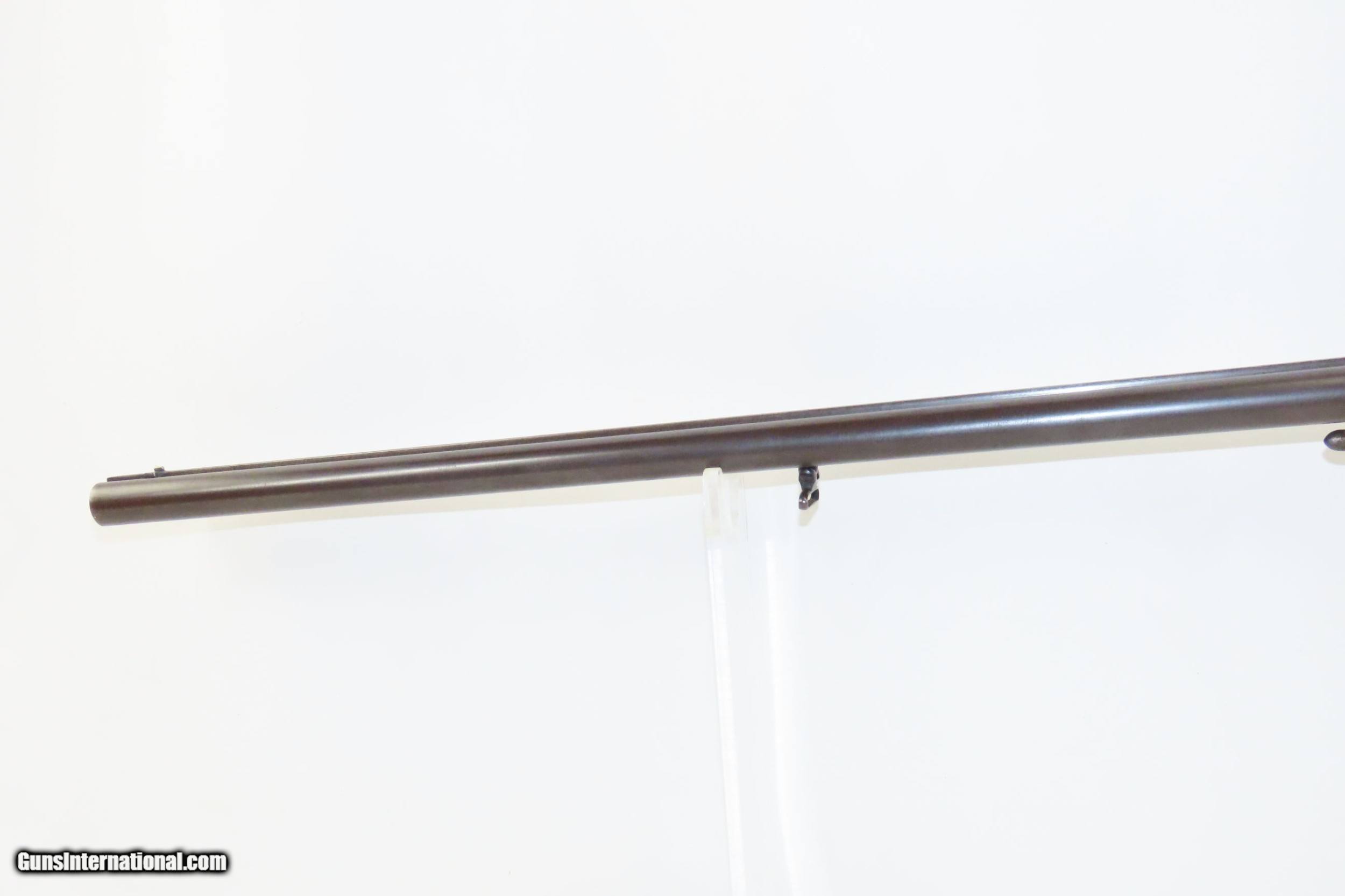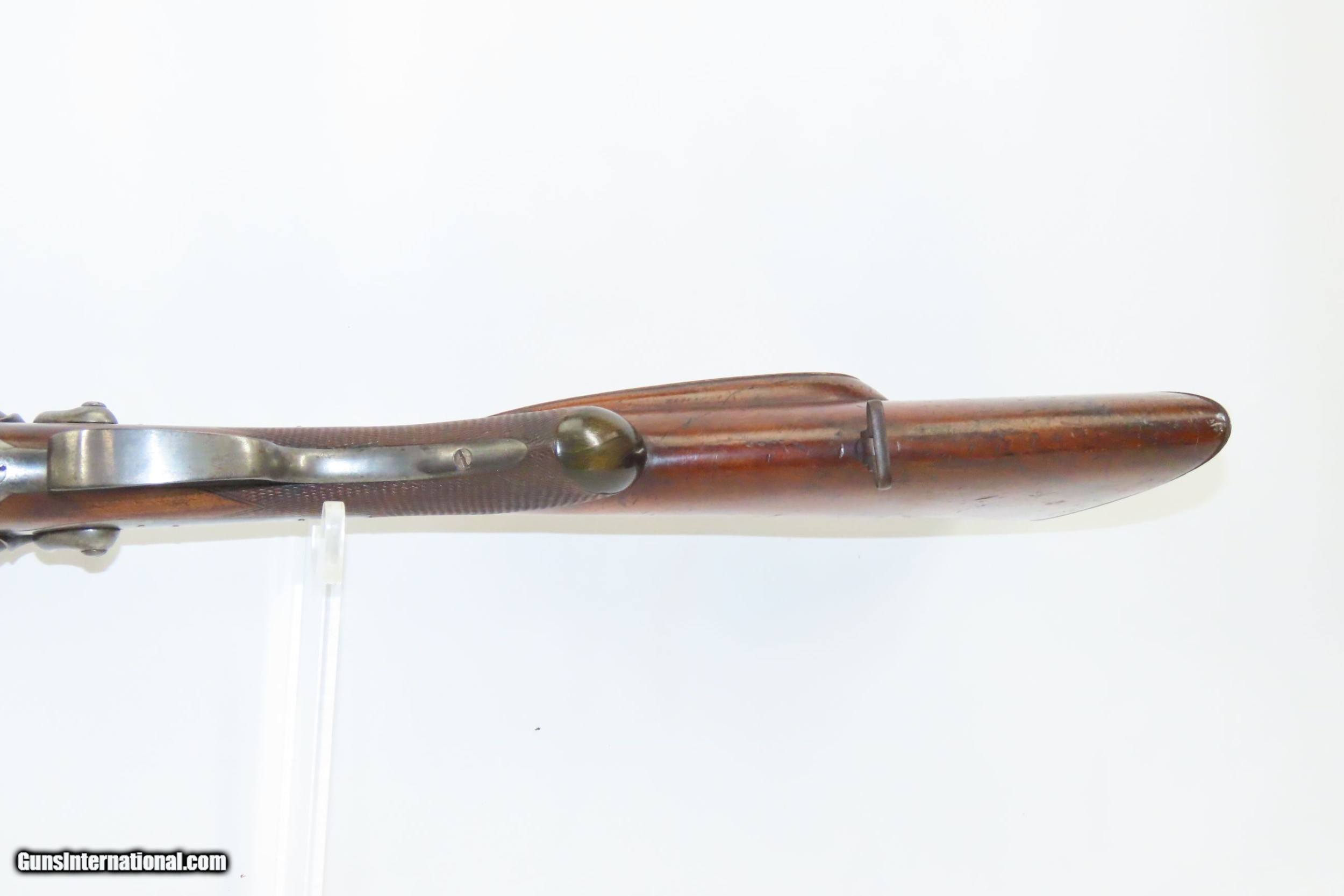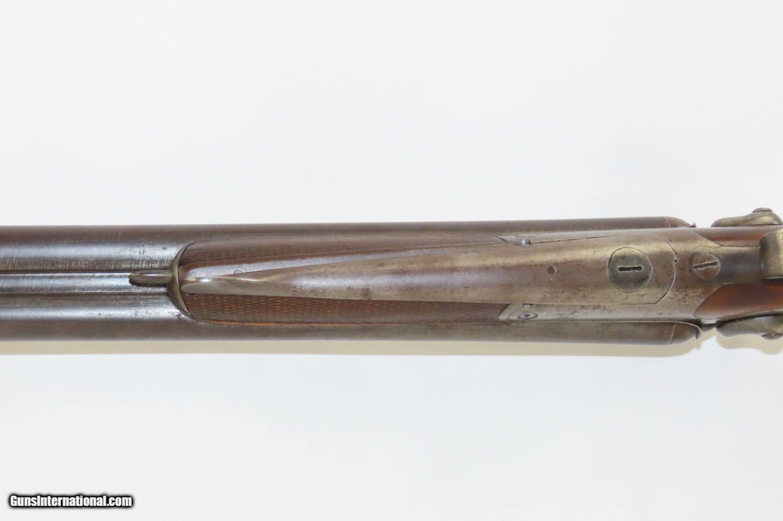 Description: SALZBURG, AUSTRIAN Antique Josef SIEGEL 16 Gauge Combination Rifle/Shotgun Effectively Hunt Fowl or Four Legs with One Firearm! Here we present an antique Josef Siegel Side by Side Combination Rifle & Shotgun in 11x60mm Mauser and 16 Gauge, manufactured circa the late 1880s in Salzburg, Austria. The hunter would use the rifled barrel to fire precise shots against large game and the smooth side could be loaded with a large ball or slug for a quick follow up shot or the smooth bore could be loaded with shot to make it feasible to hunt fowl at the same time without carrying multiple guns. This gun has two hammers and two triggers to allow either barrel to be fired as needed. This double gun is clearly a quality piece. It locks up tight and the actions are crisp. Back action locks. The rifle’s trigger is a single set trigger that can be engaged by pushing it forward to provide an even crisper, lighter trigger pull. The shotgun barrel is Damascus twist while the rifle is fluid steel. There is a front sight mounted in between the barrels on the rib. The rear sight is an express type with a solid first leaf and a flip up second leaf for extended ranges for the rifle. There are sling swivels mounted under the barrel and the butt stock. The stock is hand-checkered and the pistol grip is capped in horn. Steel butt plate and trigger guard. The left side of the butt stock has a generous cheek rest. Under-frame lever swivels to tip the barrels down, exposing the breech for loading and unloading. Extractor. The overall condition is near fine. Original finish. Damascene pattern well-preserved. The actions are excellent. The bores are bright and in great shape for age. The stock shows use and remains solid. Imagine hunting the Alps around Salzburg with this! Own the original! This is a legitimate antique and not a reproduction. Barrels are 27-5/8 inches. Caliber: 11x60mm Mauser Rifle (.43 Mauser) 16 Gauge Smoothbore Shotgun Shotgun Chamber: 2-1/2 inch Shotgun Choke: Improved Modified LOP: 13-3/8 inches Overall condition as seen in photos. Very Fast. Very Safe. FREE SHIPPING WORLDWIDE. Delivered directly to your door by express mail! Guaranteed AUTHENTIC & Includes CERTIFICATE OF AUTHENTICITY. ancestryguns $2675 #217830 SOLD Curio/Relic: Yes |