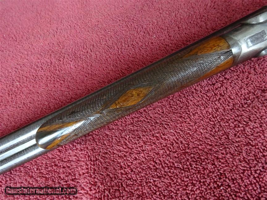 Description: ACME ARMS CO., 410 GAUGE DOUBLE HAMMER GUN. "BELGIUM LAMINATED STEEL" MARKED ON TOP RIB. ATTRACTIVE BARREL FINISH, 26" IMCYL.&MOD. MIRROR BRIGHT BORES, CASE COLORED SIDELOCK FRAME, EXPOSED HAMMERS, TOP LEVER OPENER, ROUND GRIP STOCK, SPLINTER FOREARM, STEEL BUTTPLATE, FINE CHECKERING, VERY GOOD WOOD FINISH. 4 POUNDS 10 OUNCES, GREAT DIMENSIONS, 1 1/2" X 2 1/2" X 13 1/2". GREAT LITTLE QUAIL GUN. ANTIQUE-NO FFL REQUIRED. $1500.00 + $40.00 shipping to a US address. See all Pats listings We also have hundreds of pieces of ORIGINAL gun company advertising & memorabilia available for sale. We have no reprints or reproductions. Email for more information. SOLD Antique: Yes |