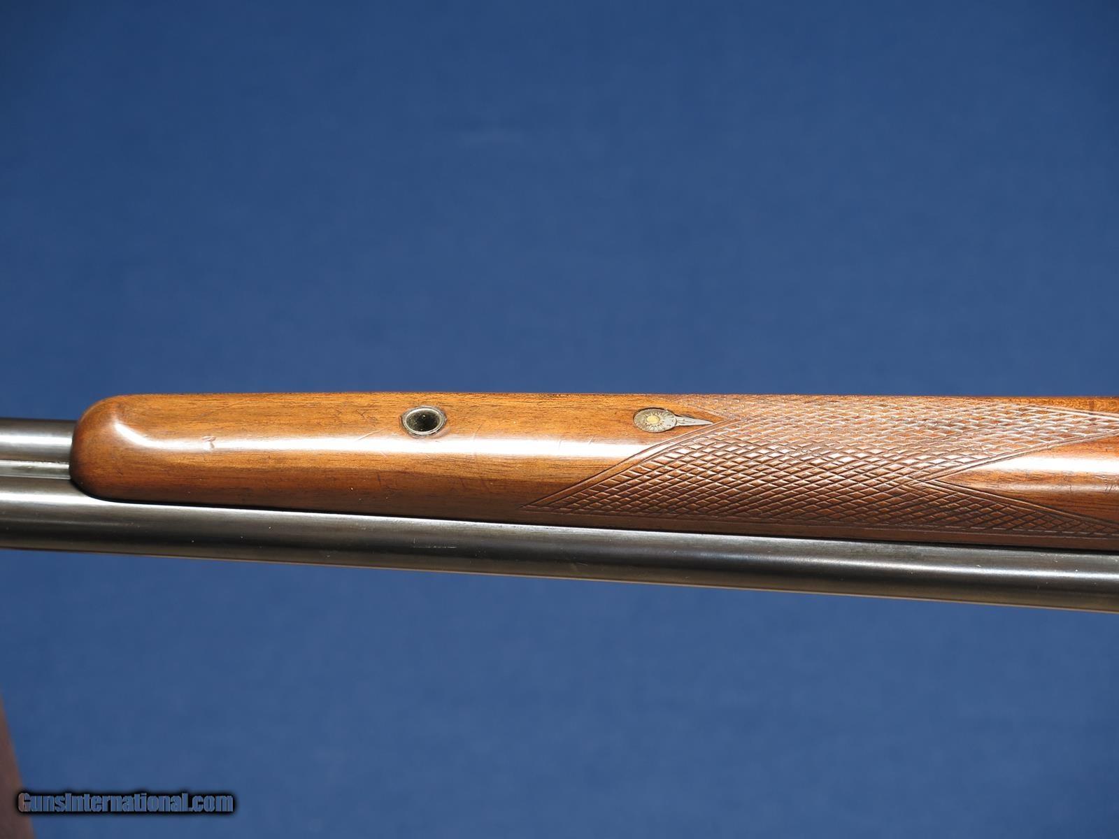 Description: Armac Liege Belgium Boxlock 20ga guild gun. Top of receiver and lever engraved. 28 inch barrels. Full and Extra full. .024 & .039. Double triggers. Automatic ejectors. 14 1/2 LOP butt plate. 2 3/4 chambers. Greener cross bolt. Excellent bores. SOLD |