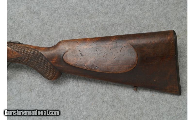 Description: Used. This is an example of a unique Belgian made double that has seen much field use. Manufactured in Herstal Belgium this side lock double is is very European in appearance and handling. Barrels were made using Bayard steel (Acier Bayard) and the top of the rib is marked "Pour Poudres Vives" for bright (aka smokeless) powders. Action is very tight. SOLD Curio/Relic: Yes Manufacturer: Circa 1925 Caliber Info: 16 Ga. Chambers: 2 3/4 Metal Condition: Fair to Good; Gun has finish loss in many places as well as nicks and small scratches due to heavy field and use. Wood Condition: Fair to Good; quite a bit of wear as well as nicks and scratches due to heavy field use. Bore Condition: Excellent; Clean & Bright Barrels: 28 1/8" Blued Triggers: Dual Triggers; Smooth, Blued turning patina Stock: Monte Carlo Style Walnut with Checkered Semi-Pistol Grip Stock Dimensions: LOP: 14 1/4 Fore End: Checkered Walnut Butt Pad: Checkered Black Bakelite Type Plastic with Bayard Logo Weight: 6 Lbs. 4 Oz. Sights: None - Front bead missing Chokes: Full/Full Item Location: Sun Prairie, WI |