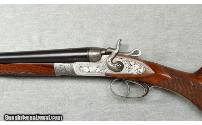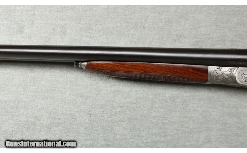 Description: Belgian Hammer Side x Side shotgun in 28 Gauge. Beautiful 28 Gauge hammer shotgun. The coin finish action has a unusual floral engraving pattern on the action, sideplates, and trigger guard. It has 27/3/4 inch barrels marked "EPREUVE OFFICIELLE POUR POUDRE SANS FUMFE" and "SIEMENS-MARTIN-EXTRA". The Siemens-Martin steel process ensured quality steel for barrel manufacture. It has a finely checkered splinter fore-end and sling swivels. It has an excellent walnut stock with an attractive grain figure. 28 Gauge SOLD Chambers: 2 3/4 inches Metal Condition: Excellent Wood Condition: Excellent Bore Condition: Bright Triggers: Double triggers Stock Dimensions: LOP 14 Inches Fore End: Checkered walnut Butt Pad: Metal plate Weight: 4 lbs 2 oz Sights: Single brass bead on solid rib Chokes: Cylinder/Improved Modified Item Location: La Vista, NE |