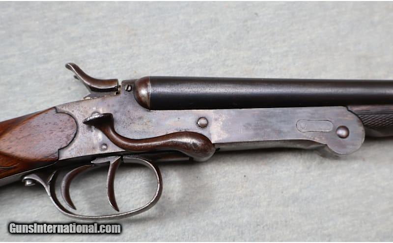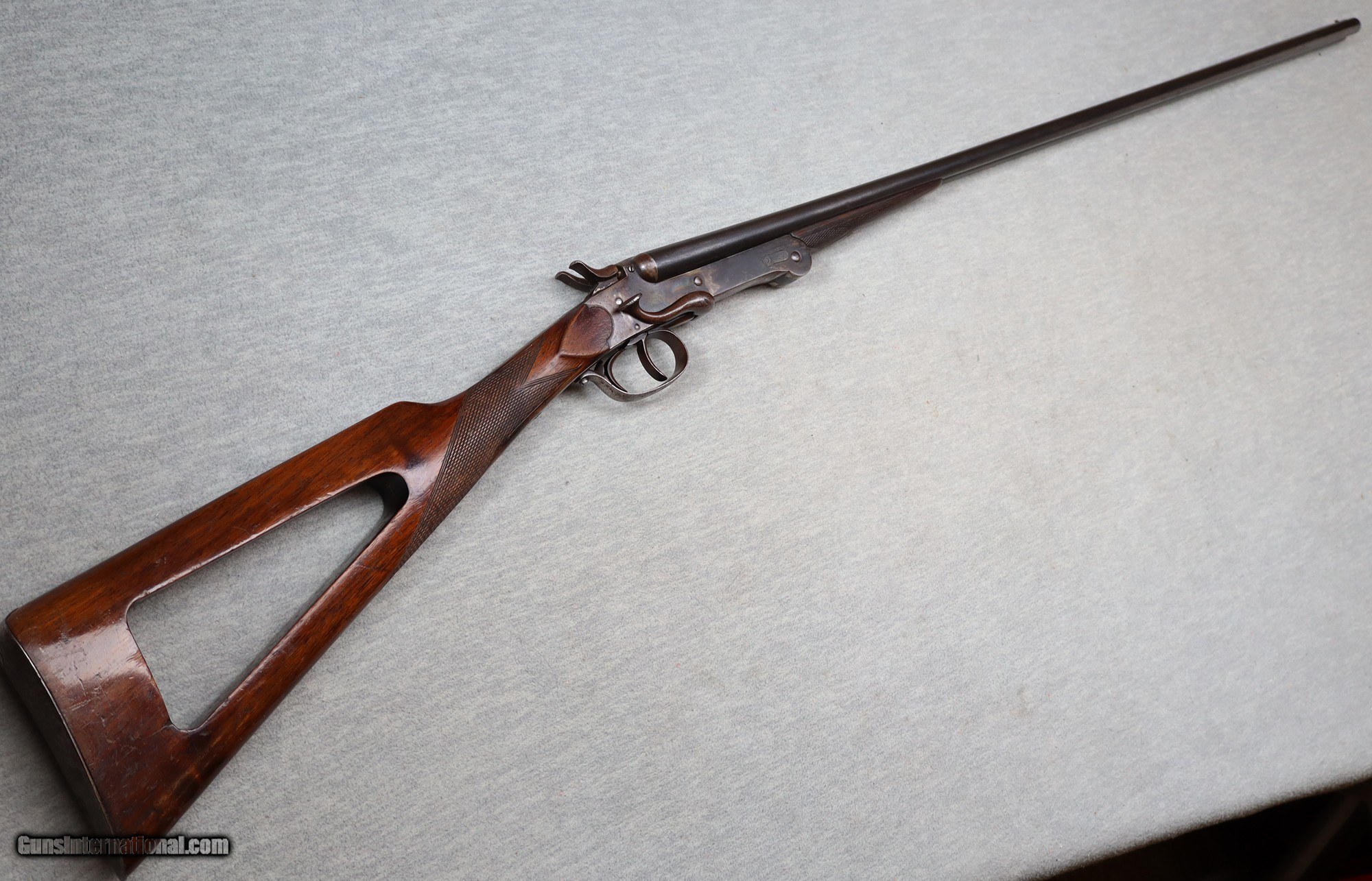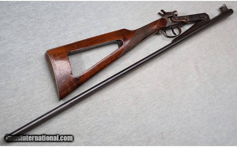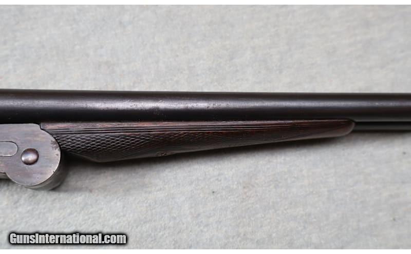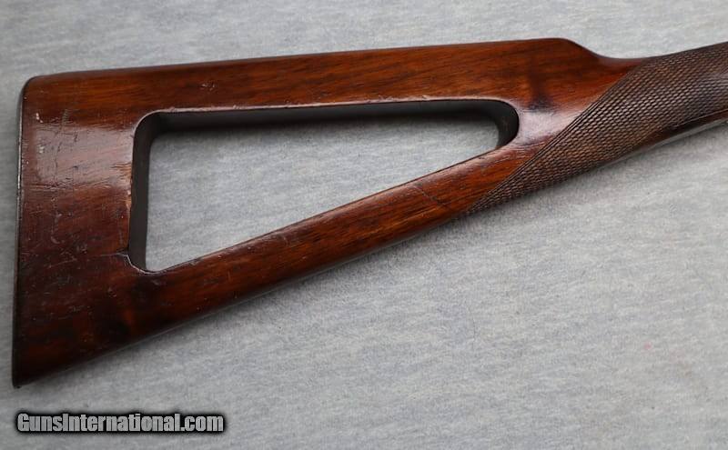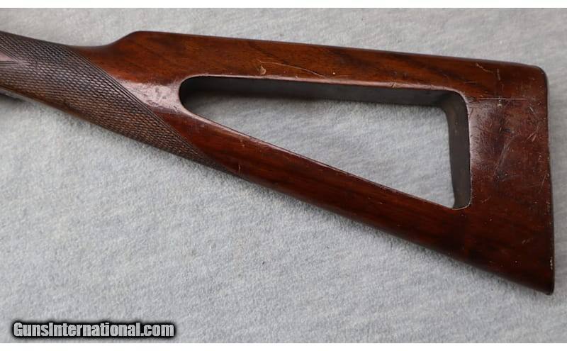 Description: Belgian .410 side by side hammer action folding poacher's shotgun with chequered grip and forend, double triggers. 28 Inch barrels with extractor. An interesting piece that you don't see very often. Shotgun is still in good shape and functions as intended. .410 Bore Metal Condition: good Wood Condition: good Bore Condition: bright Barrels: 28" barrels with extractor Triggers: double triggers Stock Dimensions: 13.5" LOP Fore End: checkered wood Butt Pad: metal Weight: 3 lb 10 oz Sights: bead front sight Chokes: IC/IC Item Location: La Vista, NE Price: $649.99 Contact Seller |