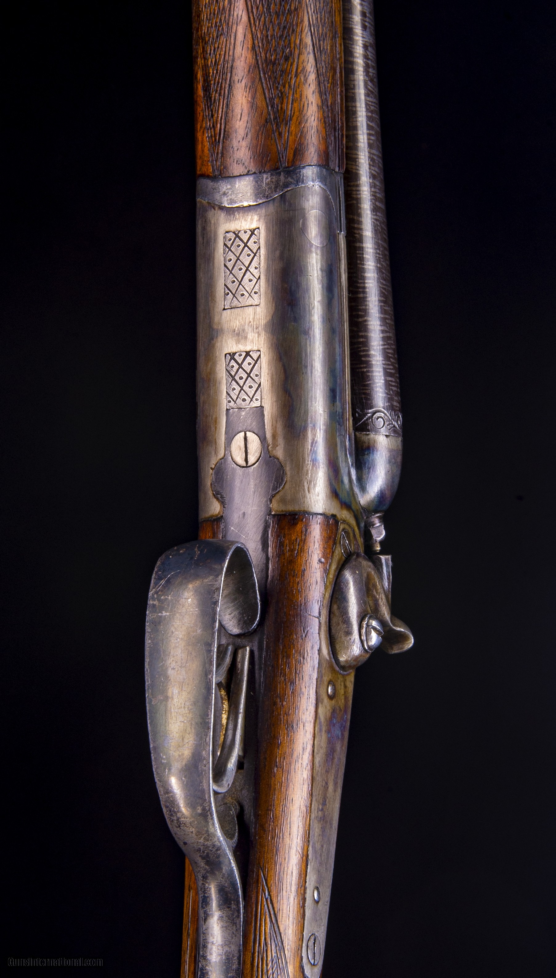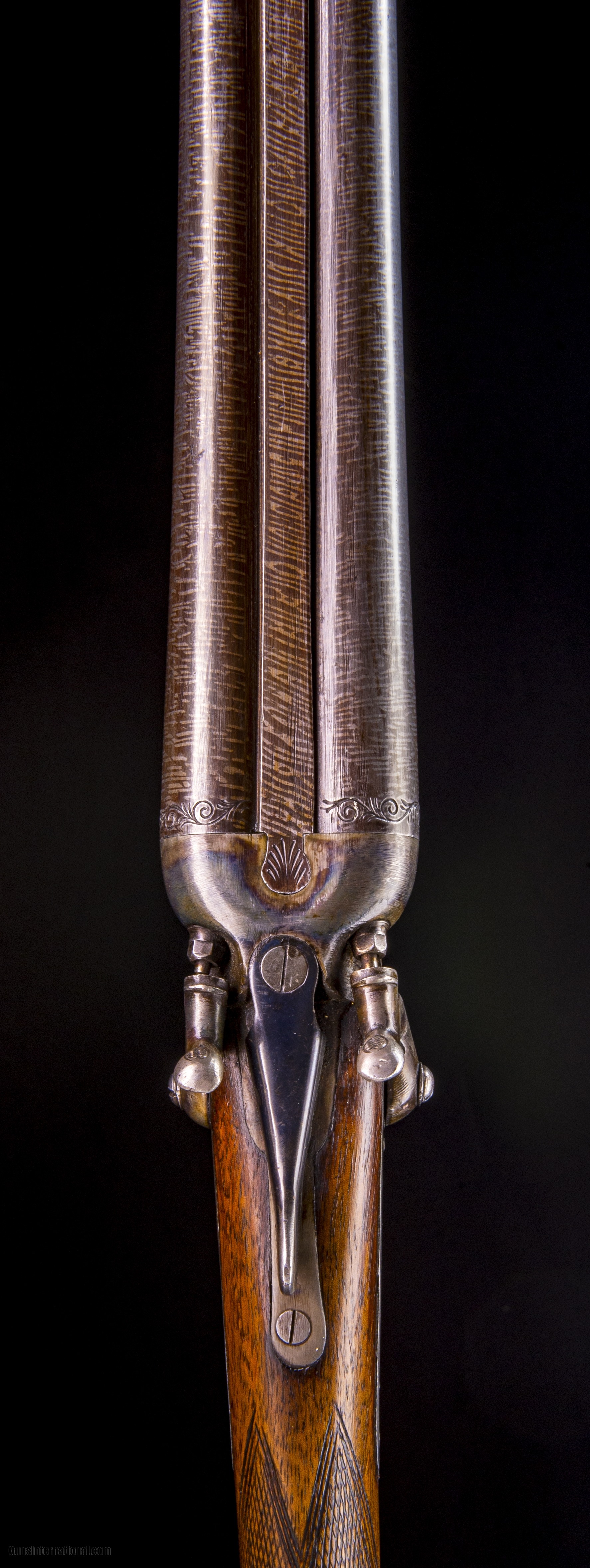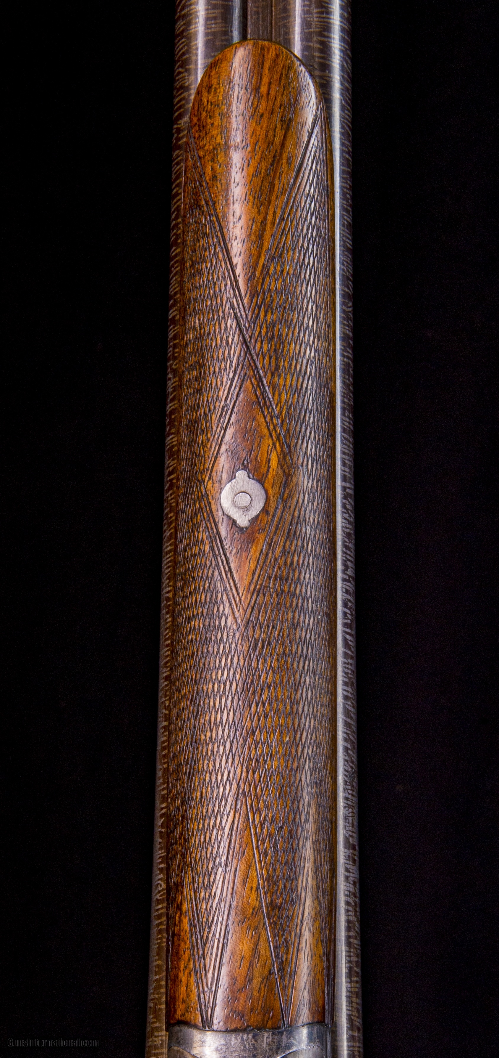 Description: Hammerguns - A rather plain but elegant little 28 with nice long barrels. The Damascus pattern is excellent! *** Note: To see this gun with high resolution photos and a zoom-in feature, go to the vintagedoubles main site and search for the gun ID: 5656 or browse the main site to see our full gun collection. SOLD Manufacturer: Belgium 28g. hammer gun with no engraving but beautiful Damascus 31.5" barrels Model: None Serial Number: 5145 Ejectors: No Barrels: 31 1/2 Barrel Type: Damascus Action: Back Action Gauge Info: 28 gauge Stock Comb: 1 3/8 Stock Heel: 2 3/16 Stock Cast: 0 LOP: 13 5/8" with st Weight: 5 lbs 3 ozs Choke Left: Cyl Choke Right: Cyl Proof:Black: 2 1/2 Minimum Wall Thickness Left: .031 Minimum Wall Thickness Right: .032 |