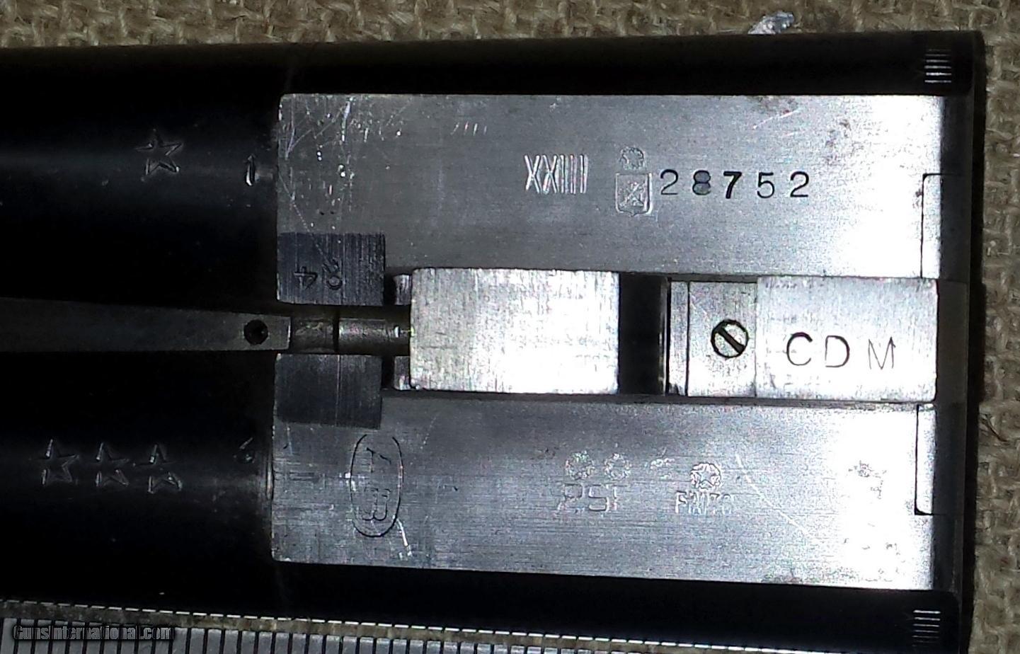 Description: This is a Charles Daly Empire grade 12ga SxS made by Beretta and appears to be a clone of the Beretta GR3 with a non-selective single trigger. The underside of the barrels has the Beretta proof mark, “AB” as well as the Gardone proof inspection, XXIII indicating 1967-1968 manufacture date. It is proof marked for smokeless powder and stamped, “PSF”. Barrels are marked *and *** indicating full and modified fixed chokes. Chambers: 3 Inch Metal Condition: Very Good with some finish wear Wood Condition: Good, has dents and scratches and chip Bore Condition: Bright and shiny Barrels: 28 Inch Triggers: Single Trigger Stock: Checkered Walnut Stock Dimensions: 14 Inch LOP Fore End: Checkered Walnut Butt Pad: Pachmayr Recoil Pad Weight: 7 lbs 3 ozs Sights: Vent Rib with front bead Item Location: Pennsylvania SOLD Manufacturer: Charles Daly Model: Empire Serial Number: 28752 Caliber Info: 12ga Bore: very good Chambers: 3 inch Condition: good Metal Condition: good Wood Condition: good Bore Condition: very good Barrels: 2 Barrel Type: full/modified Action: side by side Triggers: single Gauge Info: 12 Stock: walnut LOP: 14 inch Rib: yes Sights: front bead Manufacture Date: 1967-68 Chokes: fixed Choke Left: full Choke Right: modified Engraving: yes Case: blued Item Location: Pennsylvania |