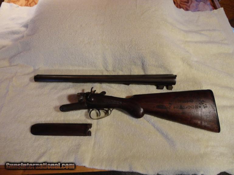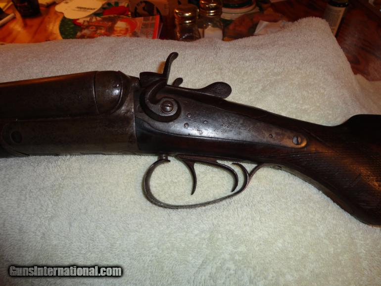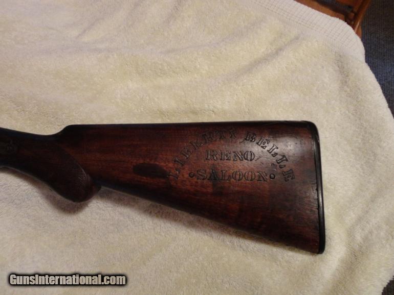 Description: 12 gauge George Fisher British imported shotgun from Belgium, proof tested marks 102 tonage for smokeless powder. Shotgun was used for security at the Liberty Bell Saloon of Reno, behind the bar. The saloon was owned by Marshel and Frank Fey, sons of charles inventor of the three reel slot machine of which some are on display at the Nevada state museum. SOLD Antique: Yes |