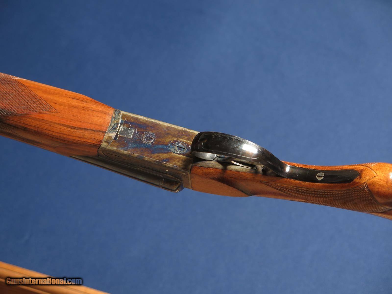 Description: Janssen Belgium mfg SXS 16ga. 28 inch barrels. SK and SK chokes. .005 & .002. Double triggers. Extractors. Greener crossbolt. 14 7/8 LOP butt plate. High condition gun. Action is tight. Hairline crack in forearm and one in pistol grip. Excellent bores. 1 1/2 comb 2 3/4 heel. SOLD Shotgun Gauge: 16 Gauge |