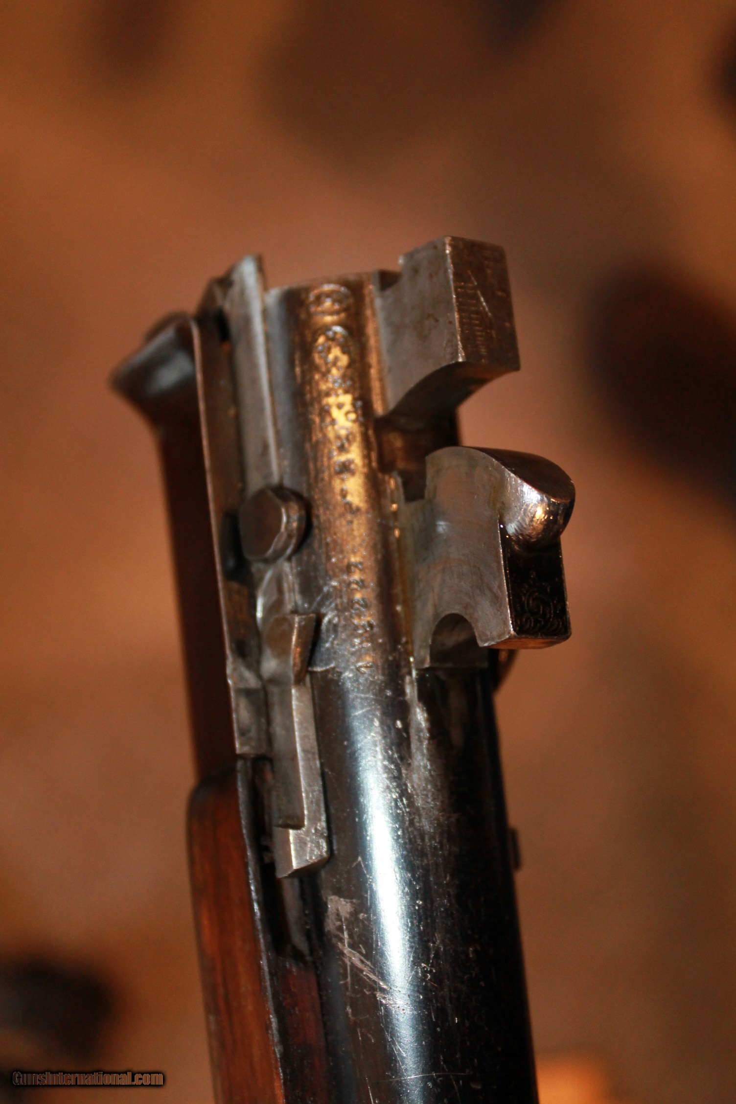 Description: Liegeoise D'arms over/under 12ga engraved. gold on safety. Belgium. 27 3/4" improved mod/skeet. 3 piece forend. 14 1/2" LOP to front trigger. overall good condition. one small dent in barrel as shown, slightly visible from inside. otherwise bores are mirror. ejectors Ask questions. $35 shipping. ffl only. certified funds. SOLD |