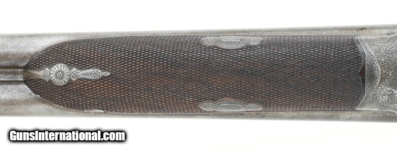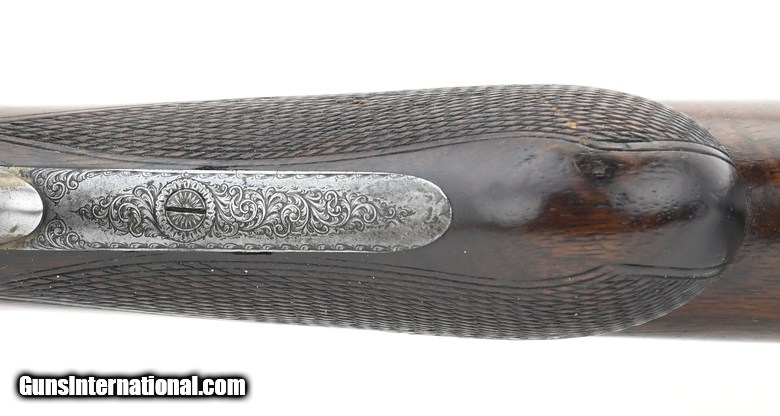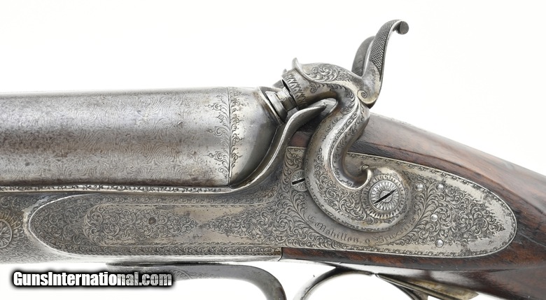 Description: Mahillon Double 12 Gauge shotgun. Very fin e Belgian made double with 30” Damascus barrels. Sidelocks, hammers, receiver, under lever and tang are scroll engraved. Walnut stock is nicely figured with contrasting colors. Stocks are finely checkered. Butt stock has heel and toe plates and is checkered between. Action and hammers work perfectly. Locks are marked “Mahillon Bruxelles”. A great example of quality craftsmanship.