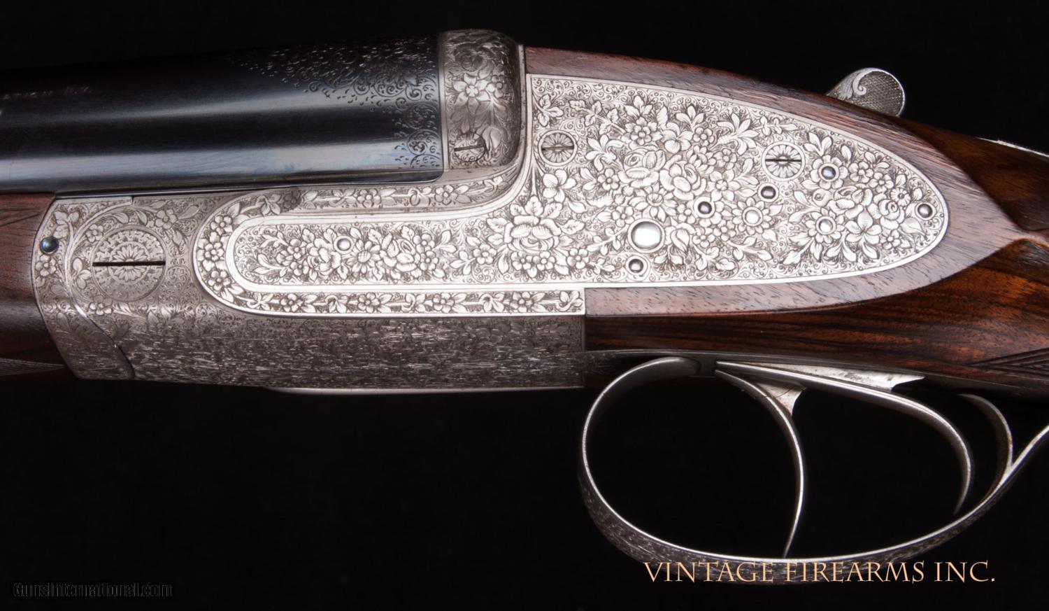 Description: Manufacture Liegeoise D'Armes A Feu 12 Gauge SxS SIDELOCK BELGIUM BEST General Specs: Manufacture Liegeoise D'Armes A Fue, Belgium, Year 1943, 12 Gauge, 6lbs 13oz, Side by Side Serial Number: 54901 When I bought this gun I was unaware that the maker was a well known Belgium based gunmaker of fine guns for almost 100 years. It was one of those cases that I "bought the gun, not the name" as I could see by the features it was a finely made full 7 pin sidelock side by side identical to a few Francotte guns I had owned. When I researched the gunmaker and found that they were known for high quality guns, that was a plus. It was a pretty easy decision to purchase, as it has 100% full coverage of fine rose bouquet and scroll engraving by an acknowledged world master engraver Leonard Smeets, perfectly struck barrels of Cockerill Steel (some of Europe's finest), file cut game rib, double under lug locks with a hidden 3rd fastener, articulated (hinged) front trigger, beaded fences, removable striker discs and firing pins, stocked to the fences with nicely figured European walnut with perfect wood to metal fit and drop points, checkered to perfection with fine 28LPI checkering, and perfect balance and a weight of 6 3/4lbs, what was not to like? This would be a VERY EXPENSIVE GUN TO MAKE TODAY, and is a true bargain for a BEST gun made in 1943. The gun is like new and mechanically perfect. Look closely at the above features in the photos. You will not find better craftsmanship in any gun. With great shooting dimensions and chokes, this is a fine upland or clays gun that you can be proud to show and use. And at a tiny fraction of the price for a similar quality English gun, you will not break the bank with your purchase. Barrels Barrel Length: 27 1/2" Chokes: .018/.025 M/IM Bores: mirror Bore Diameter: .728/.728 Wall Thickness: .023/.023 % Blue: 99% Chambers: 2 3/4" Ribs: tight, file cut Sights: double, ivory Action Action: tight, centered Ejectors or Extractors: ejectors, strong, timed Case Color: coin finish excellent Screws: perfect Engraving: 100% rose/scroll; L. Smeets master Trigger Type: double, crisp, articulated front Trigger Guard Color: coin fully engraved Stock Type: english stock/splinter forend/ figured LOP: 14 5/16" LOP To End Of Wood: 13 3/4" DAH: 2 1/8" DAC: 1 1/2" Cast: 1/8" off Checkering Condition: perfect 28 lines per inch Butt Treatment: leather pad excellent There are more photos upon request. We offer a 30 day mechanical warranty on this fine shotgun. Call us for full details. PLEASE SEE MY OTHER FINE VINTAGE FIREARMS. Just open one of my ads and click on the line that says “see all items from this seller” and a very nice list of fine sporting and collectible arms will appear. I have many more fine sxs shotguns not yet listed. Thanks for looking! JOIN US at the LAS VEGAS ANTIQUE/SPORTING ARMS & CUSTOM KNIVES SHOW on January 22 - 24, 2016. It will be held at a new venue, the Westgate Resort & Casino in Las Vegas, NV! We employ a full time gunsmith on premises and can perform alterations to suit your needs within a few weeks of purchase. Payment Methods: Money Order, Certified Check, Personal Check, Wire Transfer Inspection Period / Return Policy: Three Days from the date the item was received. Sales Tax: 6% Michigan Only Shipping & Insurance: Ground $55.00 We ship internationally! Item Condition: Used Requires FFL?: Yes If you have any questions about this item or payment, please email or call us directly, at #616-292-6240. Thanks! Vintage Firearms, Inc SOLD Curio/Relic: Yes |