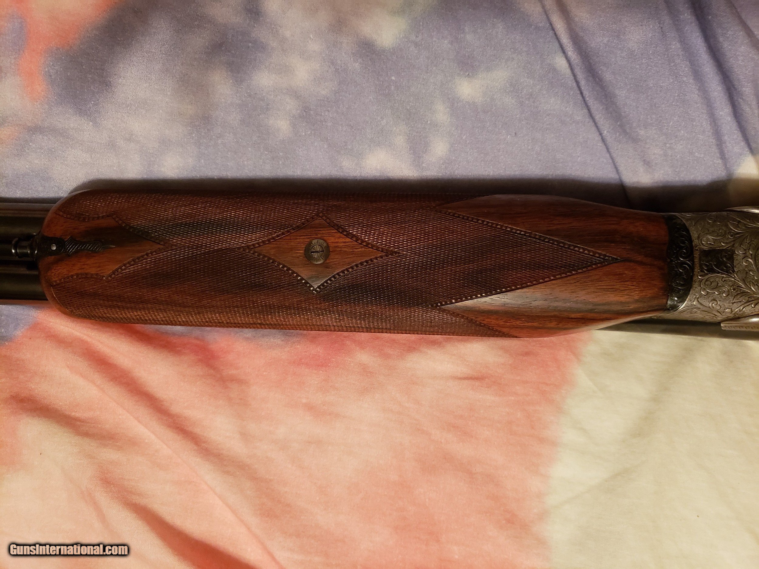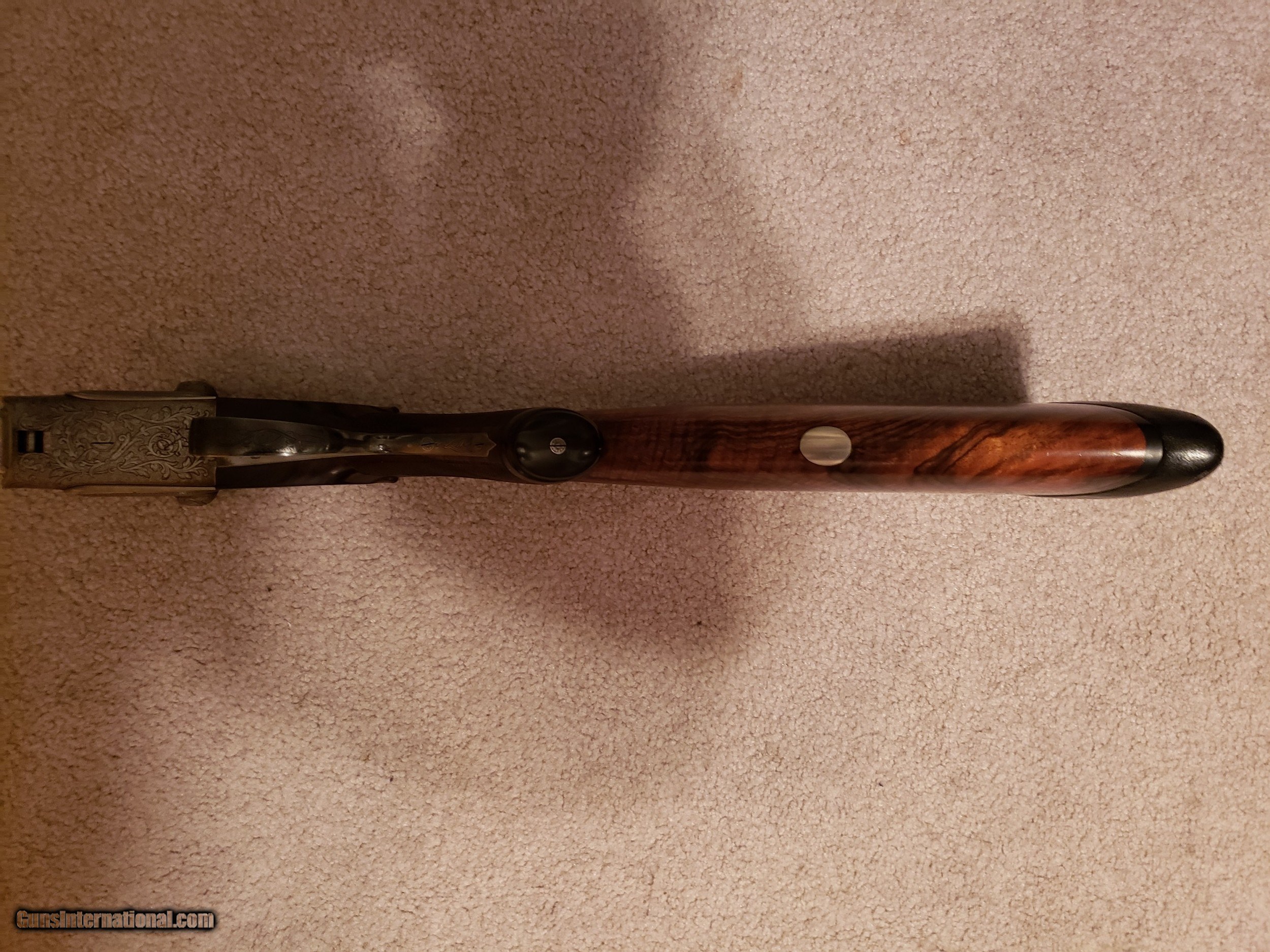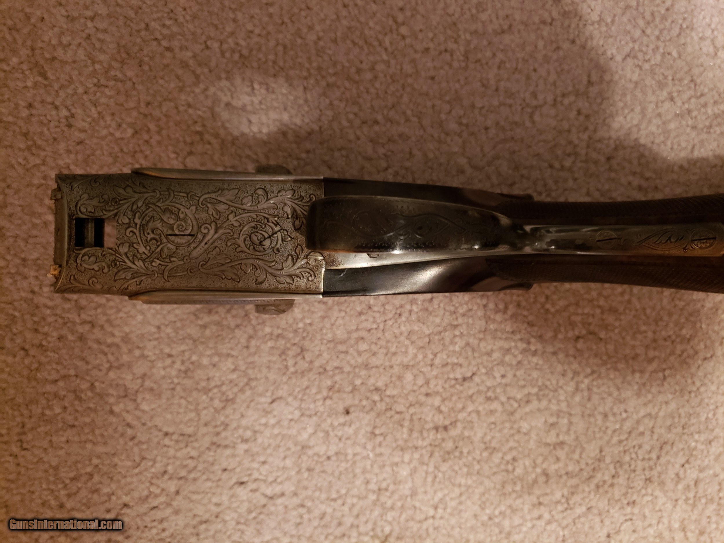 Description: N. Lajot Belgium - 1930, side lock 7-pin, 12 gauge, single trigger, ejectors, vent rib. Choked full and full. 29 3/4" barrels, 8lbs. Drop at heel 1 7/8" Drop at comb 1 1/2". LOP 14 1/4" Overall length 46 3/4". SOLD Shotgun Gauge: 12 Gauge Manufacturer: N. Lajot Condition: Excellent Metal Condition: Excellent Wood Condition: Excellent Bore Condition: Excellent |