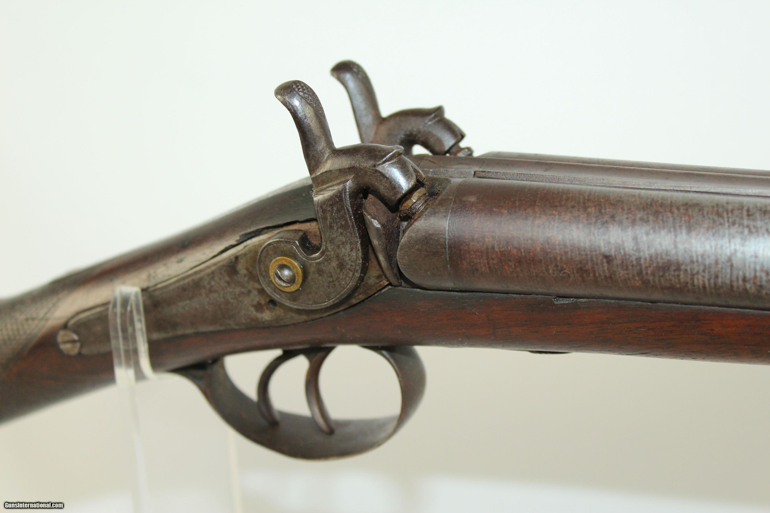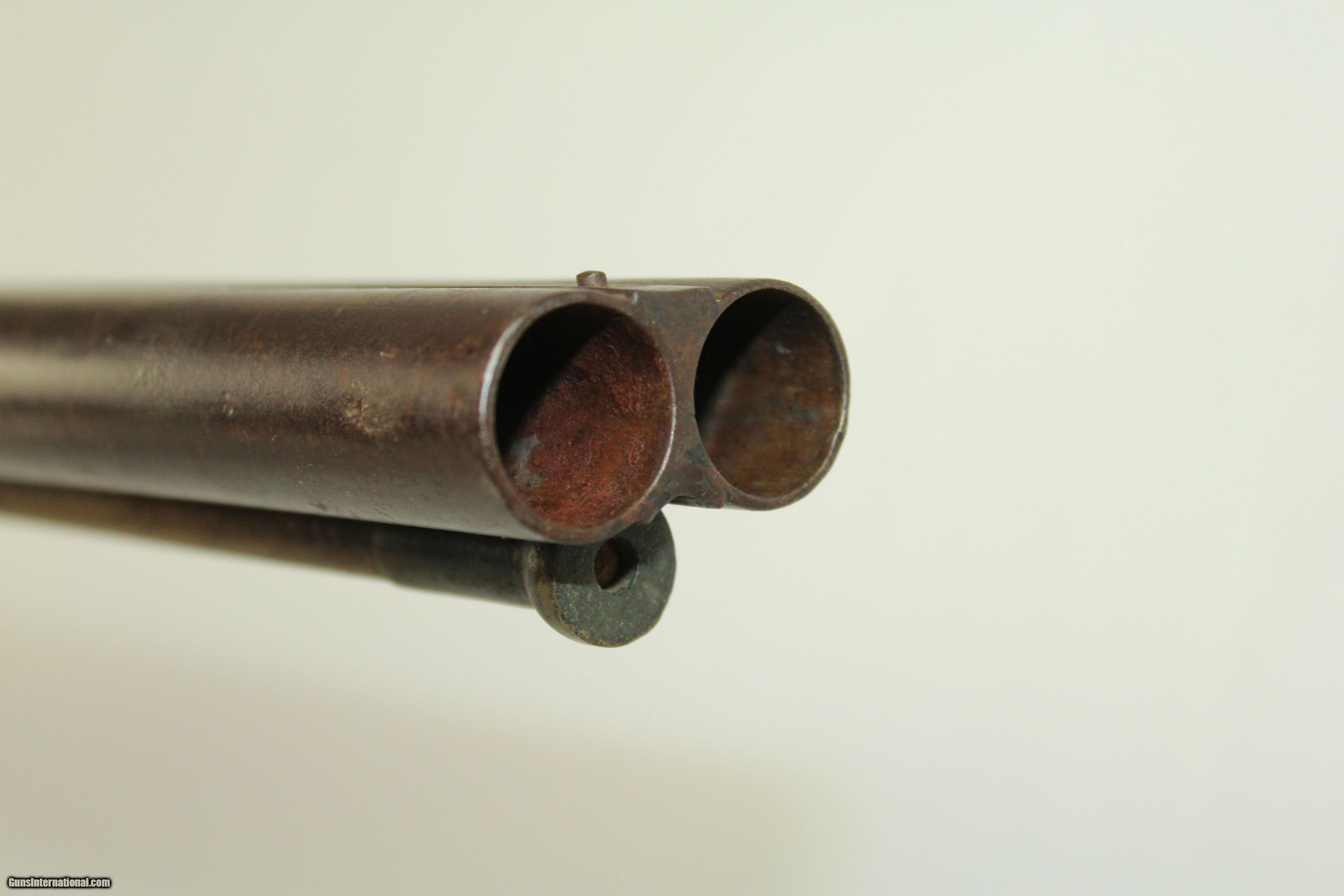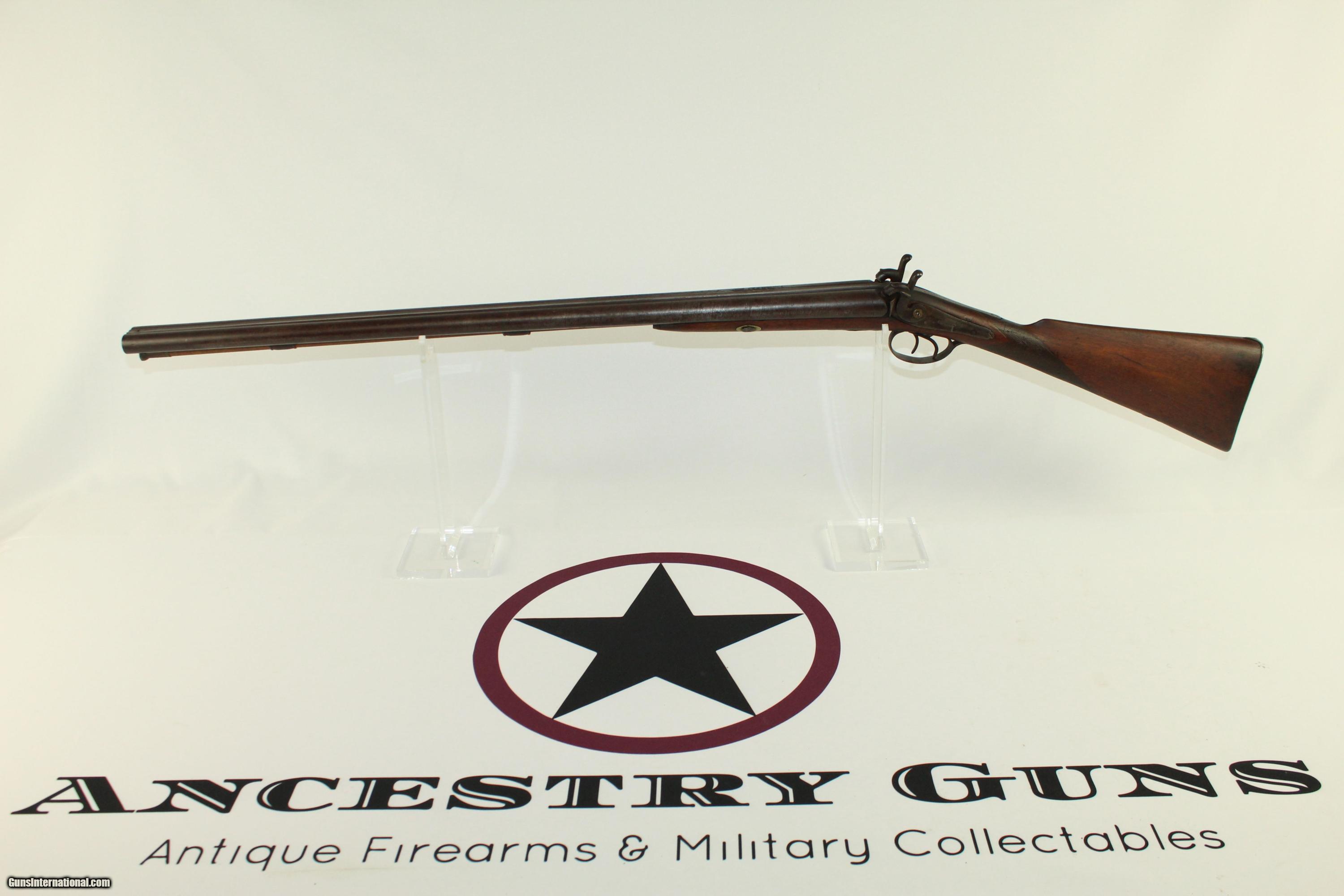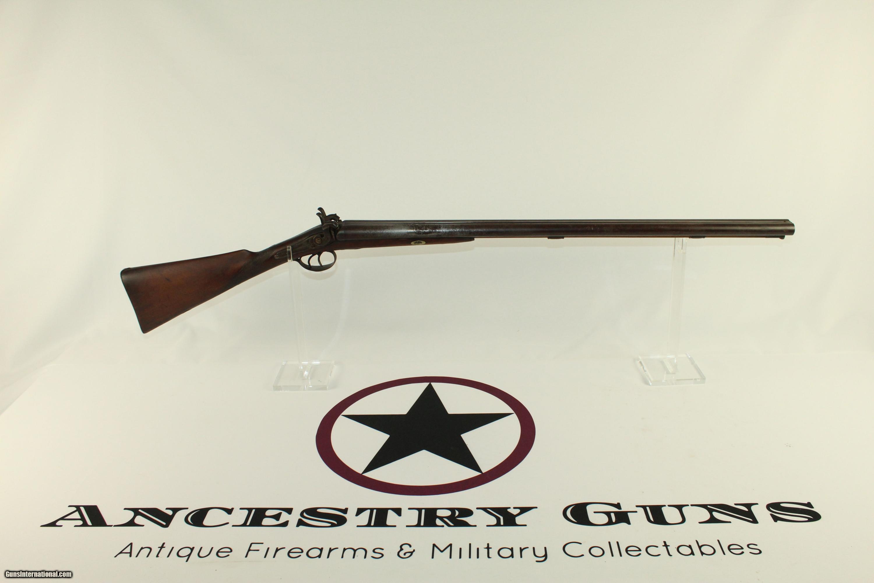 Description: PERKINS Antique Percussion Hammer Shotgun 11 Gauge Circa 1850s Belgian Import to U.S. Here we present an antique Perkins & Cie Double Barrel Hammer Percussion Shotgun, made circa the 1850s, in Liege, Belgium. Then, like today, shotguns were highly valued tools, especially for hunting and protection. In the absence of many makers of shotguns in the United States, many were imported from Europe, especially from Great Britain and Belgium. This example is Belgian and bears the proof marks. Each side of the lock is marked “PERKINS & CIE”. The top of the barrel is marked “LAMINATED STEEL”. The bores are approximately 11 guage. This specimen is in good overall condition. The metal has an even, aged patina, with the original twist pattern visible underneath. The markings are clear & legible. The walnut stock shows use, but is in good condition. The bores are smooth and in good condition. The action is strong. Own the original! This is a legitimate antique and not a reproduction. Barrel is 18 inches in length. Caliber: 11 gauge (.74 inches) Overall condition as seen in photos. Very Fast. Very Safe. FREE SHIPPING WORLDWIDE. Delivered directly to your door by express mail! Guaranteed AUTHENTIC & Includes CERTIFICATE OF AUTHENTICITY. ancestryguns $800 #10413 SOLD Antique: Yes |