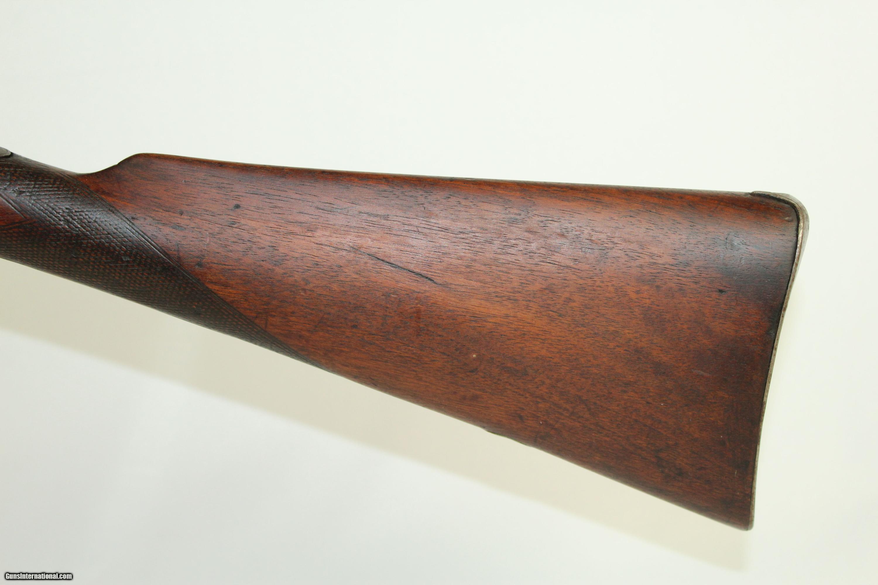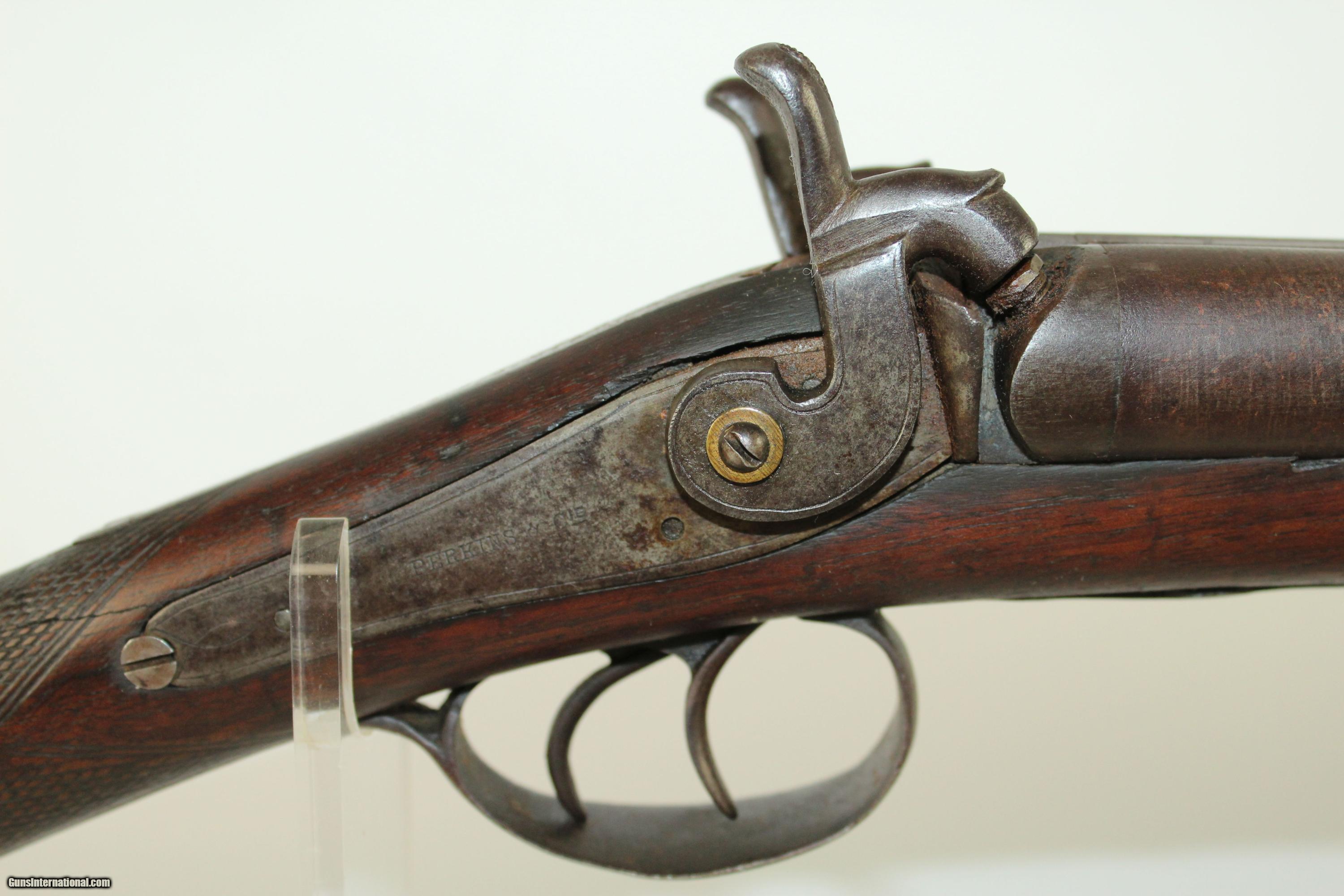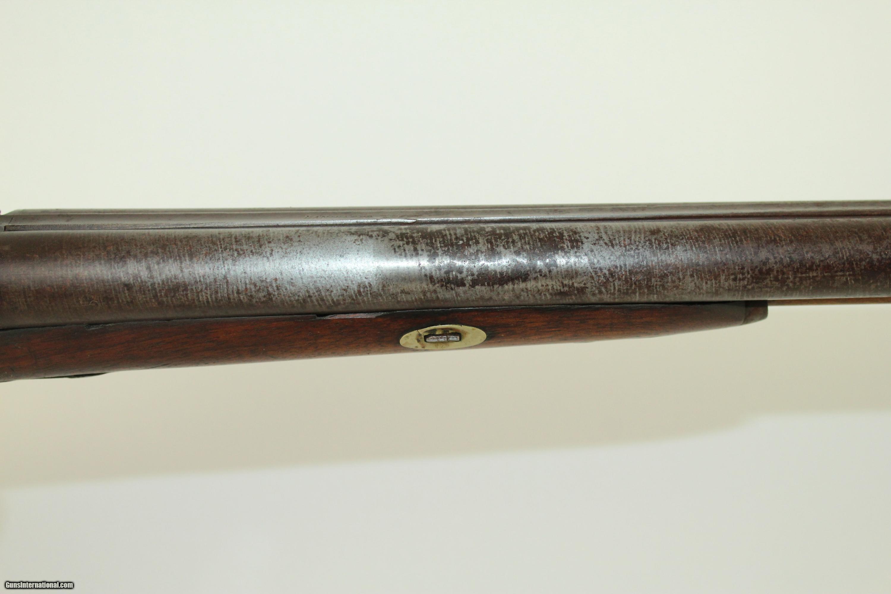 Description: PERKINS Antique Percussion Hammer Shotgun 11 Gauge Circa 1850s Belgian Import to U.S. Here we present an antique Perkins & Cie Double Barrel Hammer Percussion Shotgun, made circa the 1850s, in Liege, Belgium. Then, like today, shotguns were highly valued tools, especially for hunting and protection. In the absence of many makers of shotguns in the United States, many were imported from Europe, especially from Great Britain and Belgium. This example is Belgian and bears the proof marks. Each side of the lock is marked “PERKINS & CIE”. The top of the barrel is marked “LAMINATED STEEL”. The bores are approximately 11 guage. This specimen is in good overall condition. The metal has an even, aged patina, with the original twist pattern visible underneath. The markings are clear & legible. The walnut stock shows use, but is in good condition. The bores are smooth and in good condition. The action is strong. Own the original! This is a legitimate antique and not a reproduction. Barrel is 18 inches in length. Caliber: 11 gauge (.74 inches) Overall condition as seen in photos. Very Fast. Very Safe. FREE SHIPPING WORLDWIDE. Delivered directly to your door by express mail! Guaranteed AUTHENTIC & Includes CERTIFICATE OF AUTHENTICITY. ancestryguns $800 #10413 SOLD Antique: Yes |