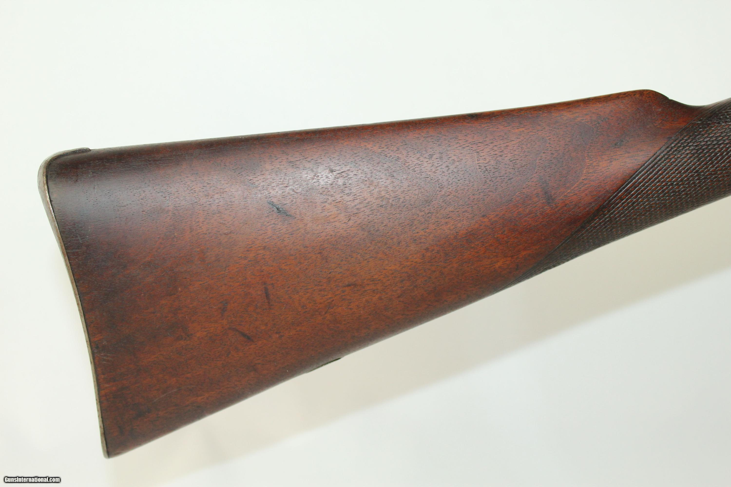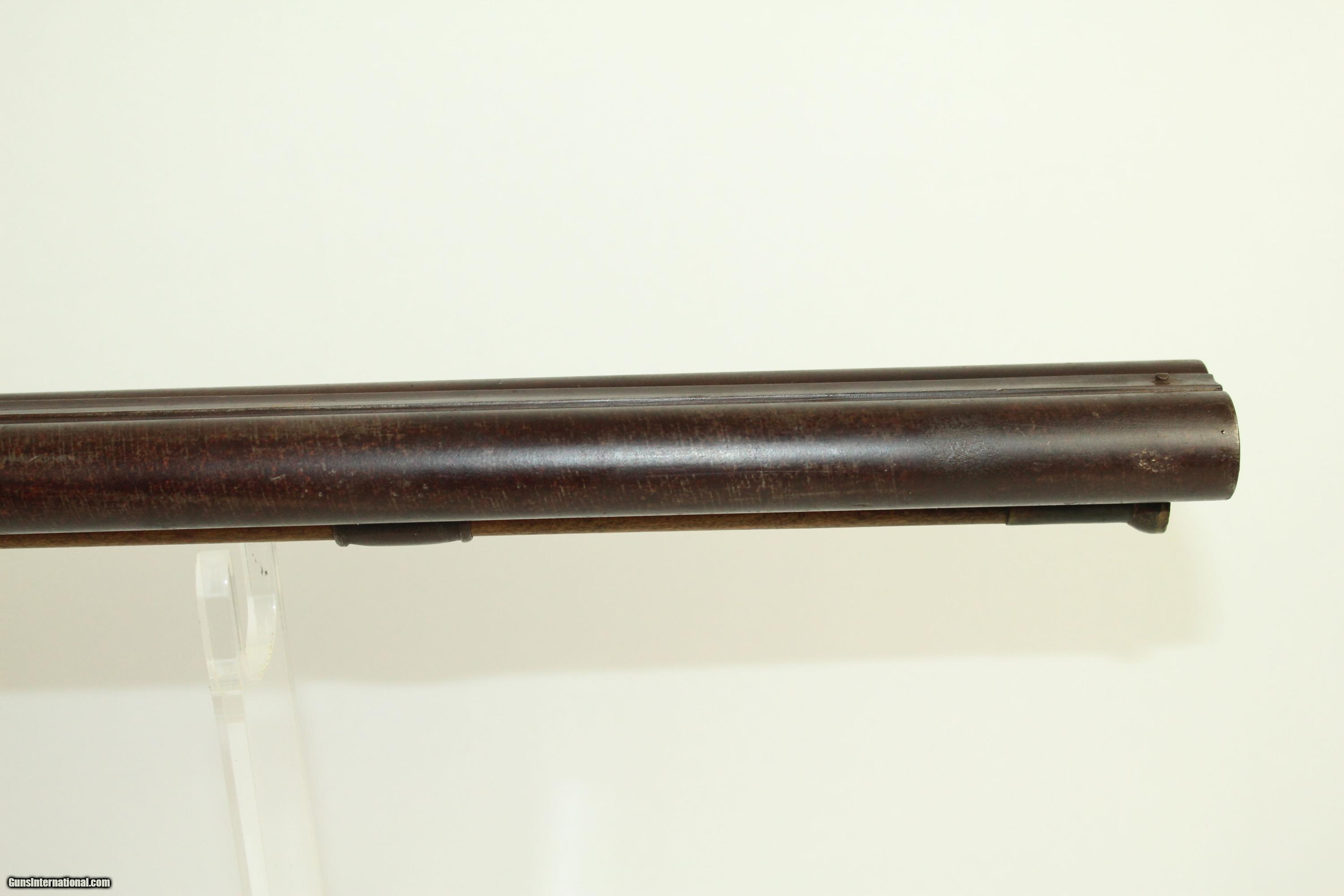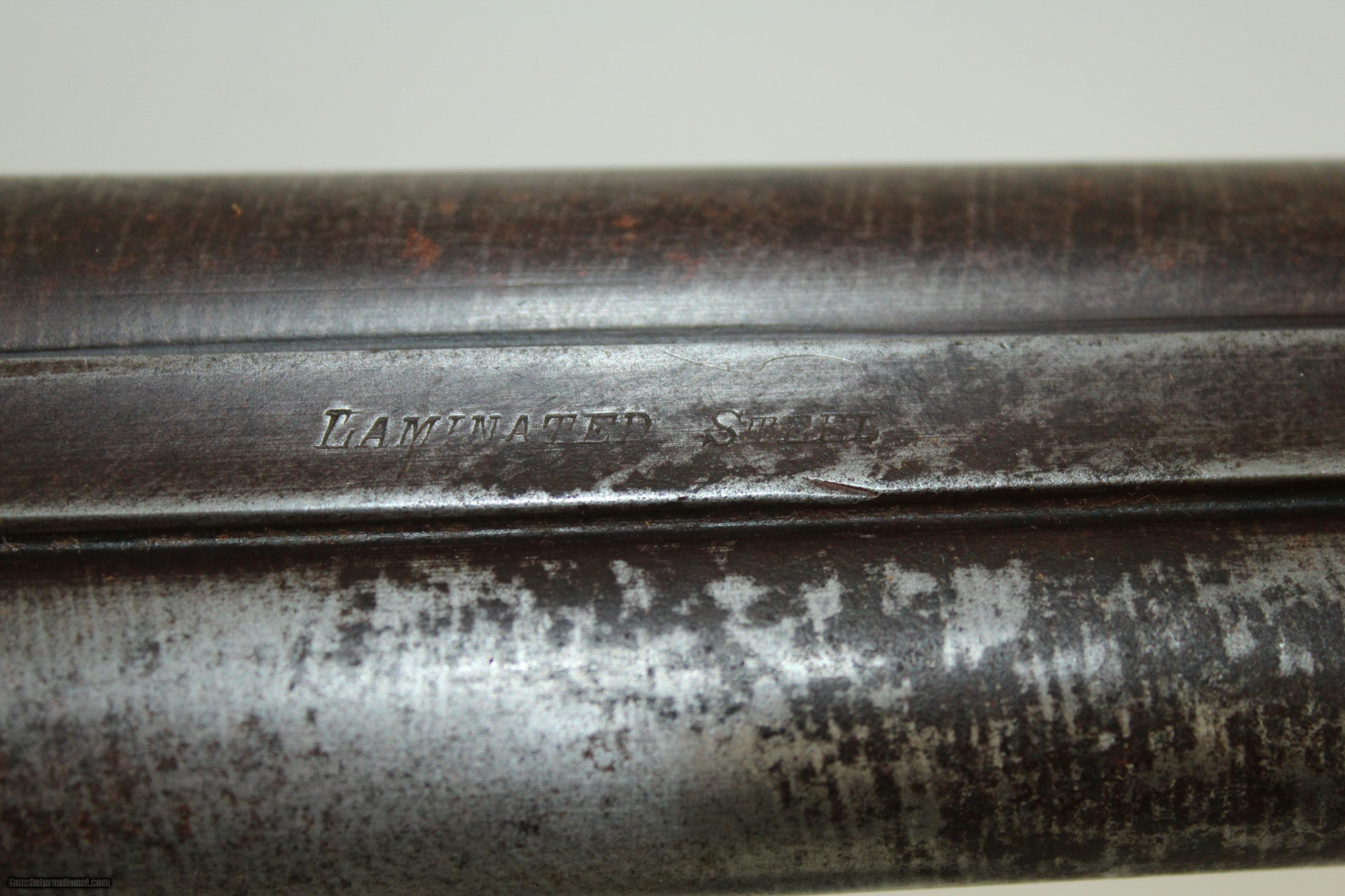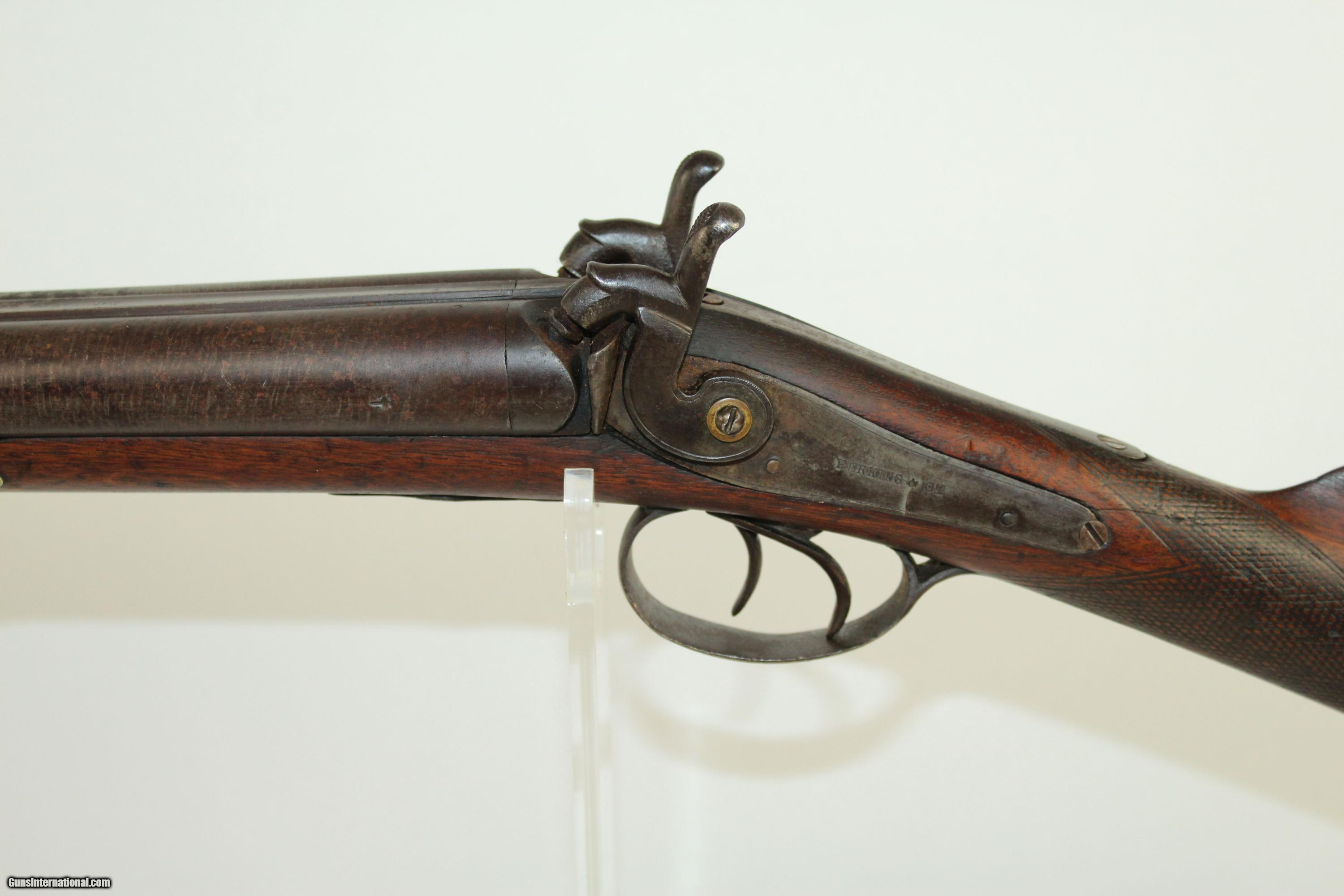 Description: PERKINS Antique Percussion Hammer Shotgun 11 Gauge Circa 1850s Belgian Import to U.S. Here we present an antique Perkins & Cie Double Barrel Hammer Percussion Shotgun, made circa the 1850s, in Liege, Belgium. Then, like today, shotguns were highly valued tools, especially for hunting and protection. In the absence of many makers of shotguns in the United States, many were imported from Europe, especially from Great Britain and Belgium. This example is Belgian and bears the proof marks. Each side of the lock is marked “PERKINS & CIE”. The top of the barrel is marked “LAMINATED STEEL”. The bores are approximately 11 guage. This specimen is in good overall condition. The metal has an even, aged patina, with the original twist pattern visible underneath. The markings are clear & legible. The walnut stock shows use, but is in good condition. The bores are smooth and in good condition. The action is strong. Own the original! This is a legitimate antique and not a reproduction. Barrel is 18 inches in length. Caliber: 11 gauge (.74 inches) Overall condition as seen in photos. Very Fast. Very Safe. FREE SHIPPING WORLDWIDE. Delivered directly to your door by express mail! Guaranteed AUTHENTIC & Includes CERTIFICATE OF AUTHENTICITY. ancestryguns $800 #10413 SOLD Antique: Yes |
