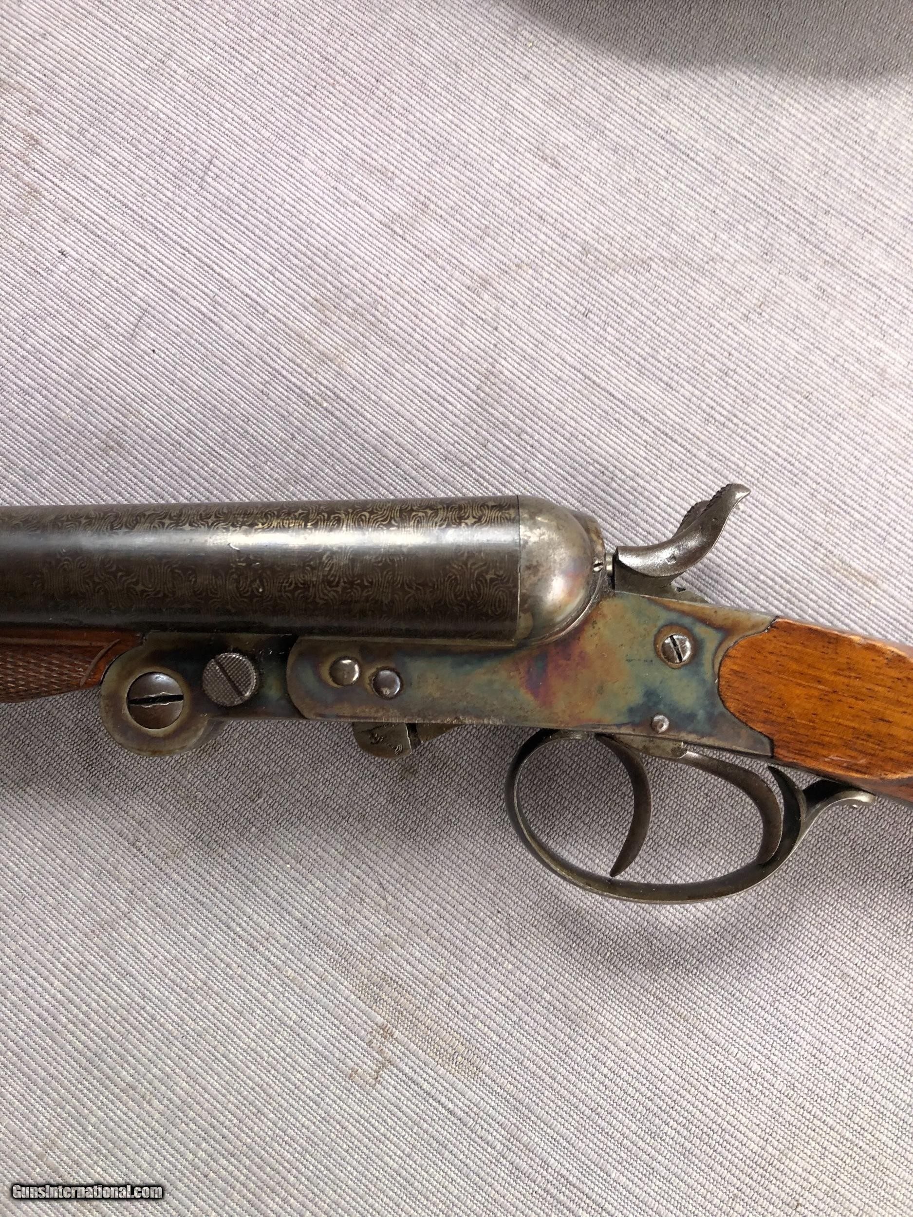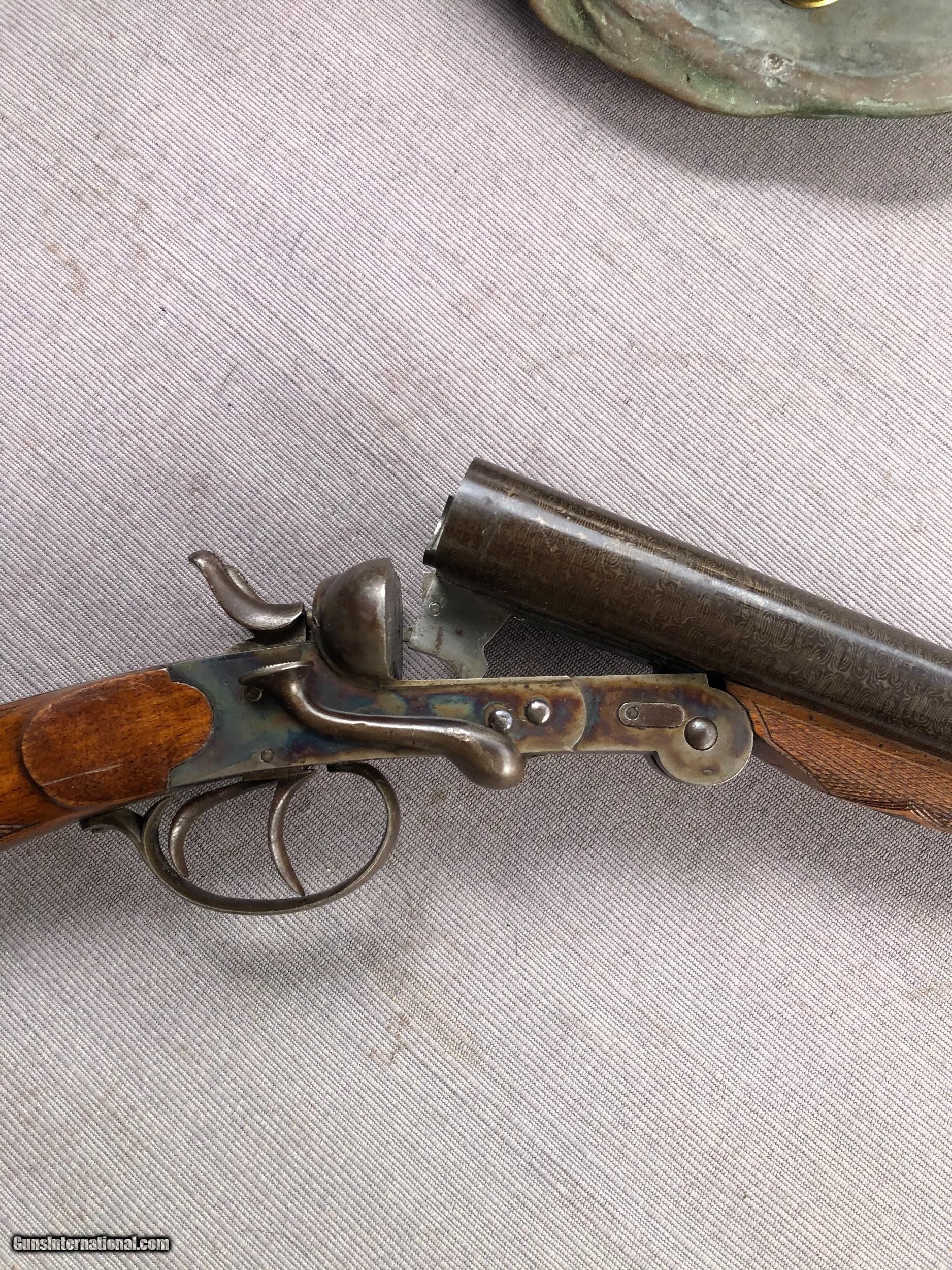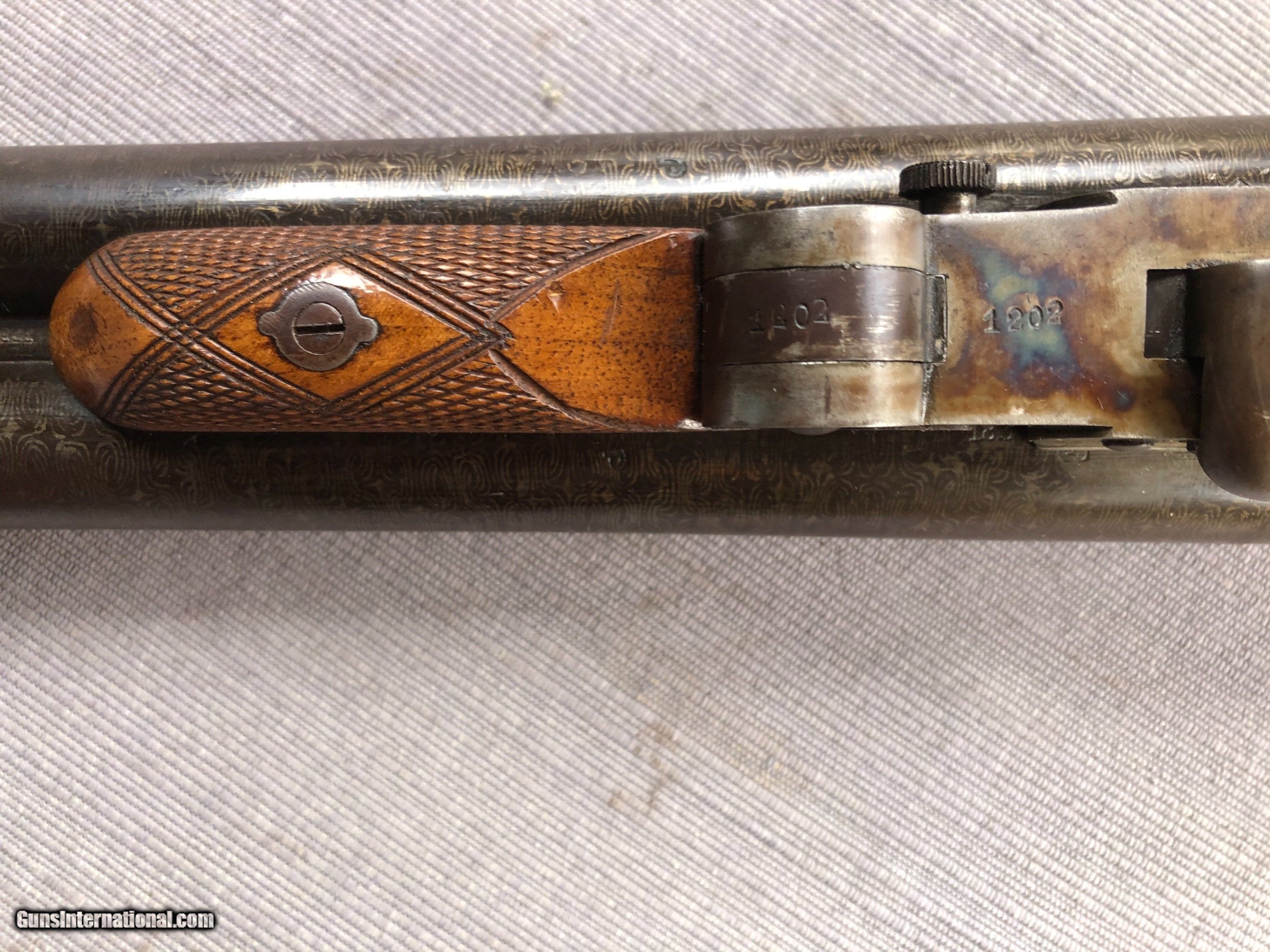Description: Unique, very high quality Belgian folding shotgun, might be unfired, 4.9 pounds, 21 1/2 inch mod and mod barrels, 95% original finish on barrels case colors and stock SOLD Antique: Yes |