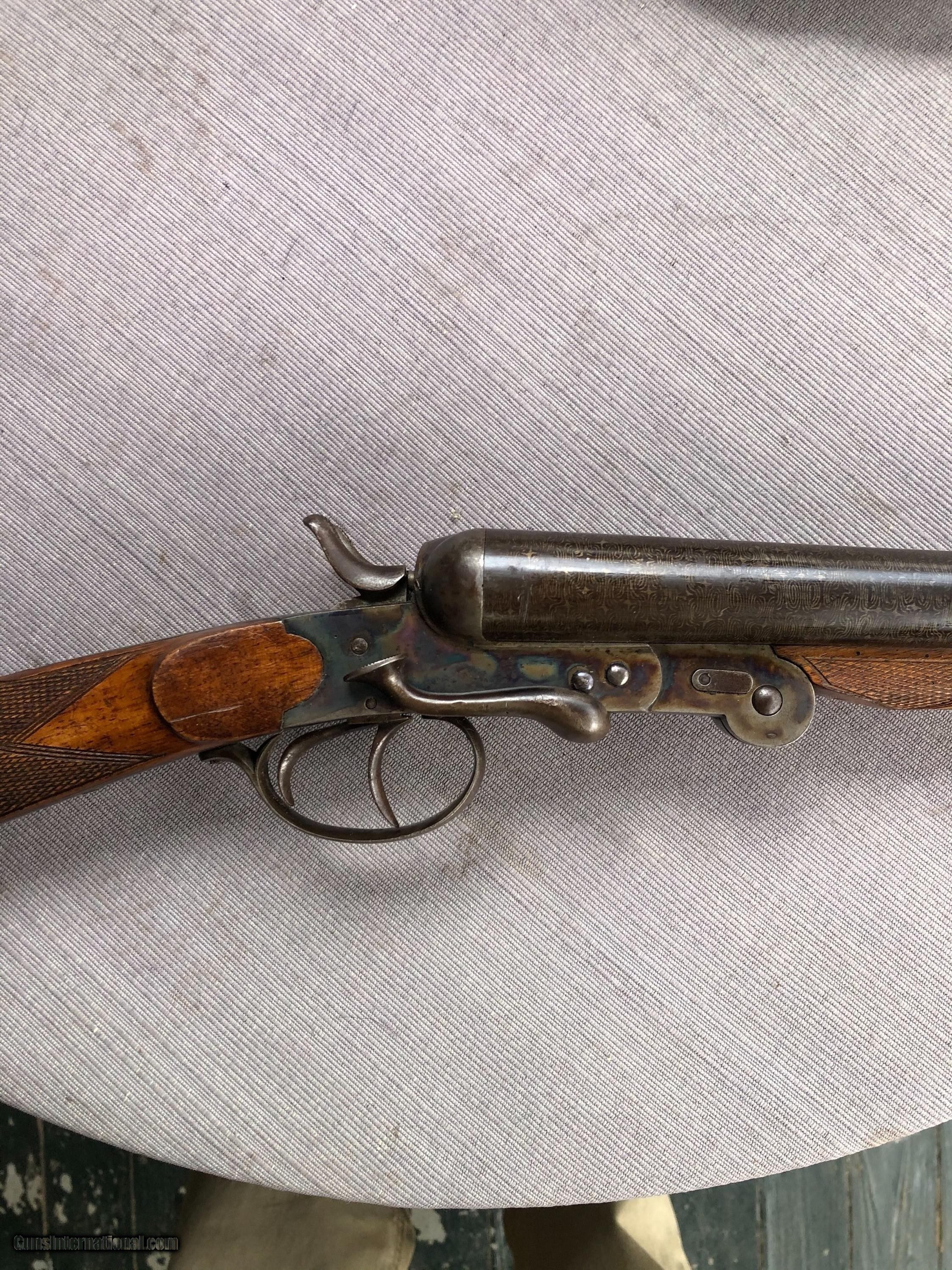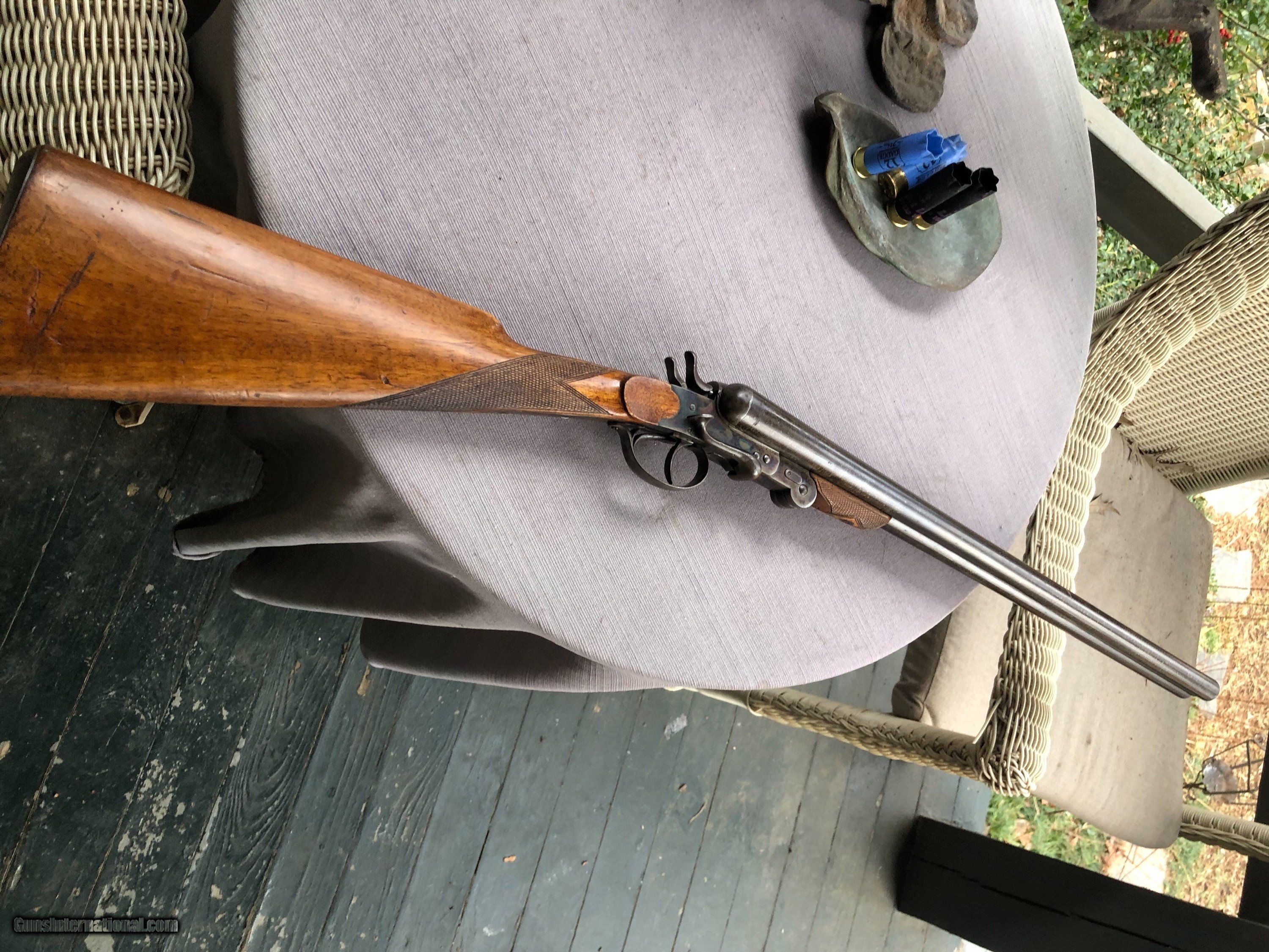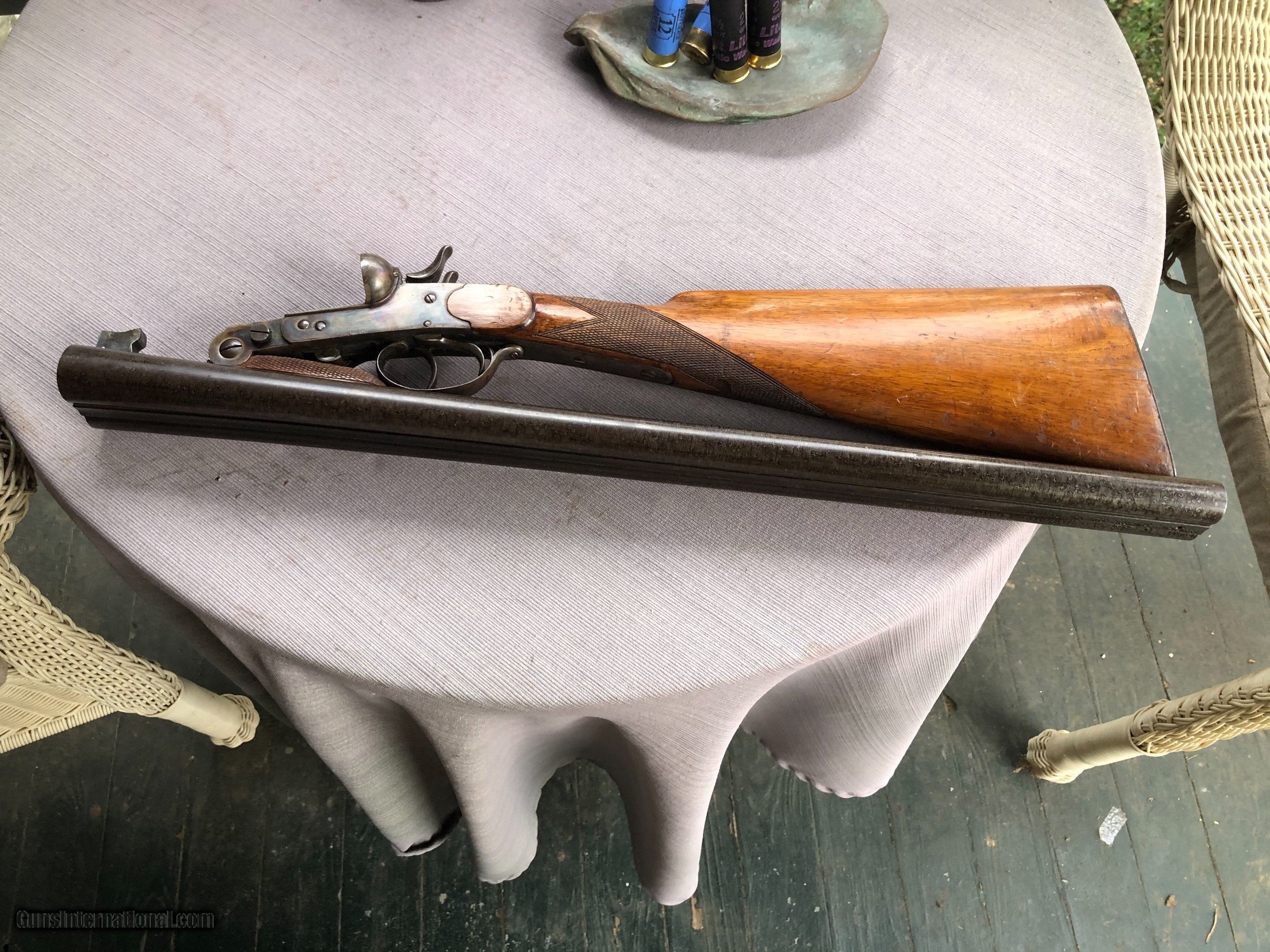 Description: Unique, very high quality Belgian folding shotgun, might be unfired, 4.9 pounds, 21 1/2 inch mod and mod barrels, 95% original finish on barrels case colors and stock SOLD Antique: Yes |