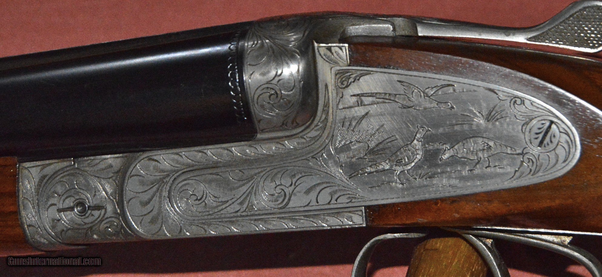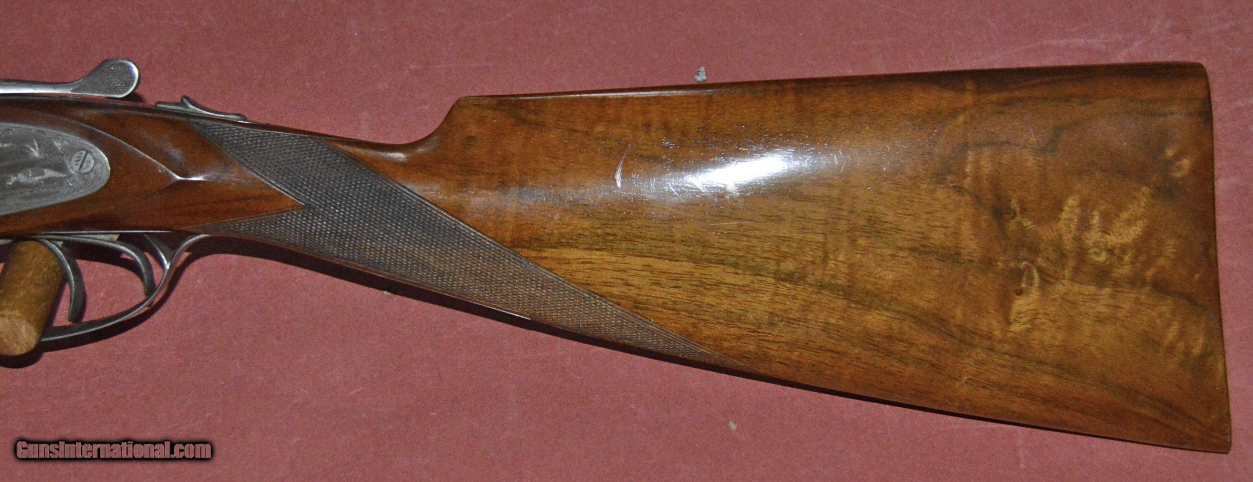 Description: A sidplated boxlock ejector built by Jaquemart of Leige Belgium.This gun has 271/2" barrels choked improved cylinder (.010") and modified (.018").The sideplated are hand engraved with game scenes.The gun has double triggers,ejectors,and a stright grip stock with 143/8"LOP to a checkered butt.This is a great all around upland game gun the weighs onlu 6-0 lbs.A great value.Selling for a friend so cannot trade. SOLD Manufacturer: Jaquemart Model: Sideplated Boxlock Serial Number: 634 Chambers: 23/4 Metal Condition: excellent Wood Condition: excellent Bore Condition: mint Action: double barrel Triggers: double Gauge Info: 20ga Stock Dimensions: 143/8"x11/2"x25/8 Butt Pad: checkered butt Weight: 6-0 Engraving: hand engraved |