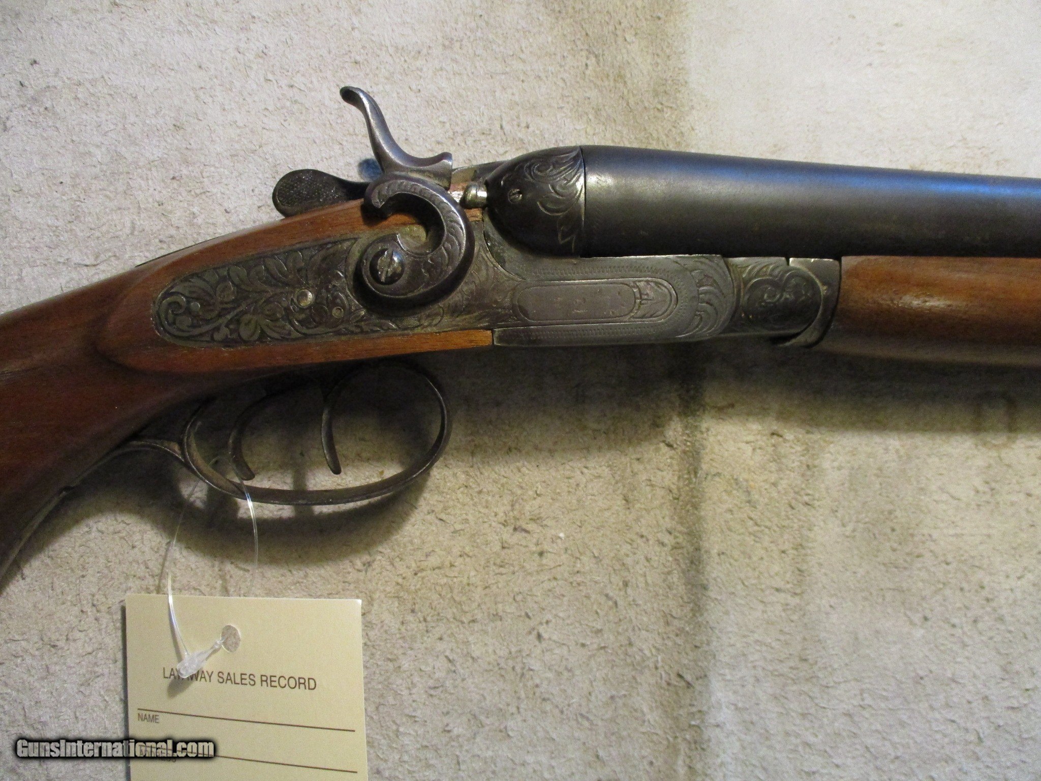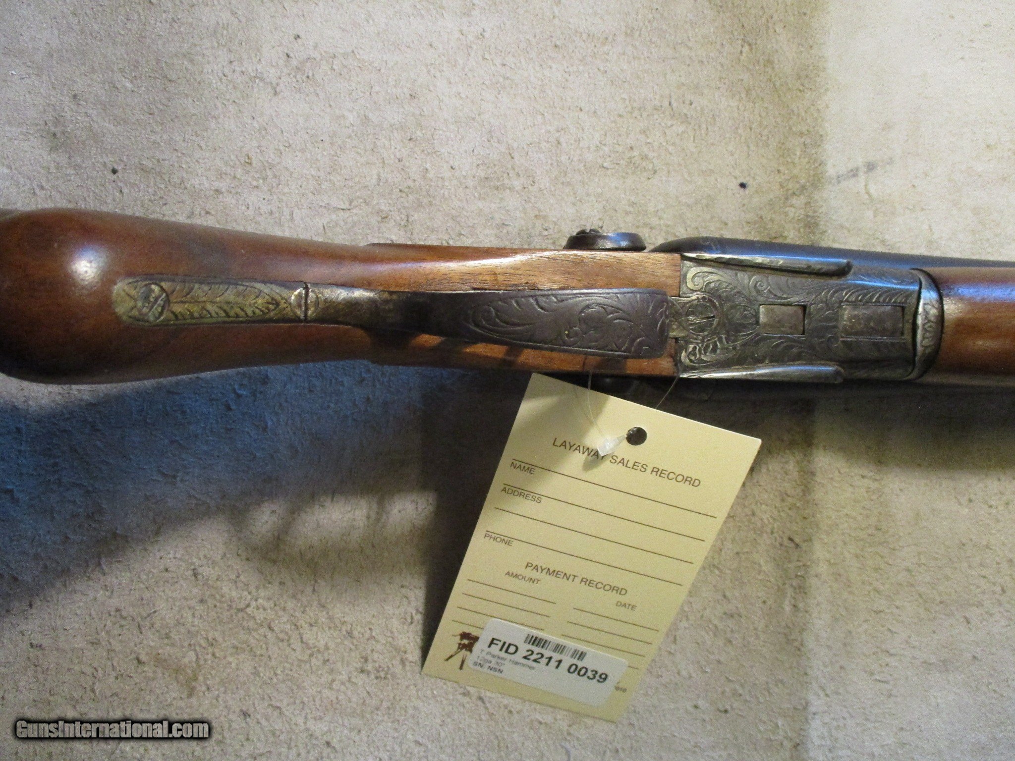 Description: T. Parker Belgium made side by side, 12ga, 30" Double trigger, extractros. No serial number. Hammers and triggers both woth as they should. Pretty decent bore, action is on face. I think it will be a fine shooter but I would recomend black powder shells only. We will trade for silver and gold. We accept personal check, any certified funds, Venmo or Zelle. We can also take your credit card, +3%. Email me if you would like these pictures sent to you, they will come through bigger and better than on the listing page here. We do offer Layaway. Our standard terms are 25% down, 90 days. Initial deposit is not refundable. Email me with any questions. Please check your local laws to confirm it is legal to own in your state! Buyer pays $60 shipping and insurance in a brand new PLANO hard case to your FFL in the lower 48. AK, HI or PR is extra. I will ship to California, as long as it is legal, NO PROBLEM! All my guns come with a non-firing, 3 day unconditional return privilege, from the day UPS delivers to your dealer. Buyer pays shipping both ways if the gun comes back. Please make sure to make it to your FFL to inspect within the 3 days. I am a licensed FFL, and will include a copy of my FFL with the gun for your dealer’s records. I will ship to a C&R if the gun is eligible. I will ship to California, but you need to confirm the gun is legal where you are, California or other. WE BUY AND CONSIGN GUNS AND GUN COLLECTIONS! We will travel to pick up collections! I am always looking for good clean, old original Winchesters to buy, consign, or trade, especially Pre '64's model 70's and model 54's. WE ALSO TRADE FOR CLASSIC CARS AND TRUCKS! We also trade for gold and silver. SOLD Shotgun Gauge: 12 Gauge Manufacturer: T. Parker Model: Hammer Barrel Length: 30 Condition: Used |