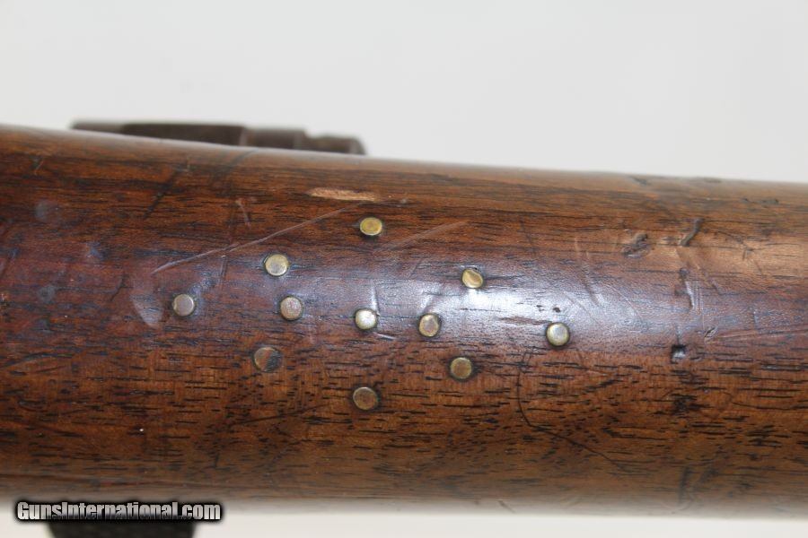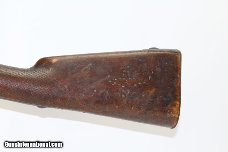 Description: BELGIAN “ZULU” Snider Single Shot Shotgun “An admirable Boy’s or Farmer’s Gun” Here we present a Tabatiere Breech-loading Shotgun, frequently known as “Zulu”. The origin of this shotgun is an interesting one. Originally, this was an 1857 French musket. Soon after they converted these muzzleloaders to breech-loaders, using the Snider system, so that they became known as the System 1867. They were used in the Franco-Prussian War in which the French were defeated. By the end of the war, the French decided that the converted muskets were unacceptable and once again updated their arsenals, this time with the 1874 Gras. Being that there was no military use for these surplus guns as they were, a Belgian gunmaker, Bertrand & Fils, had the idea to convert these (for a second time) into shotguns. The name “Zulu” was probably inspired by the British Colonial Zula War of 1879, around the time period where sales of these guns was at its highest. Imports to the United States were good throughout the end of the 19th Century, until domestic production of single shot shotguns caught up with competitive options. Companies like E.C. Meacham in St. Louis and Sears & Roebuck in Chicago both sold these and marketed them as “an admirable Boy's or Farmer's Gun, and fills a long-felt want for a good breechloader at a moderate price. 12 gauge, 7 1/2 pounds, 33 inch. Uses regular brass or paper shells.” This as the Western portion of the United States was still quite unsettled and need for affordable workhorse firearms was high. This one is marked “ZULU” on the top of the barrel. The stock is decorated with various designs utilizing brass tacks. The wrist was checkered by hand at some time. Belgian proof marks are visible throughout. The overall condition is good. The iron parts are dark with age. The markings are clear. The stock is in good shape, smooth and solid with appropriate signs of handling. The bore is smooth and clean. The action is excellent. The firing pin appears to be a replacement. Own the original! This is a legitimate antique and not a reproduction. Barrel is 33-1/8 inches. Caliber: 10 Gauge Overall condition as seen in photos. Very Fast. Very Safe. FREE SHIPPING WORLDWIDE. Delivered directly to your door by express mail! Guaranteed AUTHENTIC & Includes CERTIFICATE OF AUTHENTICITY. ancestryguns $600 #8437 SOLD Antique: Yes |