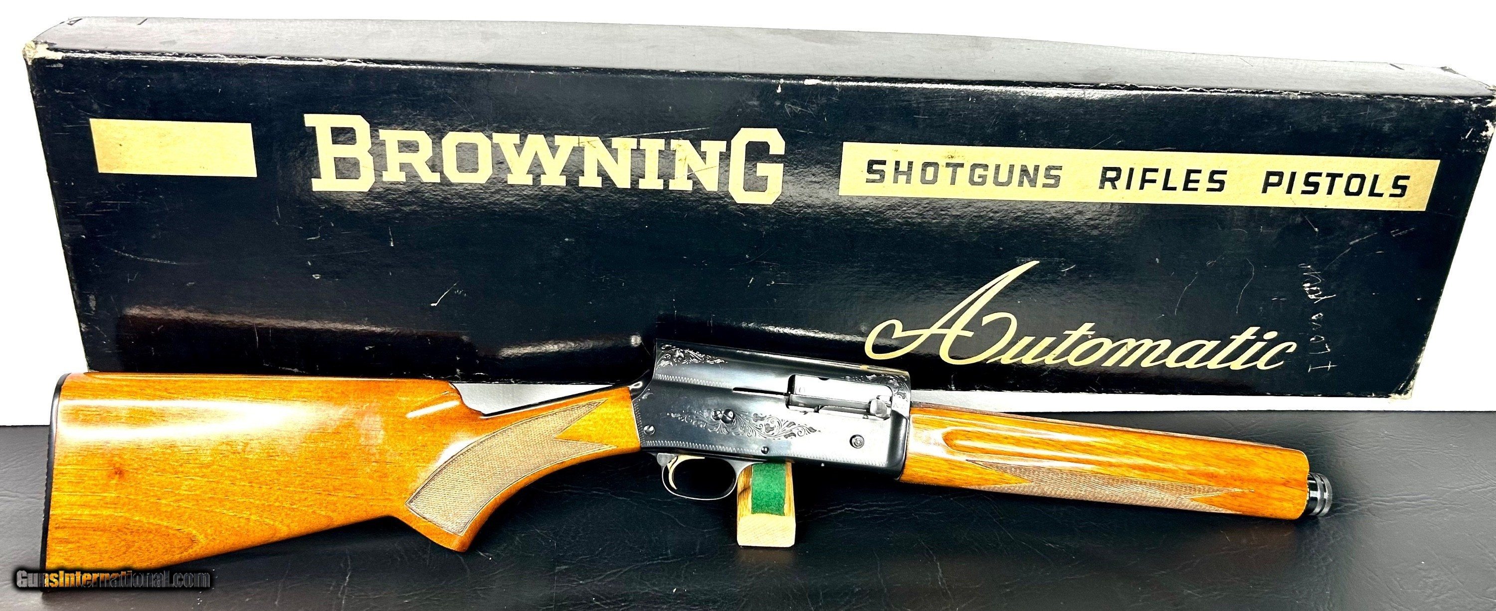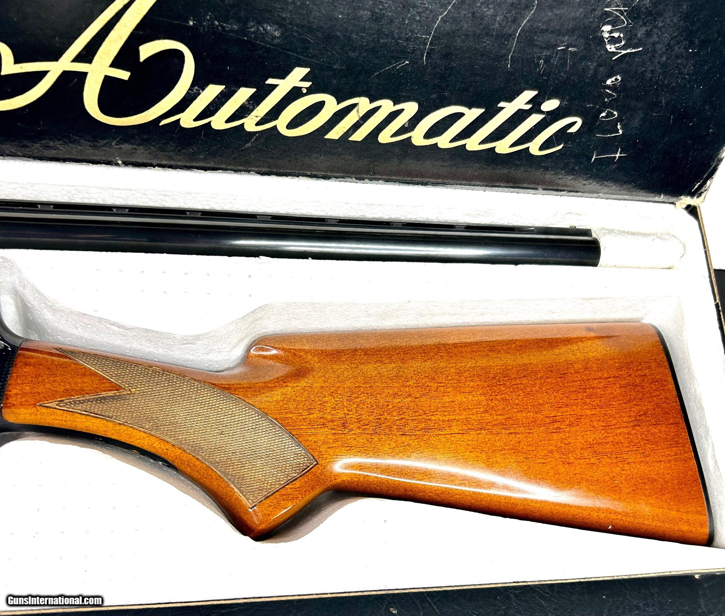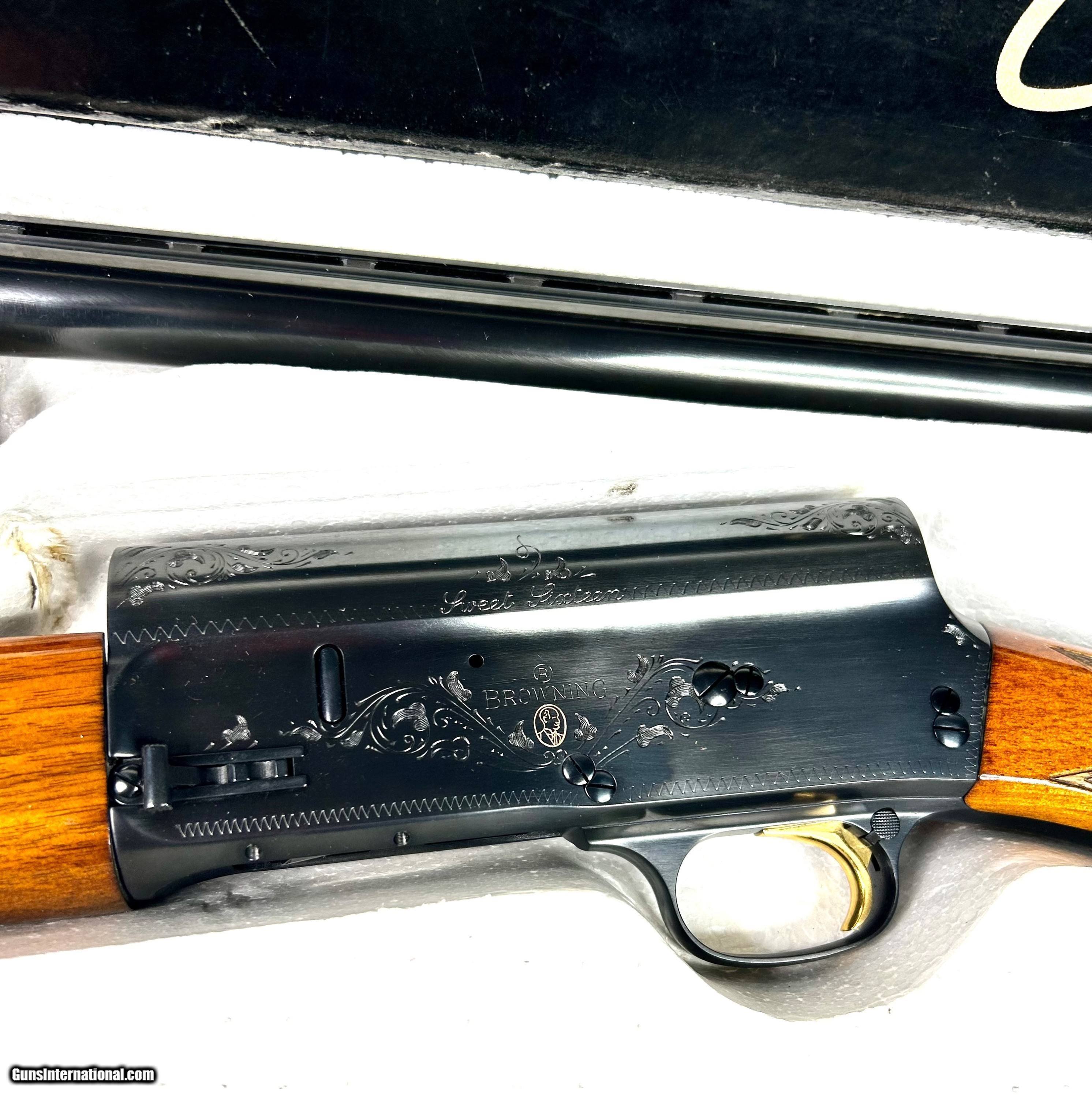 Description: A very nice Belgium Browning A5 Sweet 16 manufactured in 1971 in original labeled box. This appears to have been a Special order Sweet 16. John Browning's portrait is hi-lited with a gold border. Also, there are gold inlays on the trigger guard. One of the last Belgium Browning Sweet 16's. This gun is new old stock and it appears to have never been assembled. Curio/Relic: Yes Shotgun Gauge: 16 Gauge Manufacturer: Browning Model: A5 Serial Number: 71S3127 Barrel Length: 28 Bore Info: 16 ga Chambers: 2-3/4 Condition: New Metal Condition: New Wood Condition: New Bore Condition: New Barrels: 28 inch Barrel Type: Vented Rib Action: Semi Auto Triggers: Gold Plated Chokes: Modified Case: Original Shipping Case Item Location: PA Price: $3,900.00 Shipping: $100.00 Contact Seller |