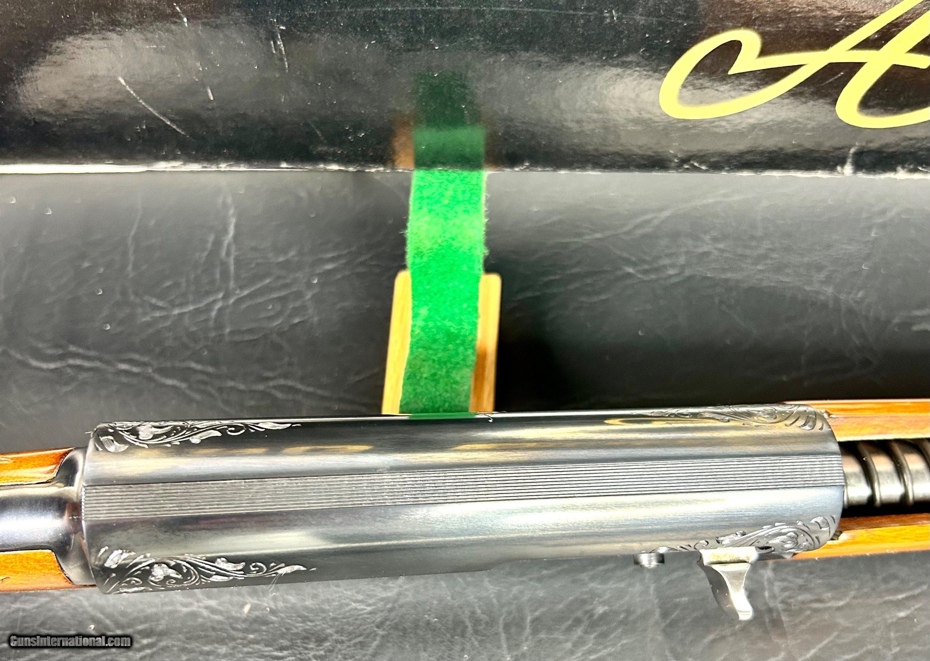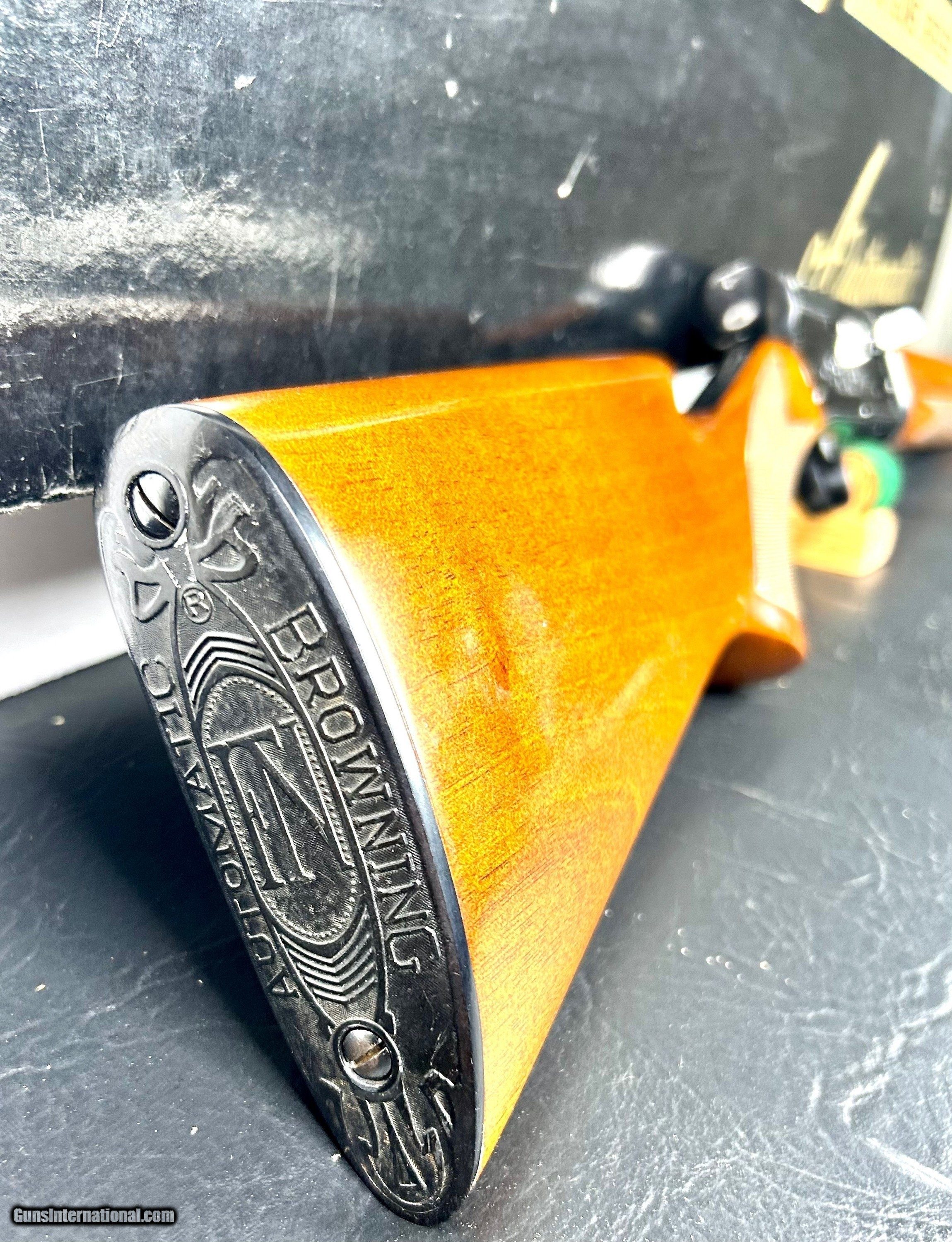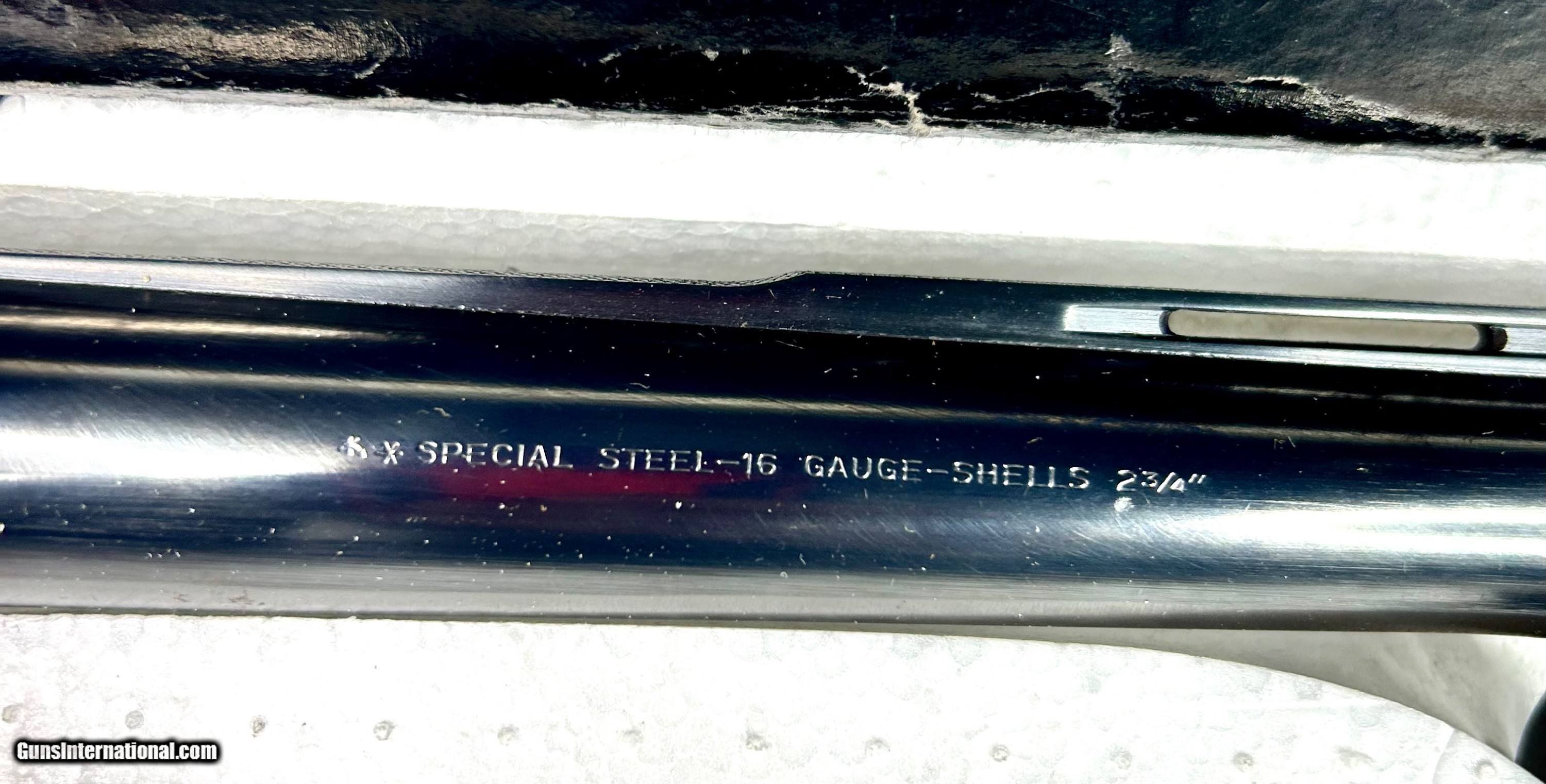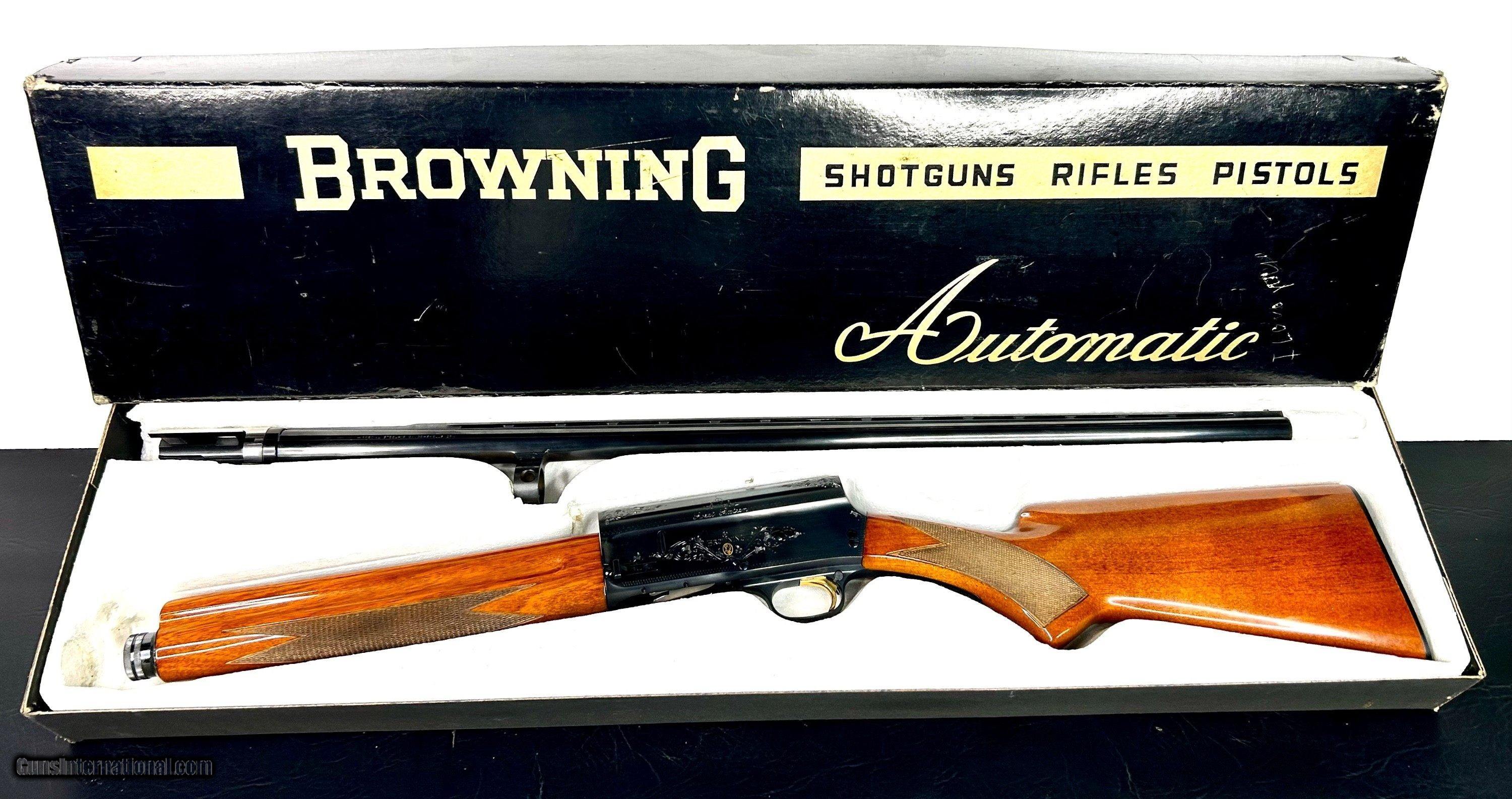 Description: A very nice Belgium Browning A5 Sweet 16 manufactured in 1971 in original labeled box. This appears to have been a Special order Sweet 16. John Browning's portrait is hi-lited with a gold border. Also, there are gold inlays on the trigger guard. One of the last Belgium Browning Sweet 16's. This gun is new old stock and it appears to have never been assembled. Curio/Relic: Yes Shotgun Gauge: 16 Gauge Manufacturer: Browning Model: A5 Serial Number: 71S3127 Barrel Length: 28 Bore Info: 16 ga Chambers: 2-3/4 Condition: New Metal Condition: New Wood Condition: New Bore Condition: New Barrels: 28 inch Barrel Type: Vented Rib Action: Semi Auto Triggers: Gold Plated Chokes: Modified Case: Original Shipping Case Item Location: PA Price: $3,900.00 Shipping: $100.00 Contact Seller |