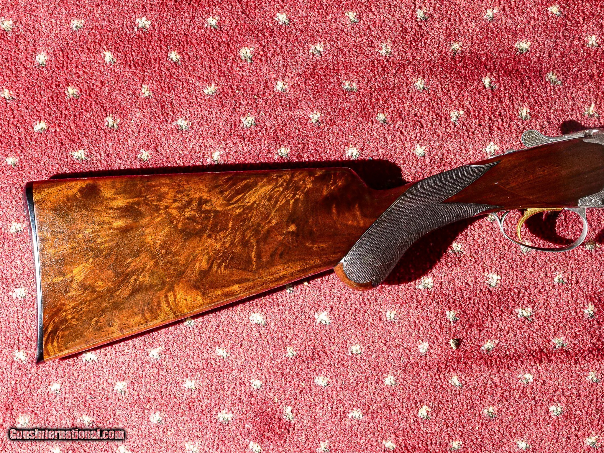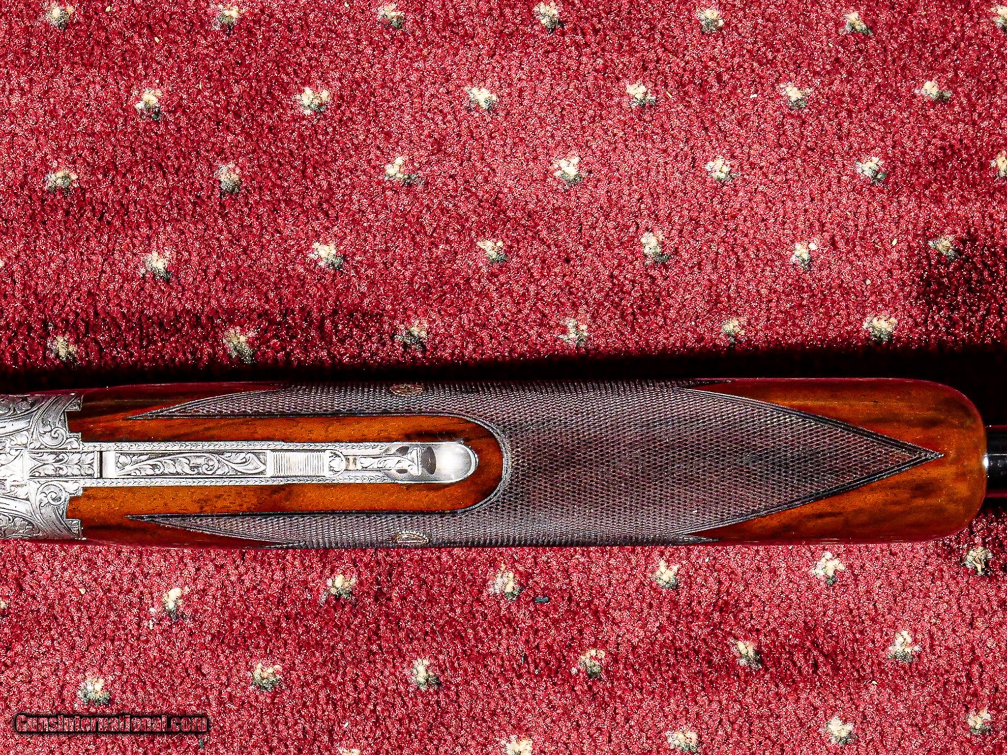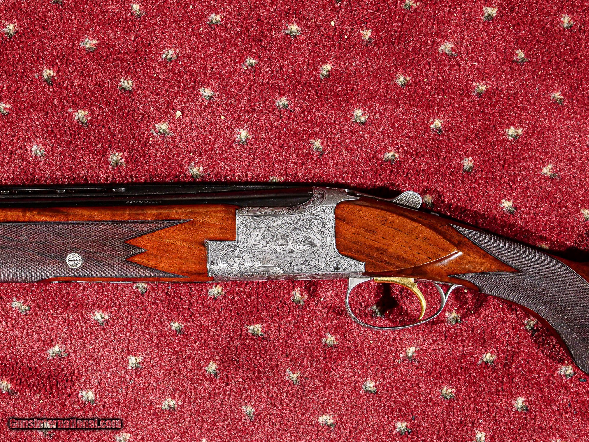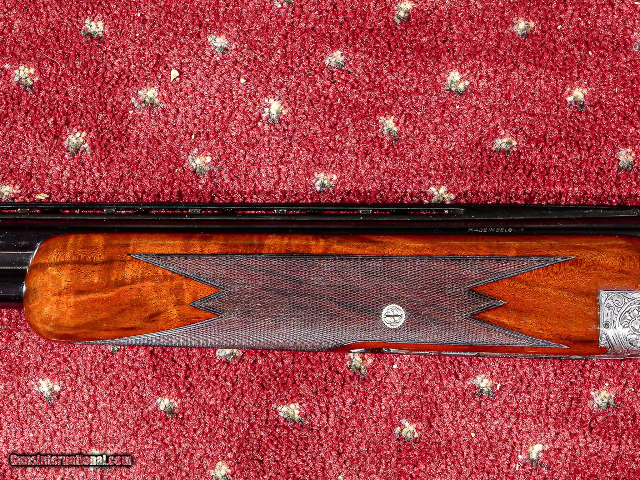 Description: Browning - Diana Grade, O/U, Made In Belgium, 20ga. 26 ½" Barrels Choked IC/M. Round knob, original butt plate, the finest piece of factory wood you’ve ever seen on a Browning. The gun is new, most likely never shot. Engraved by Marechal. Made in 1967, a beautiful field grade gun that is tight as the day it was made. Outstanding gun, rare find. Warrantied for life to the original owner courtesy of Connecticut Shotgun. Inv: 83363 5 lbs. 8 oz. 14 ¼ LOP $13,750.00 SOLD |