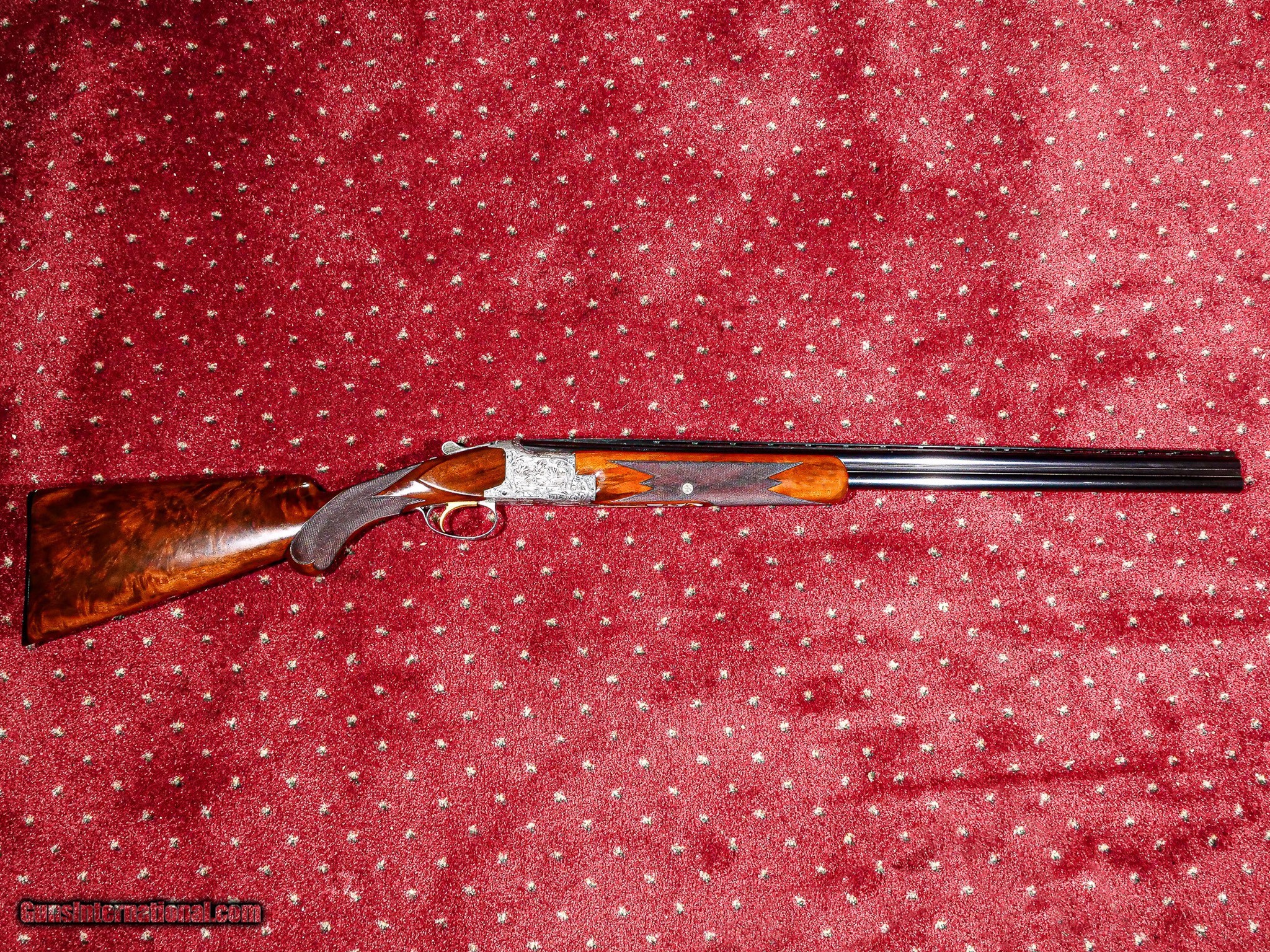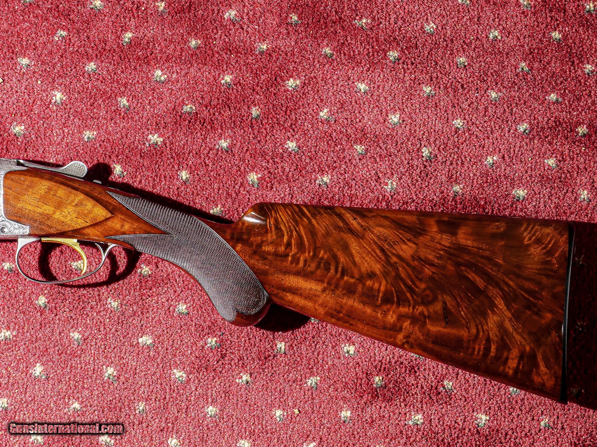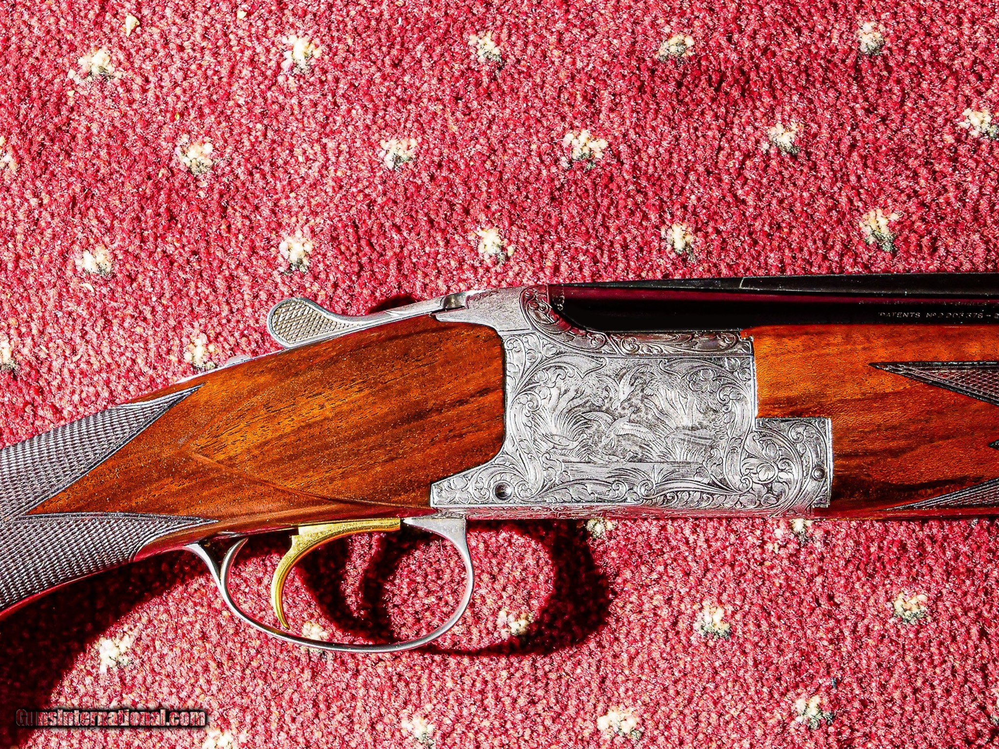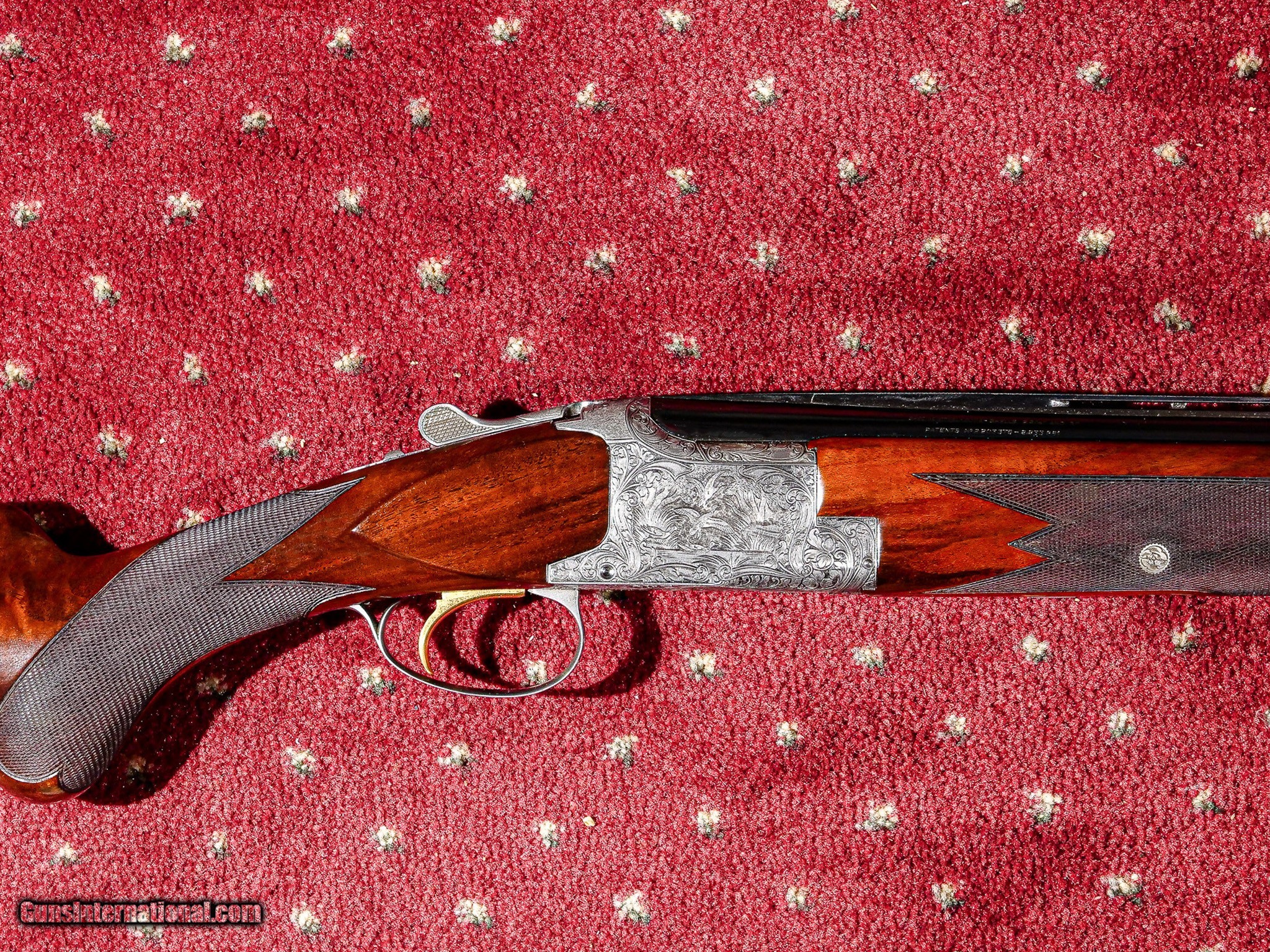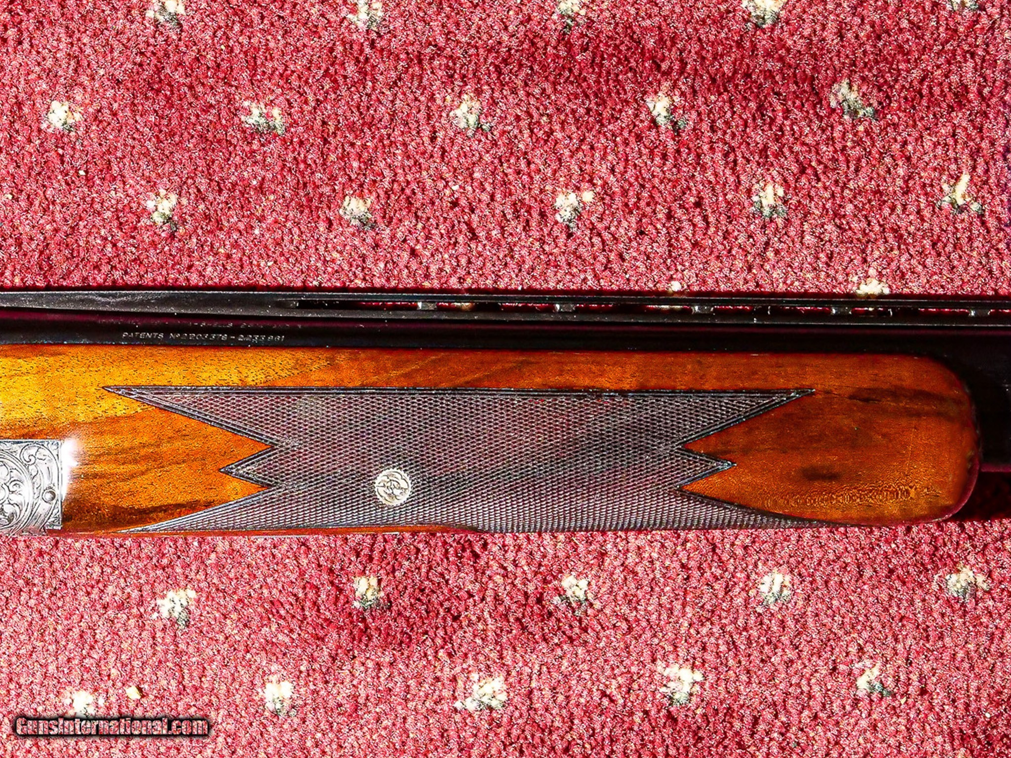 Description: Browning - Diana Grade, O/U, Made In Belgium, 20ga. 26 ½" Barrels Choked IC/M. Round knob, original butt plate, the finest piece of factory wood you’ve ever seen on a Browning. The gun is new, most likely never shot. Engraved by Marechal. Made in 1967, a beautiful field grade gun that is tight as the day it was made. Outstanding gun, rare find. Warrantied for life to the original owner courtesy of Connecticut Shotgun. Inv: 83363 5 lbs. 8 oz. 14 ¼ LOP $13,750.00 SOLD |