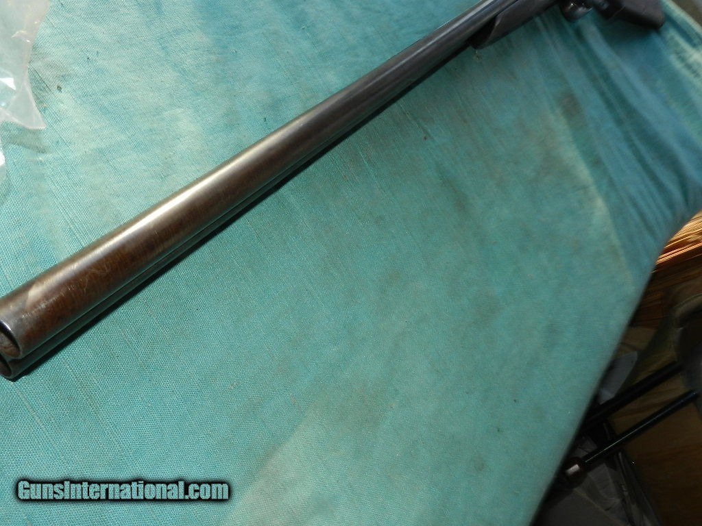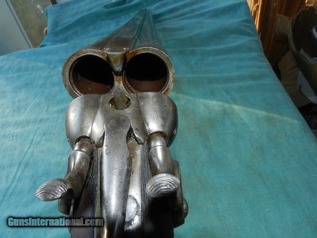 Description: Aacceprable. clean 12ga hammer double shotgun named : STANLEY ARMS Co. made in Belgium with Belgium Fine Laminated Steel Barrels as stated on the top rib, and they are 30" long with a front beass bead sight, and chambered for the 2 9/16" black powder shells. With chokes of Mod for the left tiube and IC for the right tube. Gun locks up tight and both hammers work well and match. The French walnut wood is very good with no issues other than a small chip at the pistol grip edge. LOP with a black hard rubber butt-plate is about 15". . The barrels now brown have freckling of corrosin from the chamber ends going forward typical of black powder guns , but acceptable. When buying a gun always have it examined by a competent gunsmith before shooting. To buy a gun from me you must get a direct email for me, with details, and shipping cost. We don’t have a web site .I prefer money orders or a check. Item ships when funds come in. I try to keep guns affordable, which means I make less money than most dealers. You won’t get altitude sickness, or nose bleed, with my prices! I consistently have the best selection of older guns If you attempt to buy, you must still contact us for details . Best to email to buy. Sometimes a local person can stop buy and purchase before the gun is removed. Sometimes not home to get calls. Some guns are required shipment to a gun dealer near you for a transfer to you when it arrives. Otherwise many older or black powder guns ship to your door. With the widest selection of older guns at great prices, We don’t have a store, and sell on the internet only. I’m easy to get along with. Thank You SOLD Shotgun Gauge: 12 Gauge |
