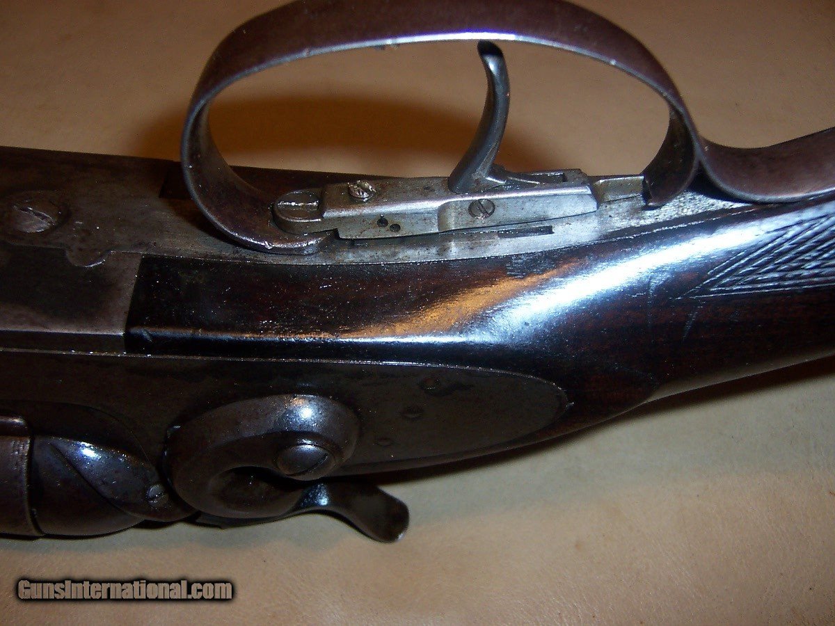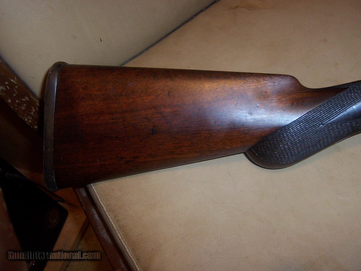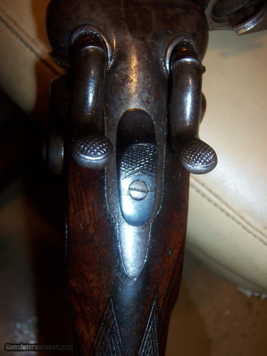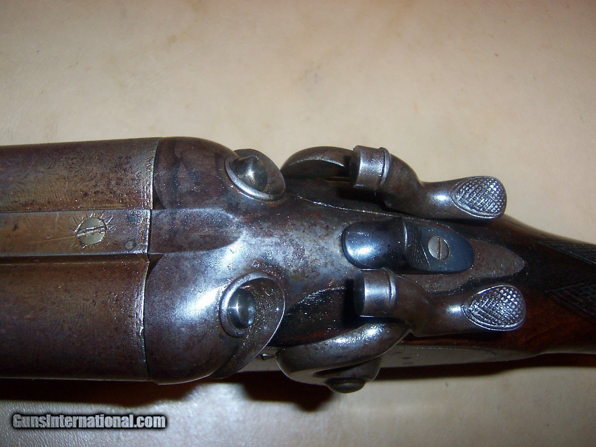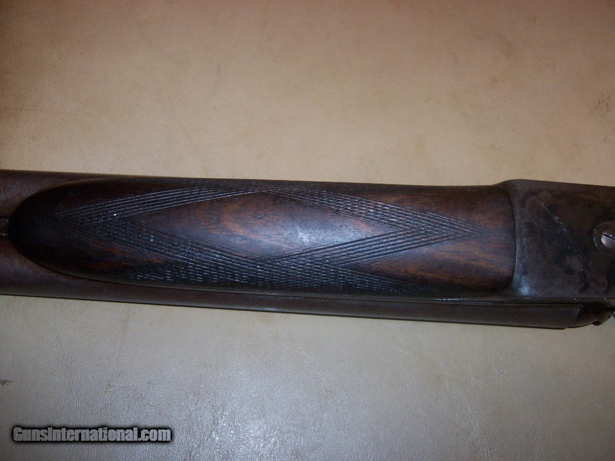 Description: 25 3/4 in 12 ga barrels probably shortened nice damascus pattern moderate pittying in bores locks work fine with a single selective;;; trigger move left and right'''''''' enclose is a picture of a broken spring and barrel locking pin the spring holds pin in position to lock and unlock barrels by pushing tab on top it the pin is held in gun by heavy grease AT THIS TIME ;; gun locks up tight but needs only new spring pictured installed you fix or show gun as is serial #2035 $49 sh ins marked on barrel american arms co boston antique'' co formed in 1853 by g h fox gun made in 1870s?????? looks like old original recoil pad '''''' picture #3 shows hole where pin goes which is now installed with heavy grease to keep pin from falling out dont point barrel down pin might fall out very strange selective trigger must be a new patent type used on this gun '''''''''' this is a complicated fix so no returns as gun works fine in dry fire and needs only the spring fixed nice stock with only normal wear all this is very complicated i am sure but gun works fine as is USE MAGNET TO PULL PIN OUT IF YOU NEED TO SEE IT BUT A WASTE OF TIME AND IF YOU CLOSE BARRELS WITH PIN OUT YOU WILL NEED TO REMOVE STOCK TO GET BARREL TO MOV E AND YOU SHOULD REPAIR SPRING IF YOU HAVE GONE THIS FAR SOLD Antique: Yes |