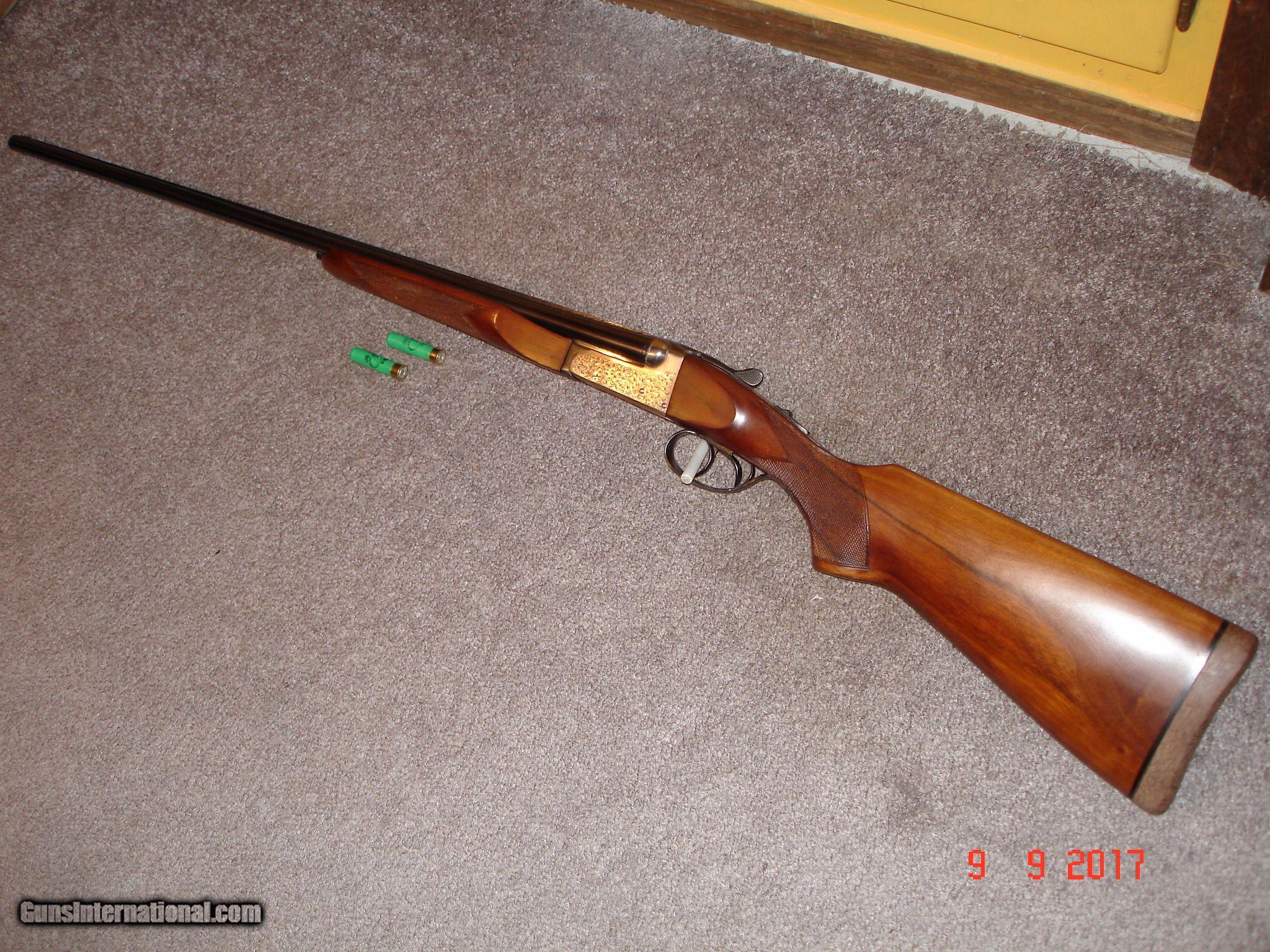 Description: Just in I have for sale a neat little Side by Side in .410Ga. This little gem is a Windsor Churchill I Model MFG in Spain, and was inported by Kassner several years ago. It is a very nice box lock, Excellent quality made double. 26' BBls. 3" chambers, Choked Mod/Full. Very nice Medium Grained Walnut, Checkered, with a Pistol Grip Butt stock and a small Beaver tail forearm.. Double Triggers, Extractor, Over length 43" LOP to Factory Pad is 14 1/2" to the front trigger Weight 6Lbs.12oz. Over all Mint Looks to have been fired very little if at all. Nice basic Hand cut engraving. A real Nice little well made double in a fun guage. SER#. 366317 Shipping and insurance to your FFL is $30.00 Ask about our Free Layaway's ! SOLD |