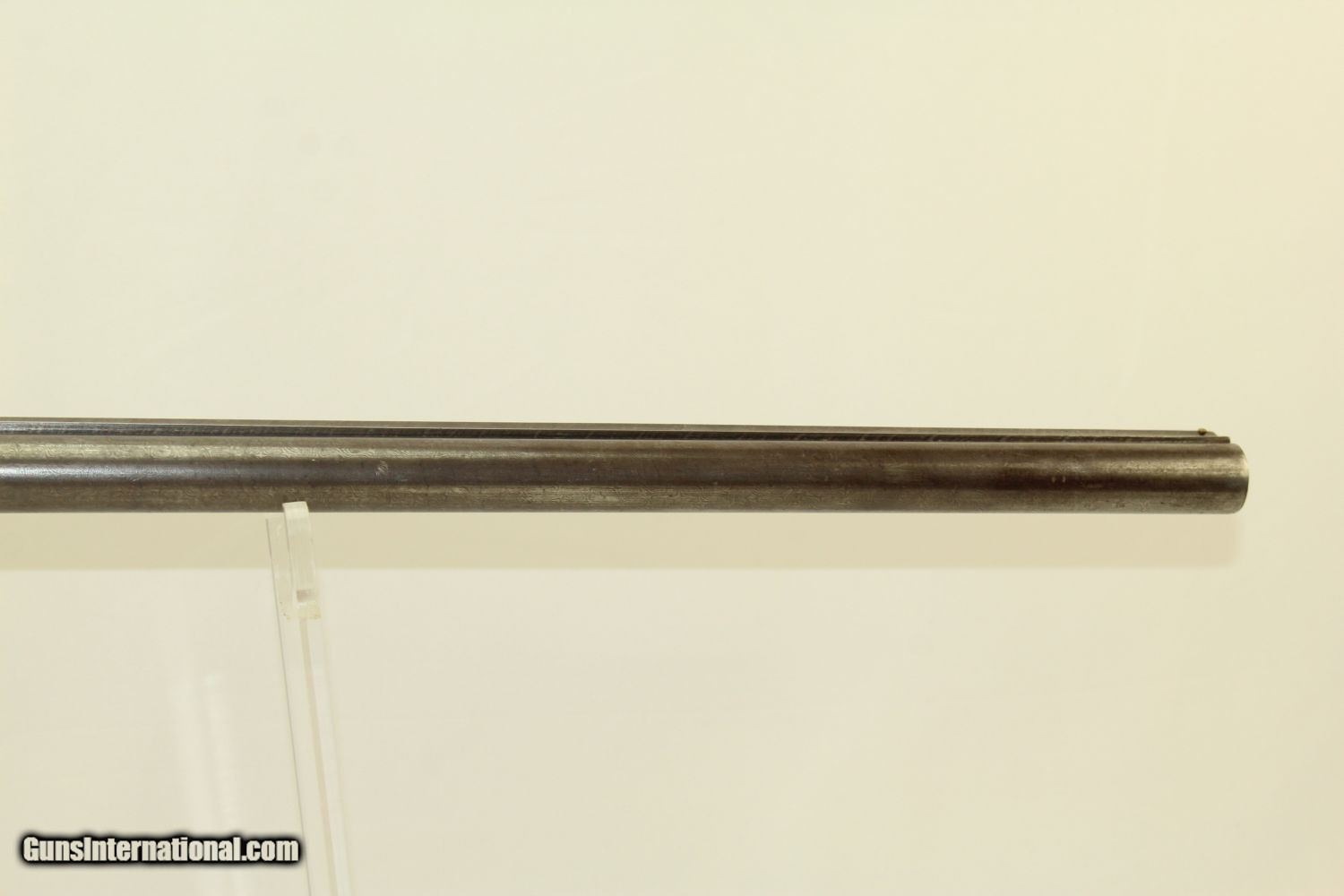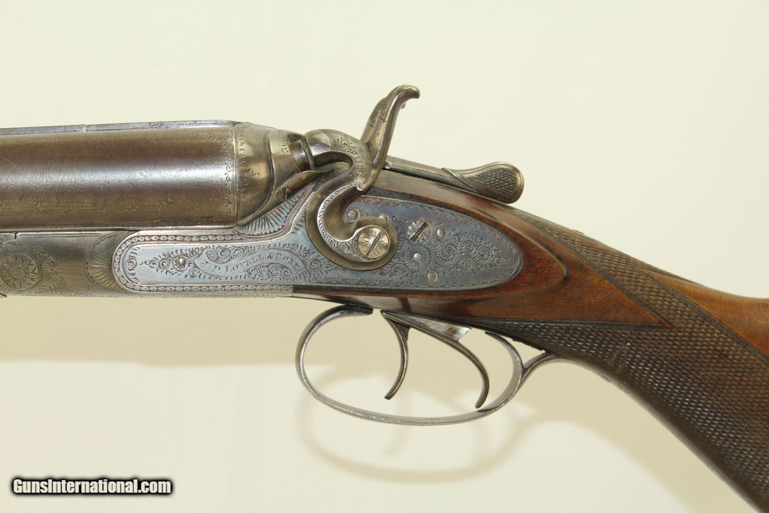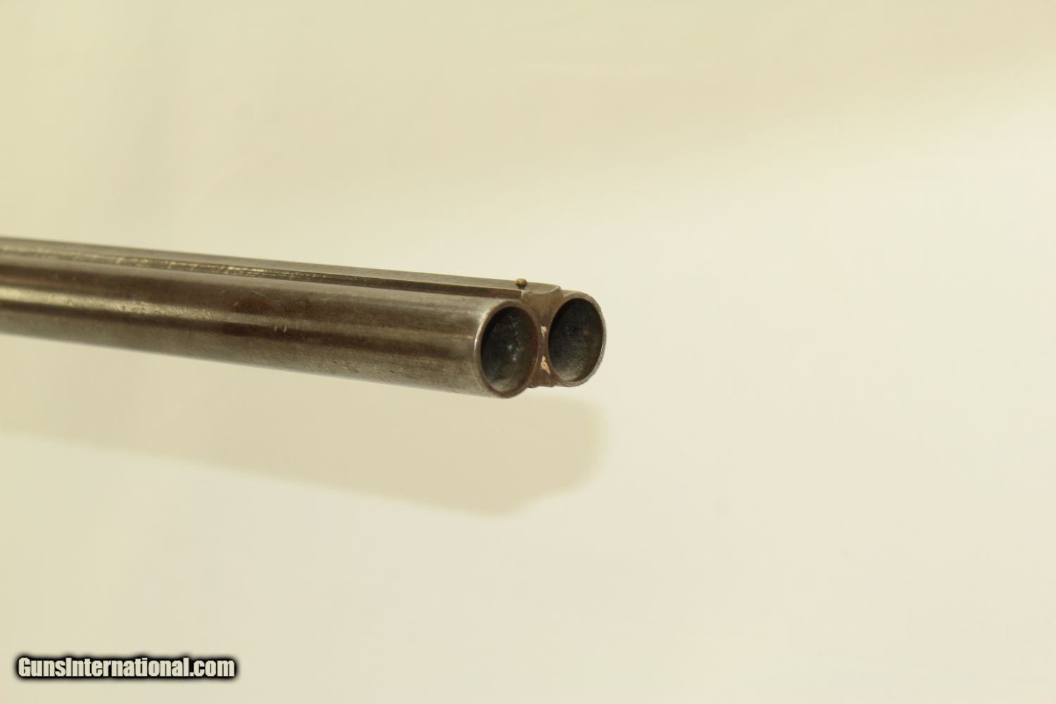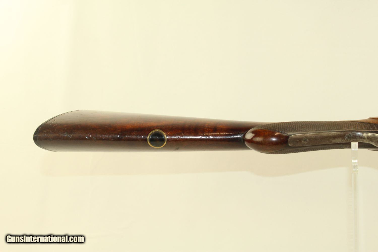 Description: Engraved, FINE DAMASCUS J.P. LOVELL & SONS SxS HAMMER Shotgun 1900 C&R Stately Engraved 12 Gauge Double Barrel Shotgun Here we present an antique John P. Lovell & Sons Double Barrel Side x Side Hammer Shotgun in 12 gauge, manufactured circa the 1870s in Birmingham, England. John P. Lovell Co. started his business in pre-Civil War days, circa 1840, primarily making shotguns and other sporting arms. By the time the Civil War ended, he became a retailer of sporting goods at large. By the 1890s, they had two stores in in Boston: one at 147 Washington Street and the other at 131 Broad Street. In 1900 the J.P. Lovell Company main store was sold to the Iver Johnson family and was renamed Iver Johnson Sporting Goods of Boston and continued operations into the 1950s. This double barrel shotgun is a thing of beauty. It bears the Lovell name but was made across the pond in Birmingham, England. And a good job the maker did, too. This double features Fine Damascus twist barrels in 12 gauge. Intricate engraving is found throughout on the frame, trigger guard, locks, etc. Horn butt plate and forearm tip. The forearm is removed with the push of an engraved button rather than the more common lever of the day. A true Old World, hand-crafted beauty! The overall condition is near fine. Good Damascene pattern on the barrels. Good case colors on the frame and lock plates. Very nice, clear engravings. The bores are mostly smooth and bright with light/minor surface pitting. Matching numbers. Strong actions. The only thing that can be improved upon is that the barrel latch spring needs a replacement. This is a looker of a shotgun! Own the original! This is a legitimate antique and not a reproduction. Barrels: 29-1/2 inches. Caliber: 12 Gauge Chambers: 2-3/4 inches Chokes: Modified/Modified Length of Pull: 14 inches Overall condition as seen in photos. Very Fast. Very Safe. FREE SHIPPING WORLDWIDE. Delivered directly to your door by express mail! Guaranteed AUTHENTIC & Includes CERTIFICATE OF AUTHENTICITY. ancestryguns $1650 #190995 SOLD Curio/Relic: Yes |