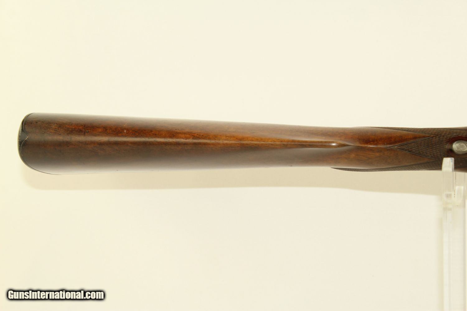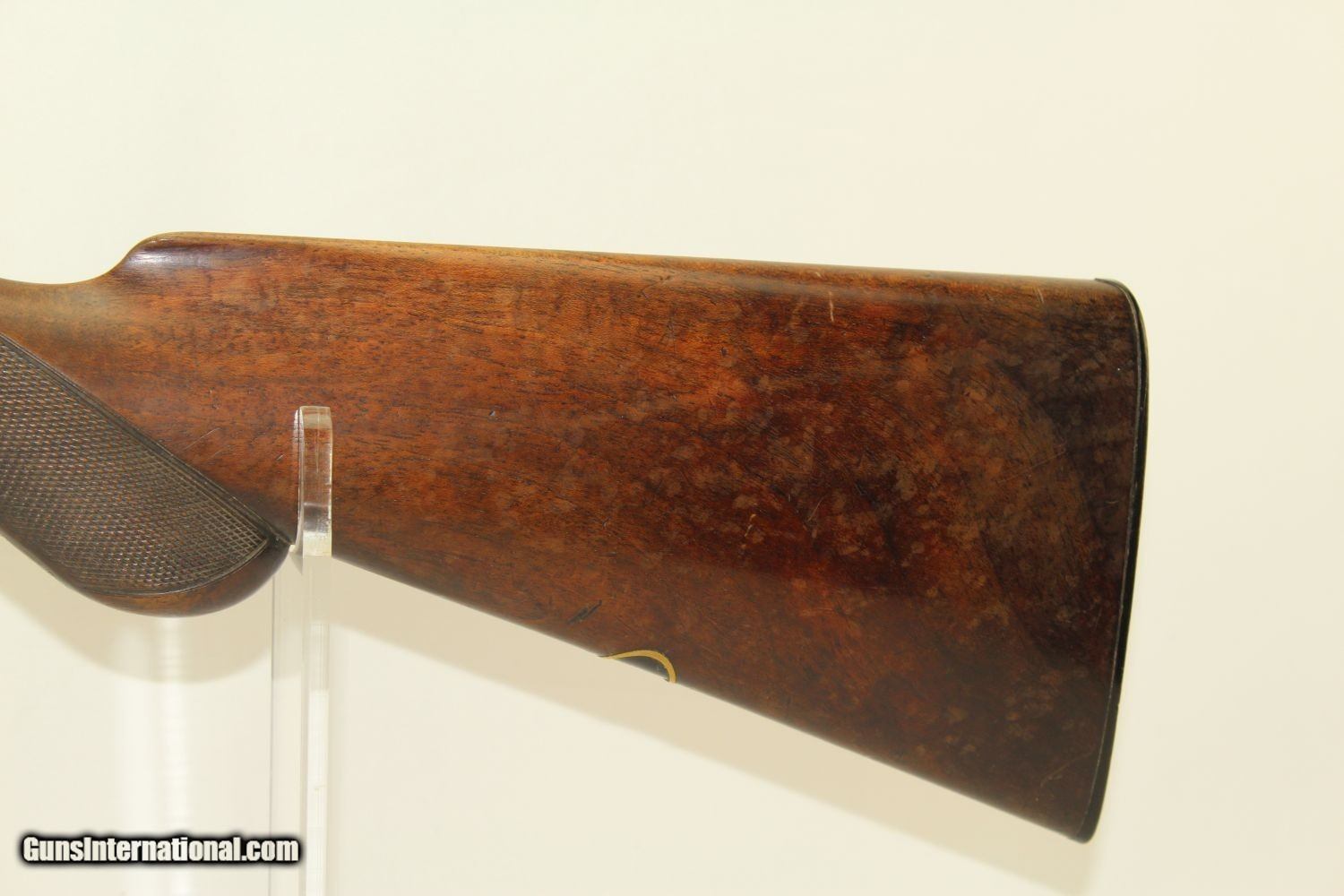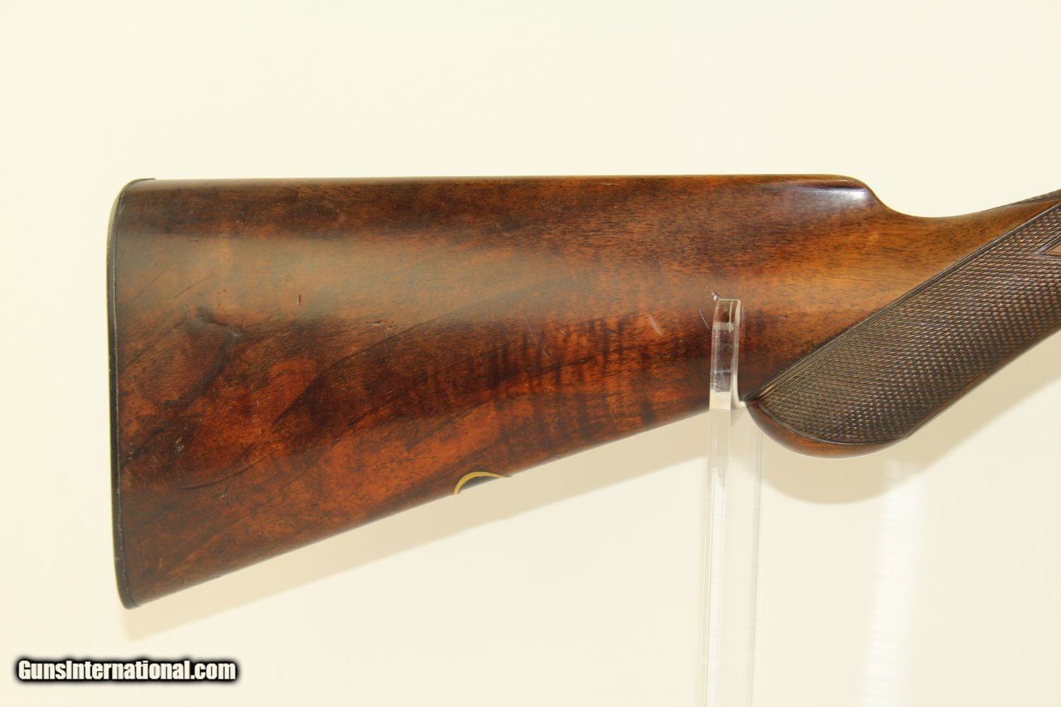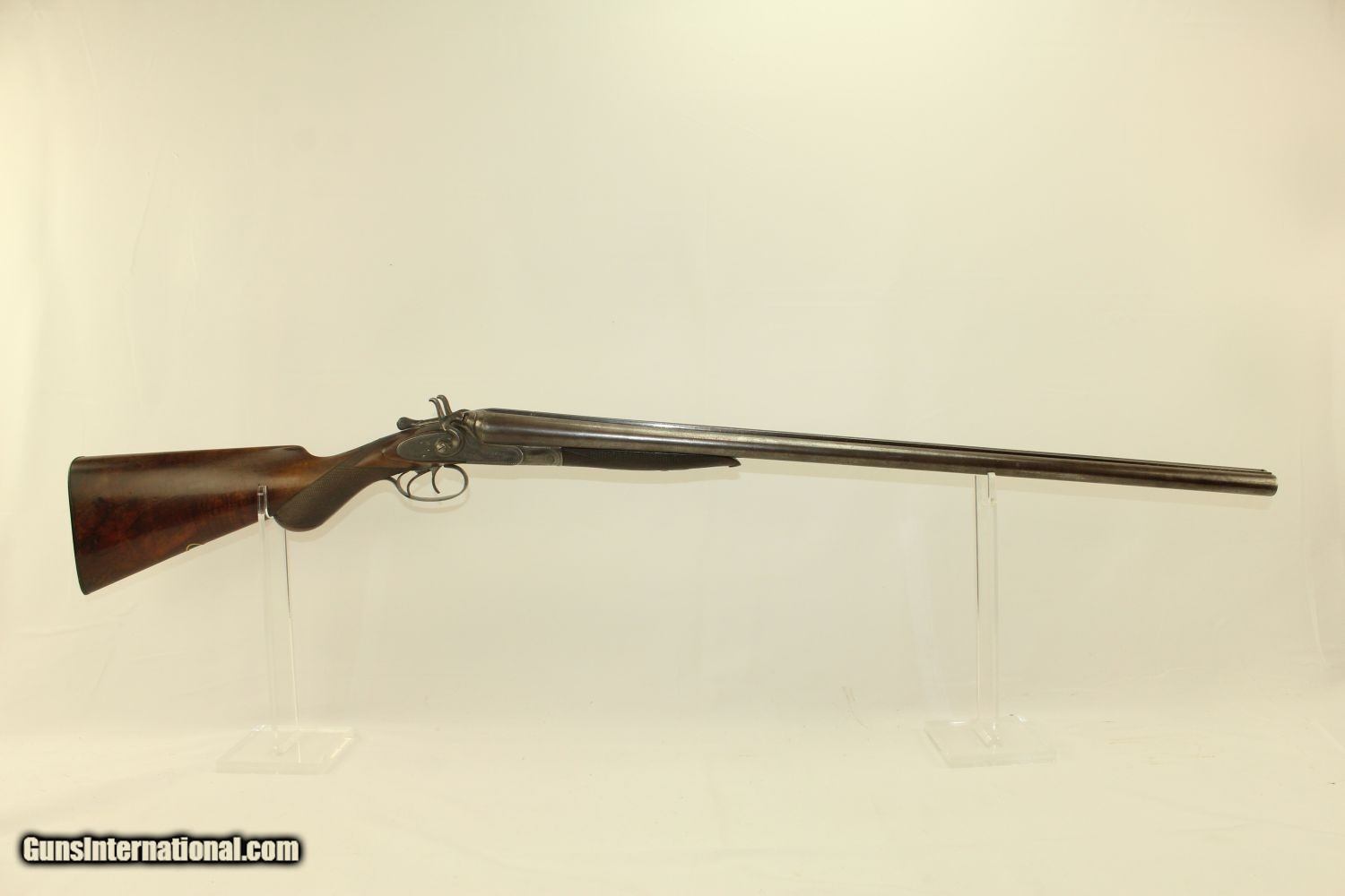 Description: Engraved, FINE DAMASCUS J.P. LOVELL & SONS SxS HAMMER Shotgun 1900 C&R Stately Engraved 12 Gauge Double Barrel Shotgun Here we present an antique John P. Lovell & Sons Double Barrel Side x Side Hammer Shotgun in 12 gauge, manufactured circa the 1870s in Birmingham, England. John P. Lovell Co. started his business in pre-Civil War days, circa 1840, primarily making shotguns and other sporting arms. By the time the Civil War ended, he became a retailer of sporting goods at large. By the 1890s, they had two stores in in Boston: one at 147 Washington Street and the other at 131 Broad Street. In 1900 the J.P. Lovell Company main store was sold to the Iver Johnson family and was renamed Iver Johnson Sporting Goods of Boston and continued operations into the 1950s. This double barrel shotgun is a thing of beauty. It bears the Lovell name but was made across the pond in Birmingham, England. And a good job the maker did, too. This double features Fine Damascus twist barrels in 12 gauge. Intricate engraving is found throughout on the frame, trigger guard, locks, etc. Horn butt plate and forearm tip. The forearm is removed with the push of an engraved button rather than the more common lever of the day. A true Old World, hand-crafted beauty! The overall condition is near fine. Good Damascene pattern on the barrels. Good case colors on the frame and lock plates. Very nice, clear engravings. The bores are mostly smooth and bright with light/minor surface pitting. Matching numbers. Strong actions. The only thing that can be improved upon is that the barrel latch spring needs a replacement. This is a looker of a shotgun! Own the original! This is a legitimate antique and not a reproduction. Barrels: 29-1/2 inches. Caliber: 12 Gauge Chambers: 2-3/4 inches Chokes: Modified/Modified Length of Pull: 14 inches Overall condition as seen in photos. Very Fast. Very Safe. FREE SHIPPING WORLDWIDE. Delivered directly to your door by express mail! Guaranteed AUTHENTIC & Includes CERTIFICATE OF AUTHENTICITY. ancestryguns $1650 #190995 SOLD Curio/Relic: Yes |