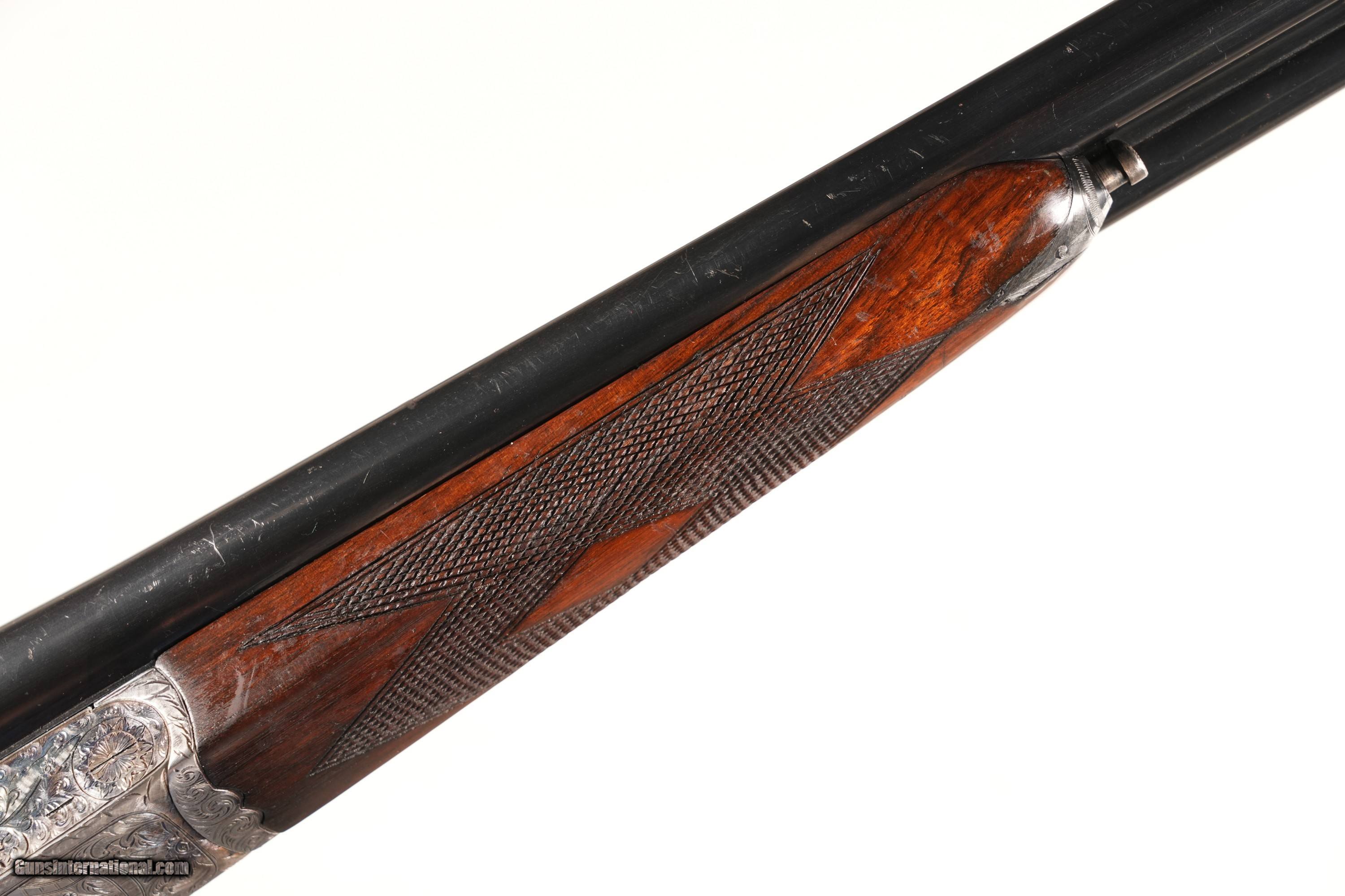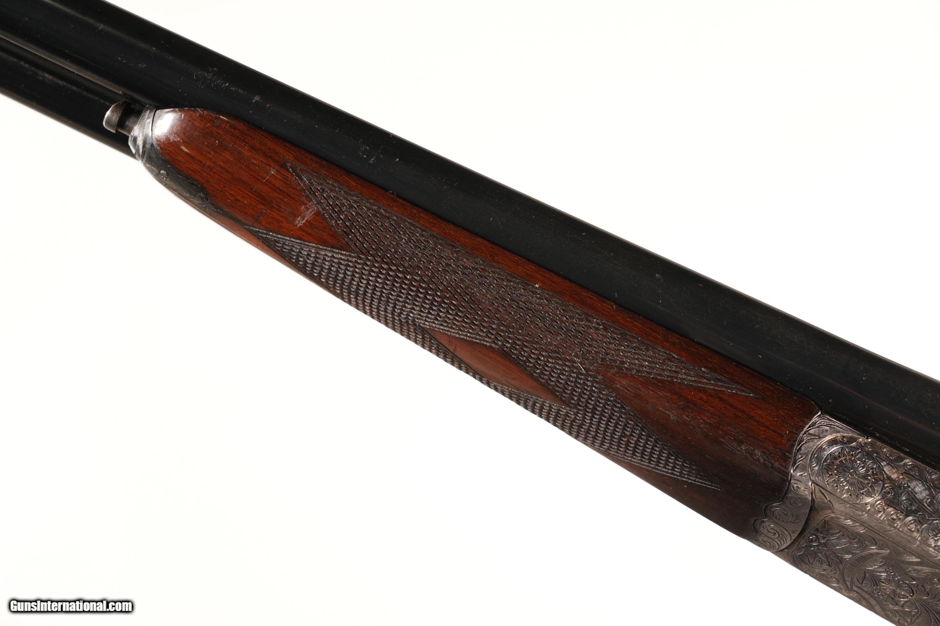 This example is in Very Good overall condition, with pristine metal surfaces showcasing the scroll and floral engraved boxlock receiver for refined artistry. The 27" barrels, choked Improved Cylinder in both, are ideal for close-range targets (15–25 yards), perfect for quail or skeet. The rib marked “Sable Deluxe” adds provenance, and the single bead sight ensures precise alignment. The checkered walnut pistol-grip stock, with a blank oval in the toe line, shows minimal handling marks, providing a secure, elegant grip. Stock dimensions—LOP of 14 3/4"—should be verified for DAC, DAH, and cast (typically neutral or slight cast-off). The double triggers, tang safety, and automatic ejectors operate flawlessly, with a tight lockup reflecting robust Spanish construction for Gunmark. Don’t miss this Gunmark Sable Deluxe—a stunning 12 Gauge side-by-side in Near Excellent condition, perfect for upland hunters or clay shooters. Click “Buy It Now” or call 478-337-1000 to claim this fine shotgun today! Purchase Details: