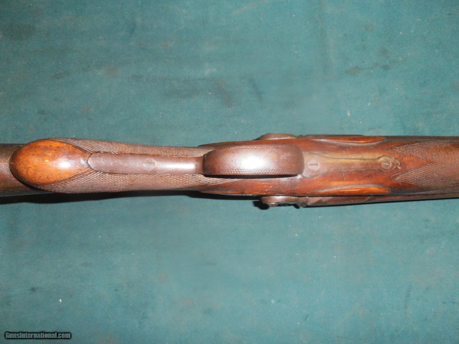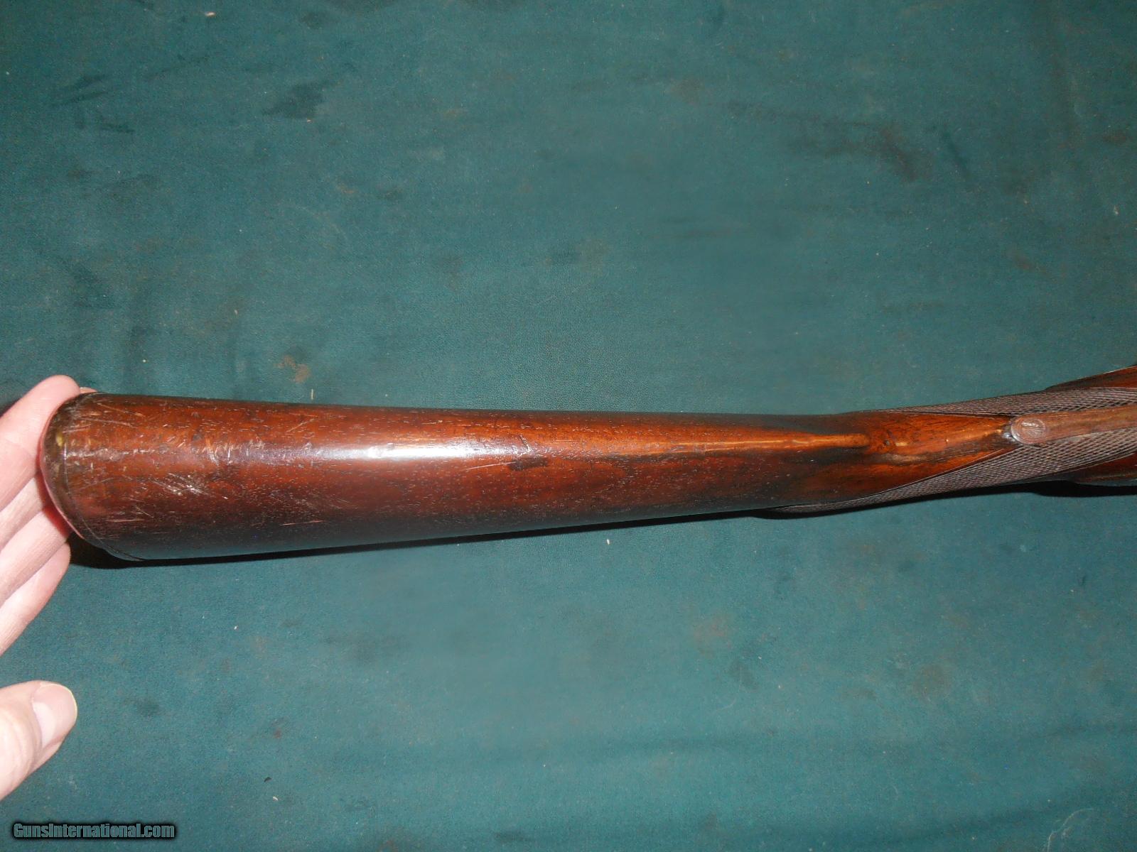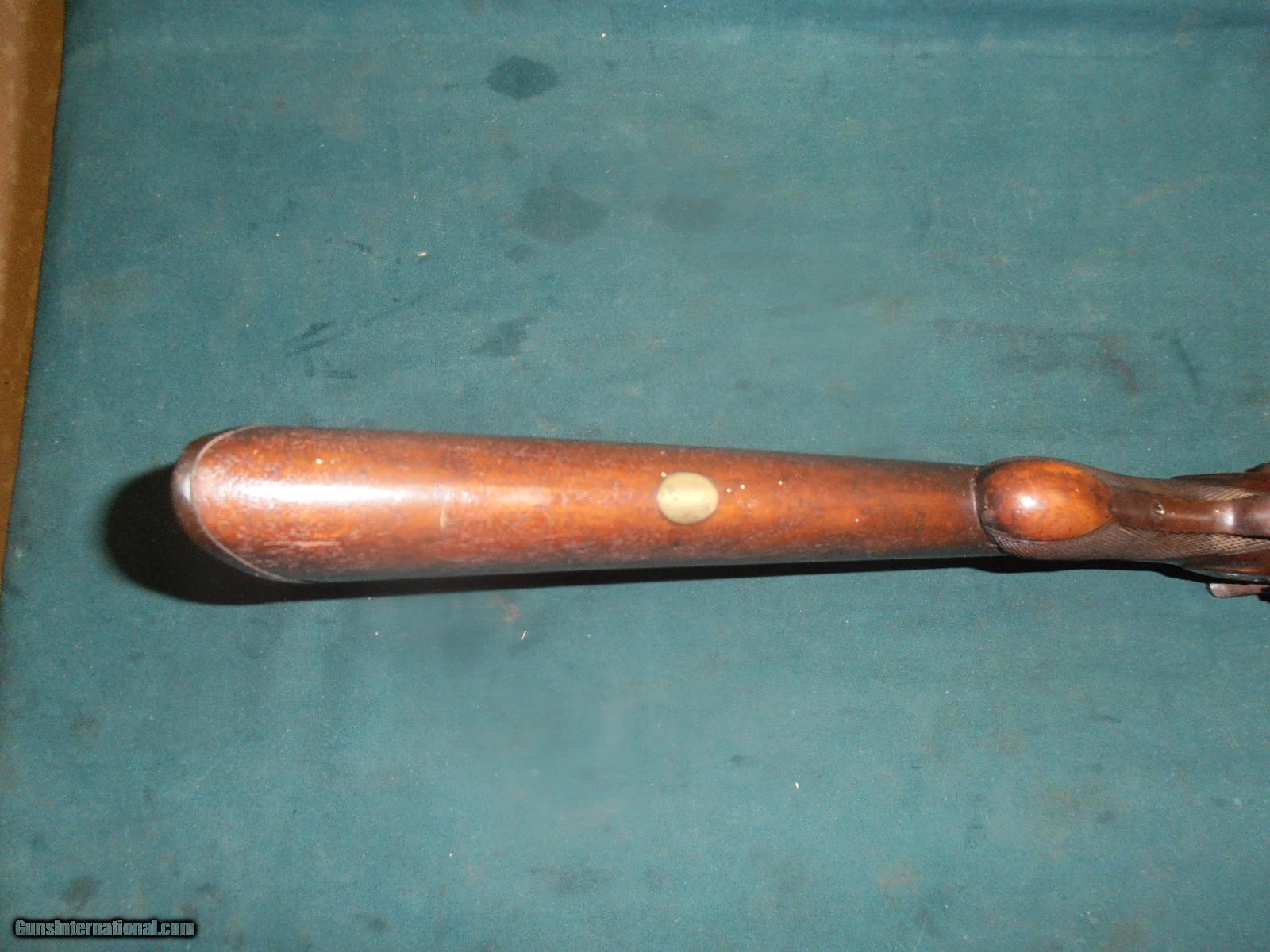 Description: J. N. Scotts side by side hammer gun, muzzle load black powder. Email me if you would like these pics sent to you, they will come through bigger and better than on the listing page here. Email me with any Beretta, Benelli, Sako, Franchi, Stoeger, or Uberti needs. Email me with any questions. I am a store front dealer, and I will close s if the gun sells locally. Once ahas reached my reserve, I will pull it from my shelves. Please check your local laws to confirm it is legal to own in your state! Buyer pays $25 shipping and insurance to your FFL, in the lower 48. AK, HI or PR is extra. I will ship to California, NO PROBLEM! All my guns come with a non firing, 3 day unconditional return privilege, from the day UPS delivers to your dealer. Buyer pays shipping both ways if the gun comes back. I can add a new hard case by PLANO for secure shipping for $25 if the buyer wishes (highly recommended, cheap insurance, really helps keep the UPS monster from eating my guns!). No sales tax on guns ship out of Kansas, guns sold in Kansas are subject to Kansas sales tax. I am a licensed FFL, and will include a copy of my FFL with the gun for your dealers records. I will ship to a C&R if the gun is eligible (you look it up!). I will ship to California, but you need to confirm the gun is legal where you are, California or other. I am always looking for good clean, old original Winchesters to buy, consign, or trade, especially pre '64's model 70's and model 54's. WE ALSO TRADE FOR CLASSIC CARS AND TRUCKS! I will leave feedback as soon as the buyer leaves feedback on me. Email me with any questions, and good luck! SOLD Antique: Yes |