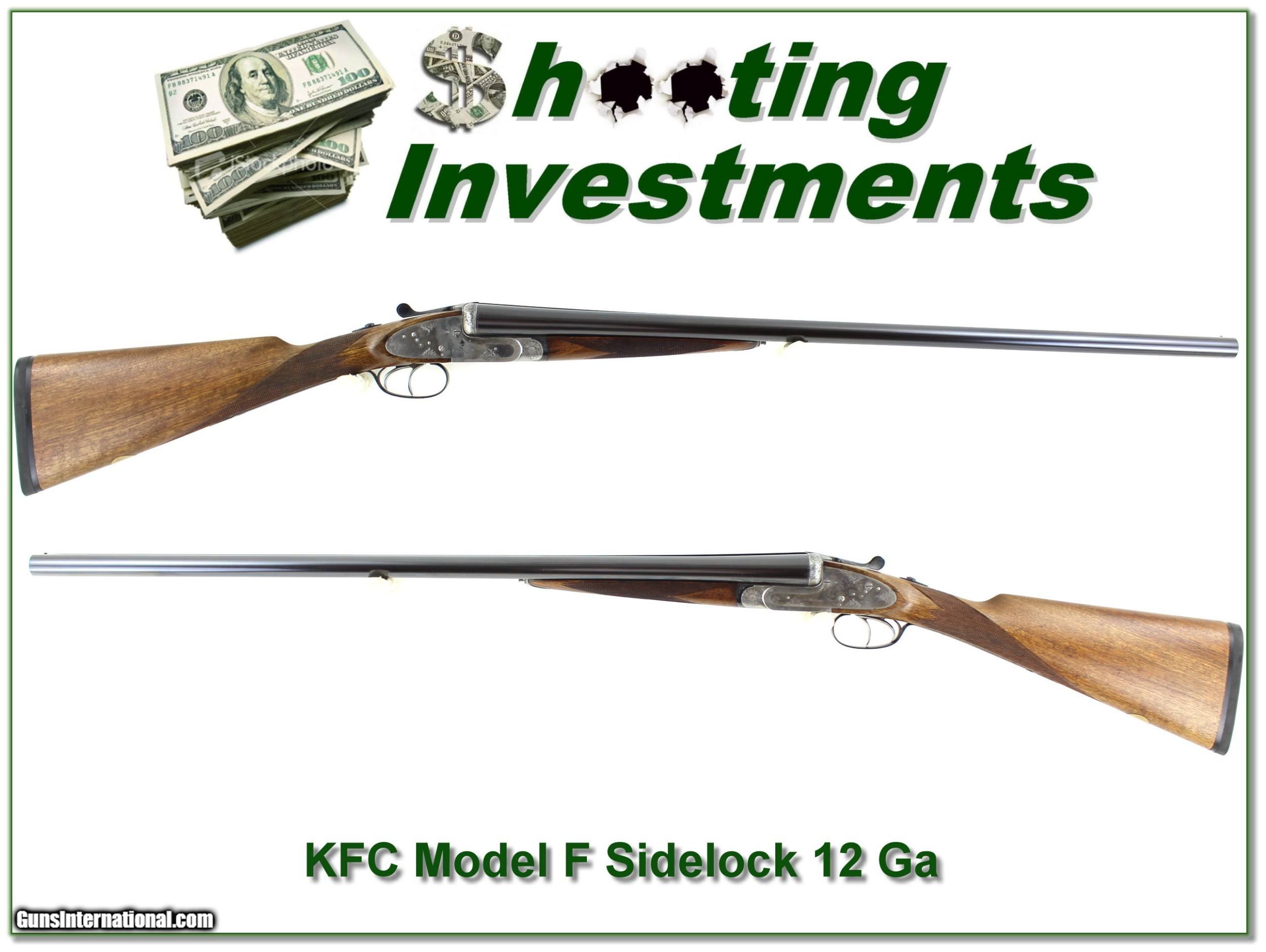 Description: This is an excellent condition KFC Model F. These are the same a Browning’s Sidelock only priced less than half. This one locks up tight as new and has Full and IC. It has a 14.25in LOP to front trigger. I find no marks of note. I am selling this one on consignment and as such lay-a-way can’t be used. It does of course have the standard 3-day inspection. Shipping and insurance is $49. Please email me with any questions or larger pictures. (Consign your quality firearms with Shooting Investments for only 12%! Let me know if you have any you would like to sell!) 20-0626 Payment: Payment is by Money Order, Cashiers Check or Personal Check. I can now also accept Credit Cards (MasterCard, Visa, Discover & American Express) with a 3% convenience fee. Shipping: The shipping charge will be listed in each description. It is $39 for most firearms. Some heavy guns or those insured for over $2000 will be higher. Shipments to Alaska and Hawaii are higher because air shipment is required. Most firearms are shipped on Tuesday and Thursday and usually in 5 days of receipt of payment. We package all shipments carefully and insure them. Optics are shipped Priority Mail and most other non-firearm shipments are shipped First Class. Returns: Our return policy is simple. If for any reason you are not pleased with your purchase, you may return your item for a full refund of purchase price. Ammunition cannot be returned. It is important to us that you are happy. Guns cannot be fired or dissembled before returning them and they must be returned in the same condition as received. Notification of a return must occur with-in 3 days of receipt at your dealer. Shipping, convenience and dealer fees are not refundable and are the responsibility of the buyer. Lay-a-way: If needed, we offer a 60 day lay-a-way option on most firearms. It is 1/3 now, 1/3 in 30 days and 1/3 in 60 days. Lay-a-way firearm sales are final and if not completed the first payment cannot be returned. Consigning your firearms with Shooting Investments: We will help you get top dollar for your firearms. While most local guns shops charge 20% or more, our fee is only 12% with a minimum of $75. At your local gun shop it might take months to sell. Selling on-line provides instant access to thousands of interested buyers. You won’t find any other on-line dealer willing to sell your firearms for only 12% or listing every gun on 3 separate s. Selling through an House typically costs the seller 15% and the buyer an addition 15% (so 30%) and you have to wait several months to sell and longer to receive funds. If properly priced, we will sell your firearms in a few weeks. Send us an email or give us a call and we’ll explain how easy it is for you to get top dollar. Trading: Trading for use is really just buying your gun to re-sell. If you have a gun you want to trade, please email a picture and we will let you know what we can give or it. You will always get more if we sell it for you on consignment. Help for California Buyers: We are happy to ship to California. It is the buyer’s responsibility to make sure any item you buy is legal in your state. We are also happy to help with your purchase of a firearm from someone other than us. If you see a gun you would like to buy but the seller can’t or won’t ship to California they can ship to use and we’ll then ship it to your California dealer. The cost for this service is only $30 + shipping. Let us know if we can help! SOLD |