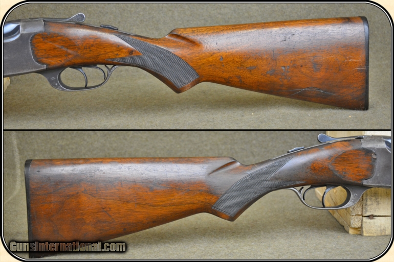 Description: Model: 103-5 Serial Number: R6179 Year of Manufacture: Ca. 1937 thru 1945 Caliber: 12 guage Action Type: Over and under Markings: The top of the barrel is marked “Ranger Over and Under 12 Guage Model 103-5-”. On the underside in front of the trigger guard is marked "R6179”. Barrel Length: 30” Sights / Optics:Rib with abead front sight Stock Configuration & Condition: The stocks show minimal wear, with small nicks and dings. Small crack in stock. (See pictures) Otherwise in very good condition Type of Finish: Blue Finish Originality: as issued Bore Condition: excellent and choked full and modified. Overall Condition: The markings are clear. Overall, this shotgun rates in about Very Good condition. Mechanics: perfect Box, Paperwork & Accessories: None Our Assessment: THIS IS A MODEL 90 12 Gauge, MANUFACTURED FOR SEARS PRIOR TO 1945 AS, SEARS MODEL, RANGER 103-5, DOUBLE TRIGGER, 26 INCH BARREL, DOES HAVE SOME SLIGHT PITTING IN FRONT OF HAND GUARD, SEE PICTURE 7,CHOKES ARE NOT MARKED, BORES FINE WITH NO RUST OR PITTING, GUN OVER ALL IS TIGHT,WOOD IS ALL SOLID WALNUT, CHECKERED STOCK AND FOREARM, NO CRACKS,SPLITS OR DENTS, THERE IS ONE SLIGHT SCRATCH ON THE LEFT SIDE OF THE STOCK, DOES NOT SHOW IN THE PICTURES, NOTE RECOIL PAD IN PICTURE 4, LOOKS LIKE THE GUN HAD BEEN STORED STANDING ON THE CORNER OF THE RECOIL PAD FOR A PERIOD OF TIME, BLUING 95%, PLUS, OVER ALL CONDITION VERY GOOD TO FINE. Ship to your FFL. or C&R May order at riverjunction on-line with credit cards or PayPal SOLD Curio/Relic: Yes |
