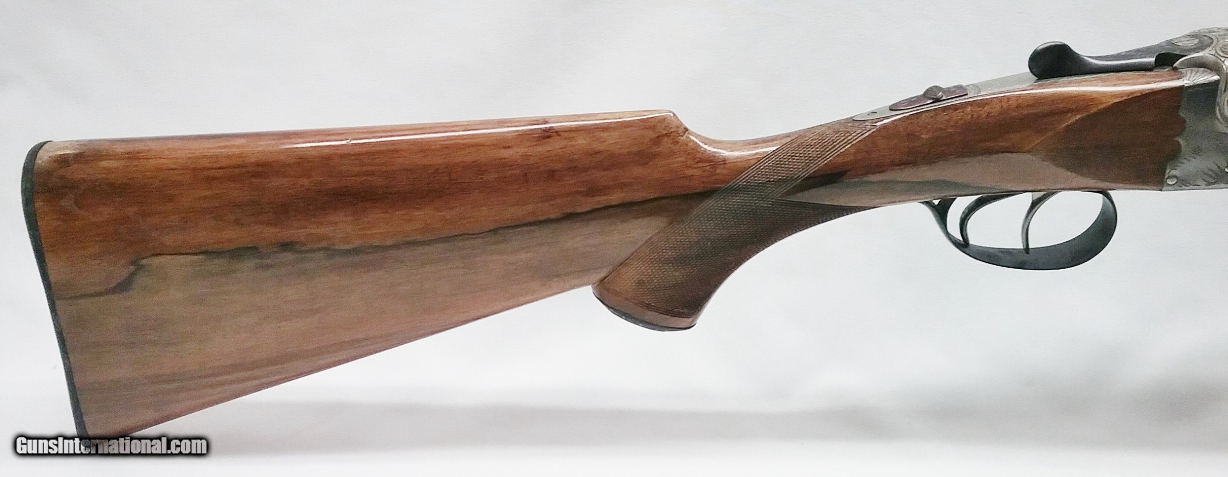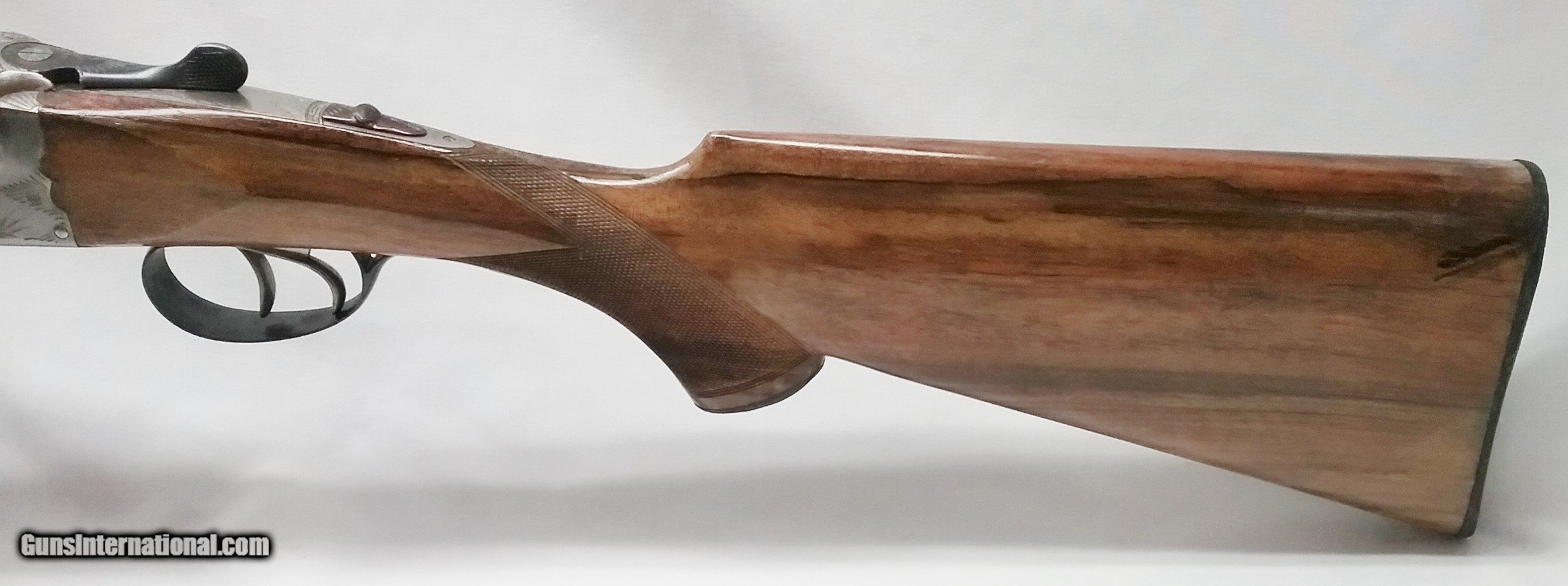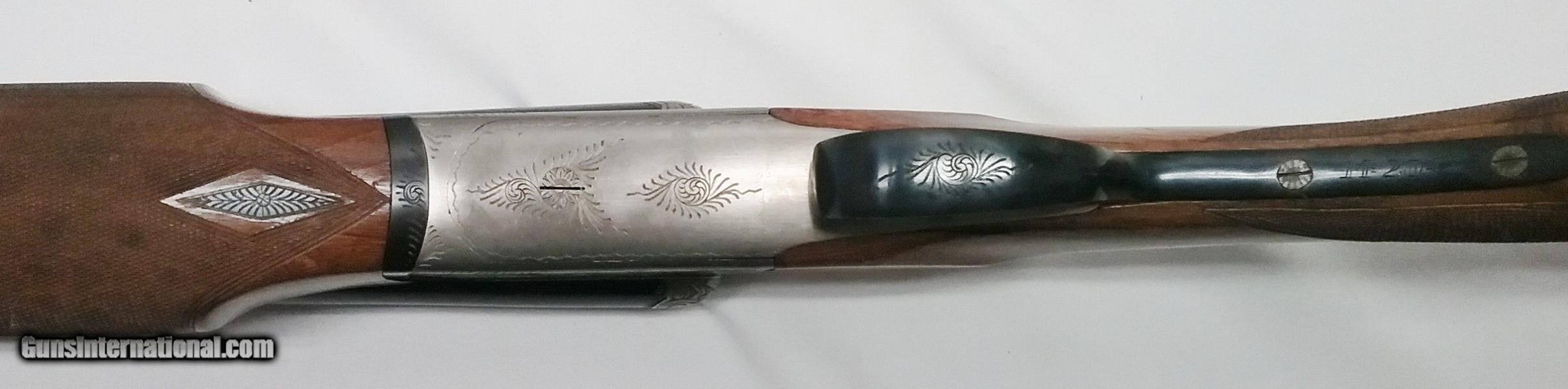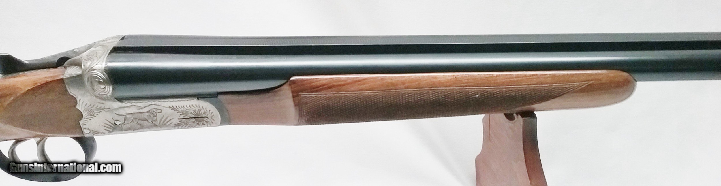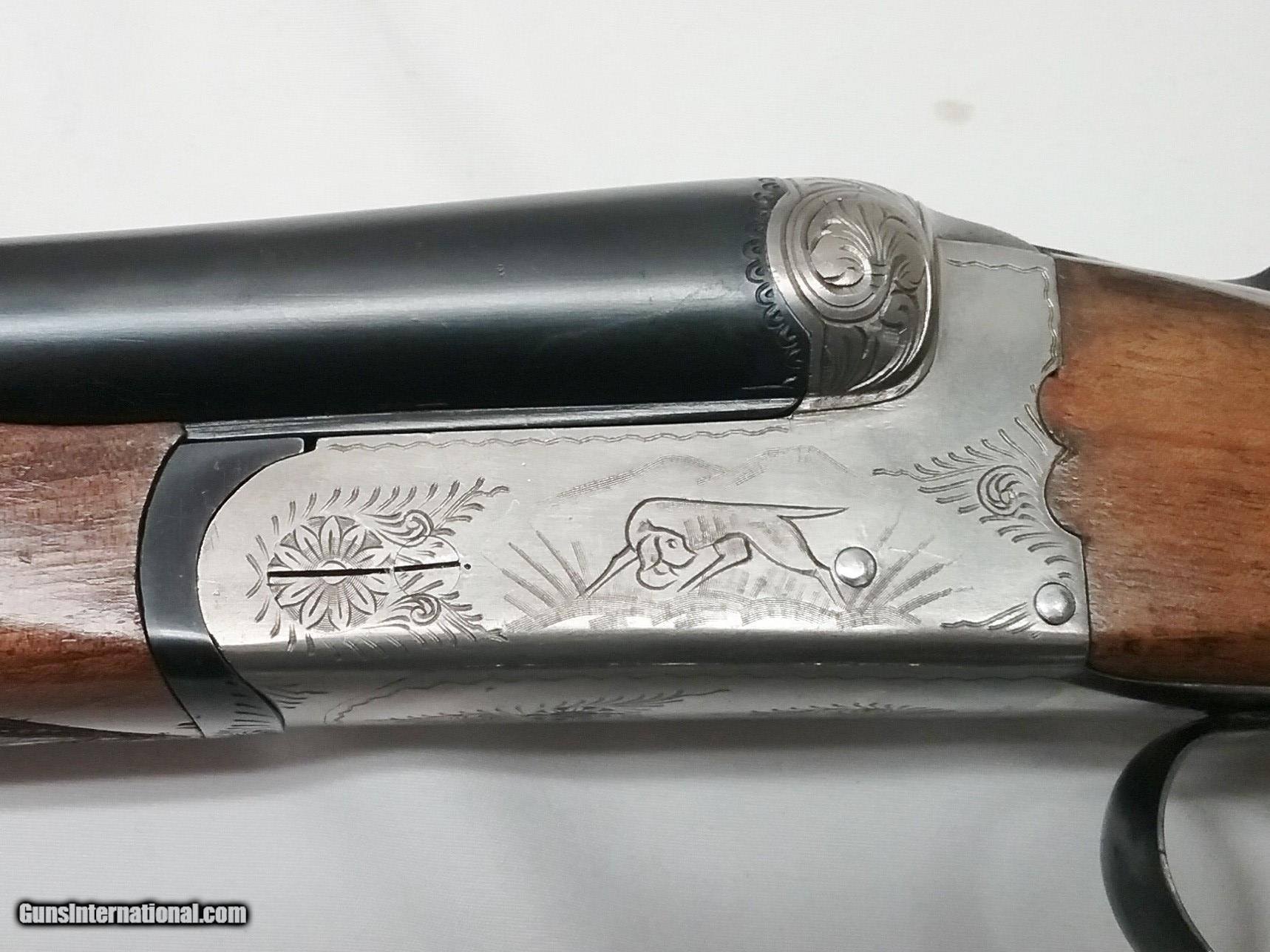 Description: C323 Union Armera – M204 - DBl Barrel – 20 ga - Stk #C323 This double barrel shot gun is made by Union Armera and is chambered for the 20 gauge shells. The (2) 27-3/4” blued tapered smooth bore round barrels are in very good condition with clean, shiny bores. Chokes are right improved modified and left full. There is a front fixed bead mounted to the matted rib. The polished steel receiver is in very good condition and has a tasteful engraving of a hunting dog on each side with scroll work on top. The hand checkered select hardwood butt stock and forend are in very good condition with a textured synthetic butt plate. Length of pull is 14-1/2 – 13-3/4”. Overall length is 44-3/4”. Weight is 5.4 lbs. Our stock number is # C323. Will ship to any FFL in the United States, buyer pays freight and insurance. SOLD Shotgun Gauge: 20 Gauge Manufacturer: Union Armera Model: M204 Bore: Smooth Chambers: 2 Condition: Very Good Metal Condition: Very Good Wood Condition: Very Good Bore Condition: Very Good Barrels: Two Barrel Type: Tapered Round Action: Break Open Triggers: 2 Stock: Select Hardwood LOP: 14-1/2 in Weight: 5.4 lbs. Sights: Bead Choke Left: Full Choke Right: Imp Modified Item Location: OR - Oregon |