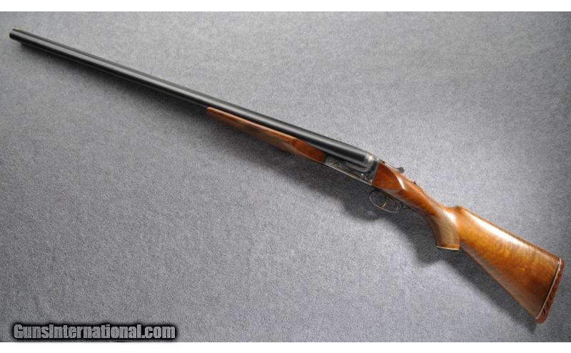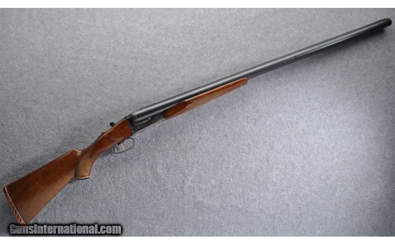 Description: Made in Spain SOLD Caliber Info: 10 Gauge Chambers: 3 1/2 Metal Condition: Good with a few light marks, engraved receiver and top tang Wood Condition: Good showing light dents and scratches Bore Condition: Good with some moderate streaking should be easily removed Barrels: 32" Solid Rib with Anson style release and top tang safety Triggers: Double Stock: Checkered pistol grip Fore End: Checkered beavertail Butt Pad: Vented Rubber not in the best condition. Crushed from standing upright and bearing the weight of the gun Weight: 12 lbs 8 oz Sights: White front and mid beads Chokes: Fixed Full & Full Item Location: Grand Junction, CO |