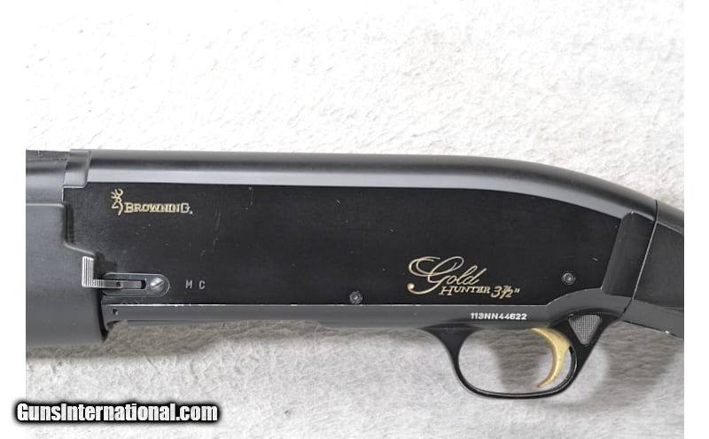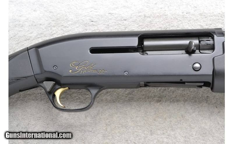 This Browning Model Gold Hunter is a right-hand semi auto shotgun in 12 Gauge. It has a 28-inch ventilated rib barrel with a white bead front sight and integral notch rear channel sight. Chambered for 3.5" inch shells, it has a Modified choke tube and uses the Browning Invector Plus choke system. The forearm is checkered black polymer with finger grooves. The buttstock is a checkered grip black polymer pistol grip with a black rubber Browning buttpad. Made in Belgium, Assembled in Portugal. 12 Gauge 12 Gauge