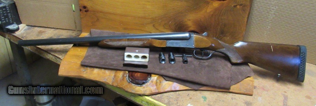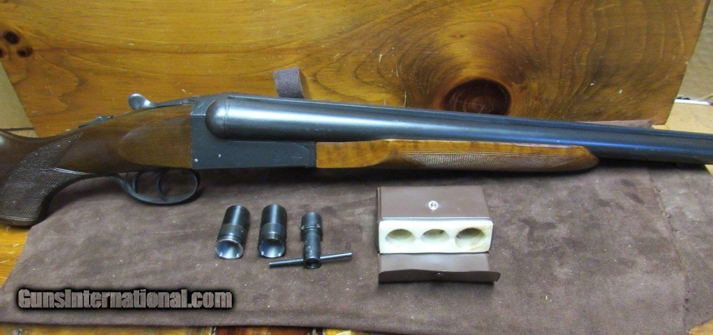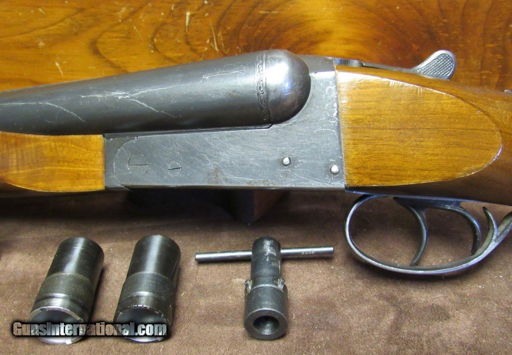 Description: Here is a !0 gauge side by side double barrel shotgun with choke tubes:two full choke one each ic and mod.Double trigger for instant choke selection,extractor,26 inch barrels.Stock measurements 141/2x 1 1/2 x21/2 LOP,DAC,DAH. 101/2 lbs with sling swivel studs and recoil pad. No rust mechanics are perfect as are bores,lever right of center. The gun has been hunted so there are light surfaces on receiver and ballels No cracks or splits to the wood but one scratch on left side of stock as seen in picture.Small dings to right side and comb are probably closet damage. Cut checkering. Very attractively priced at 800.00 plus actual shipping to a FFL dealer. Dealer must be able to accept shipment from me accompanied by a copy of my driver,s license along with details of sale. Please ask if you have any questions. Priced at $ SALE PENDING SOLD Manufacturer: Kassnar by Churchill Model: Windsor1 Serial Number: 374391 Barrel Length: 26 inches Bore: 10 Chambers: 31/2 Ejectors: no Condition: very good Metal Condition: very good Wood Condition: very good Bore Condition: excellent Barrels: 26 inch Barrel Type: sxs Action: box Triggers: double Stock: pistol grip Stock Comb: 1 1/2 Stock Heel: 2 1/2 Stock Cast: neutral Fore End: beaver tail Butt Pad: rubber LOP: 14 1/2 Rib: standard Finish: matte Weight: 10 1/2 lbs Sights: single bead Manufacture Date: 1985 approx Chokes: screw in 2-f 1 mod 1 ic Engraving: border at breech |