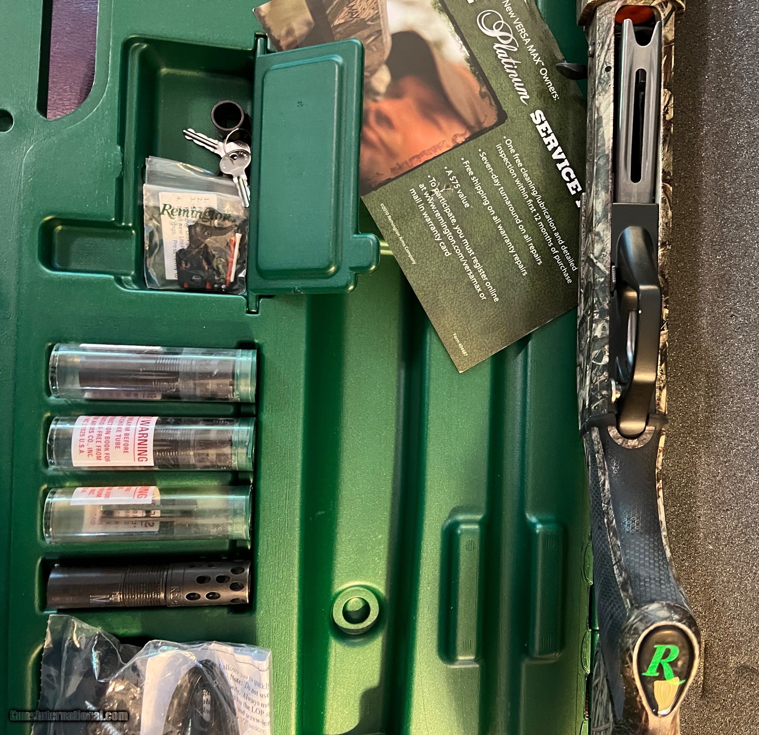 Description: For sale is the Remington Versamax named for versatility. It’s owner will enjoy doves, pheasant, duck, goose, and turkey. Gas operated to soften the recoil. Will Never disappoint! Simplicity in operation and functionality. Bore is shiny, exterior camo is unscrached, overall 98%. Has never seen salt. Comes in original Remington case all chokes, paper work many extras. SOLD Shotgun Gauge: 12 Gauge |