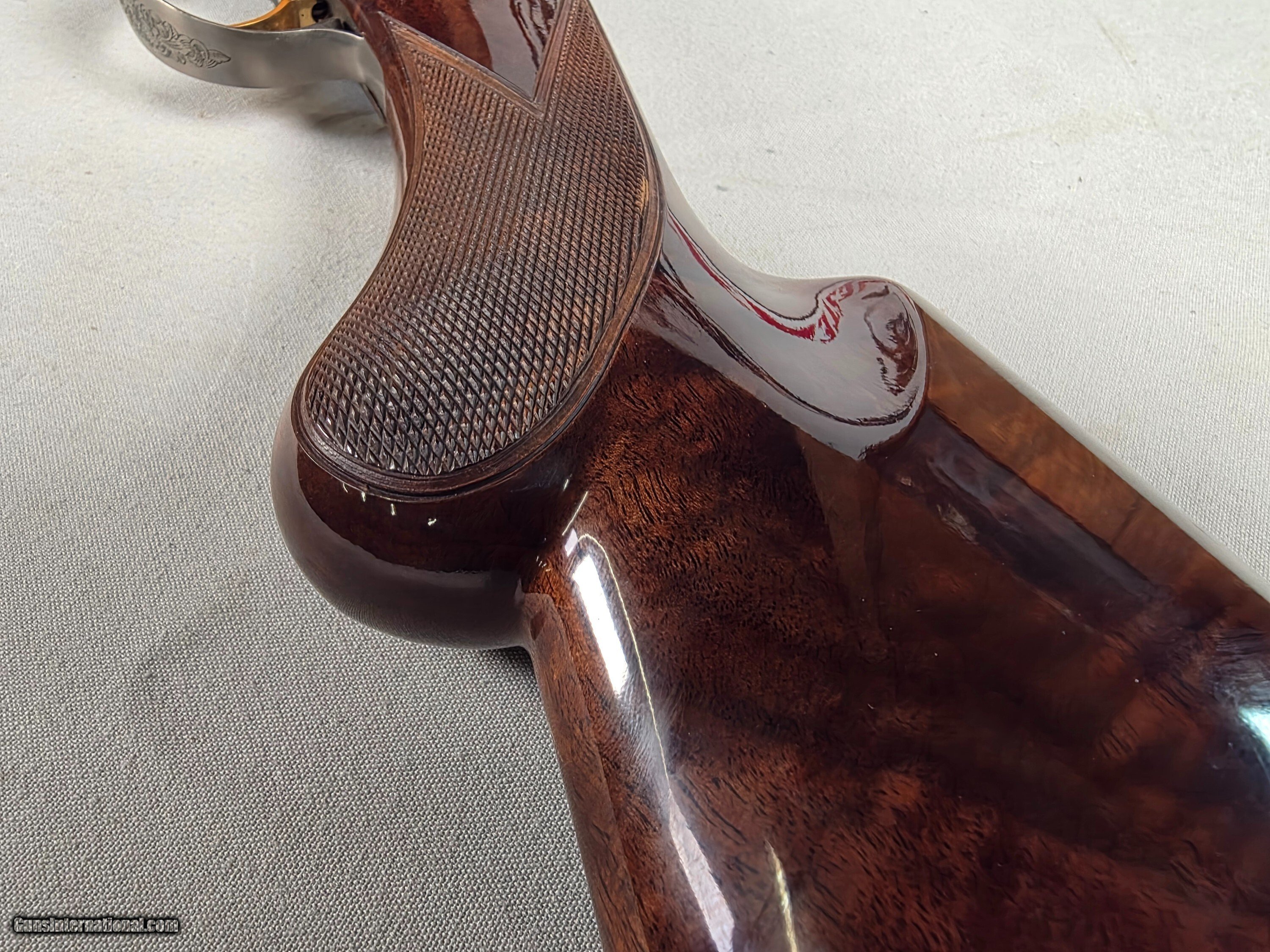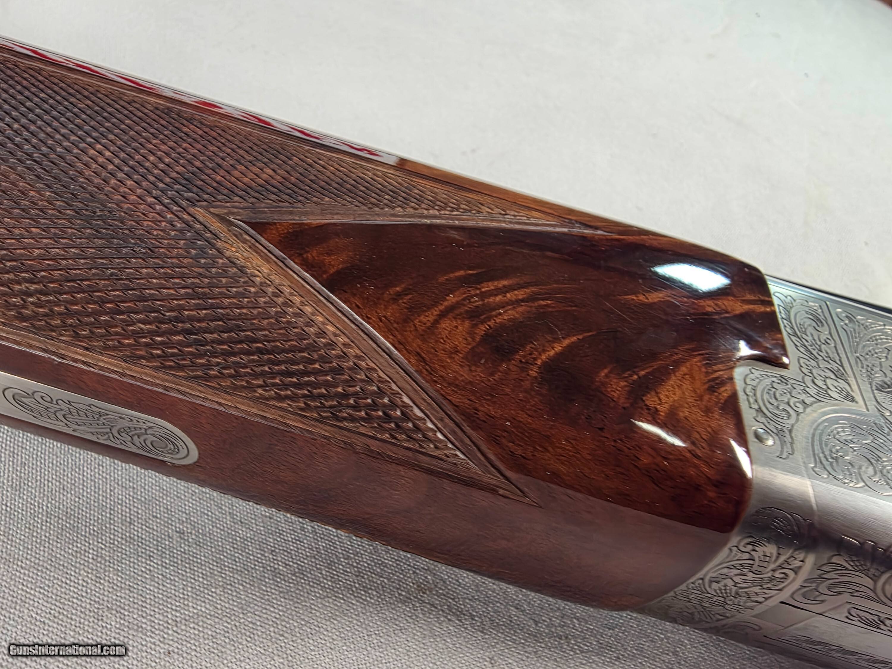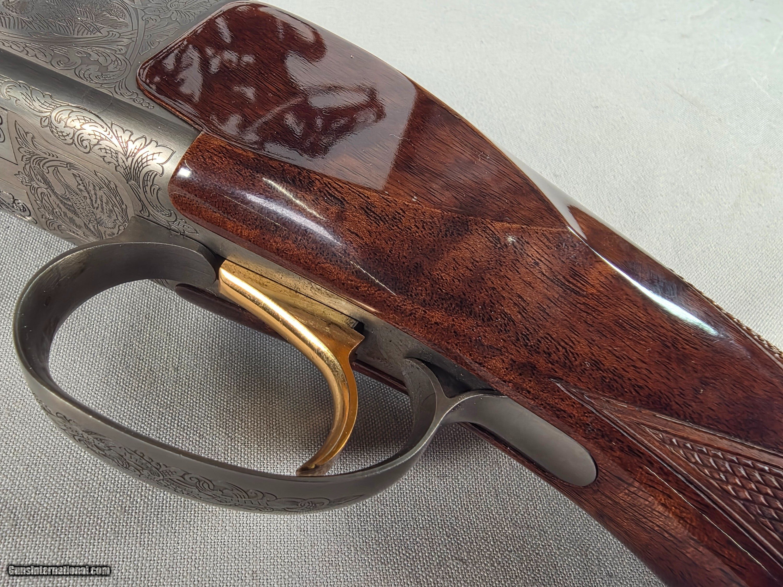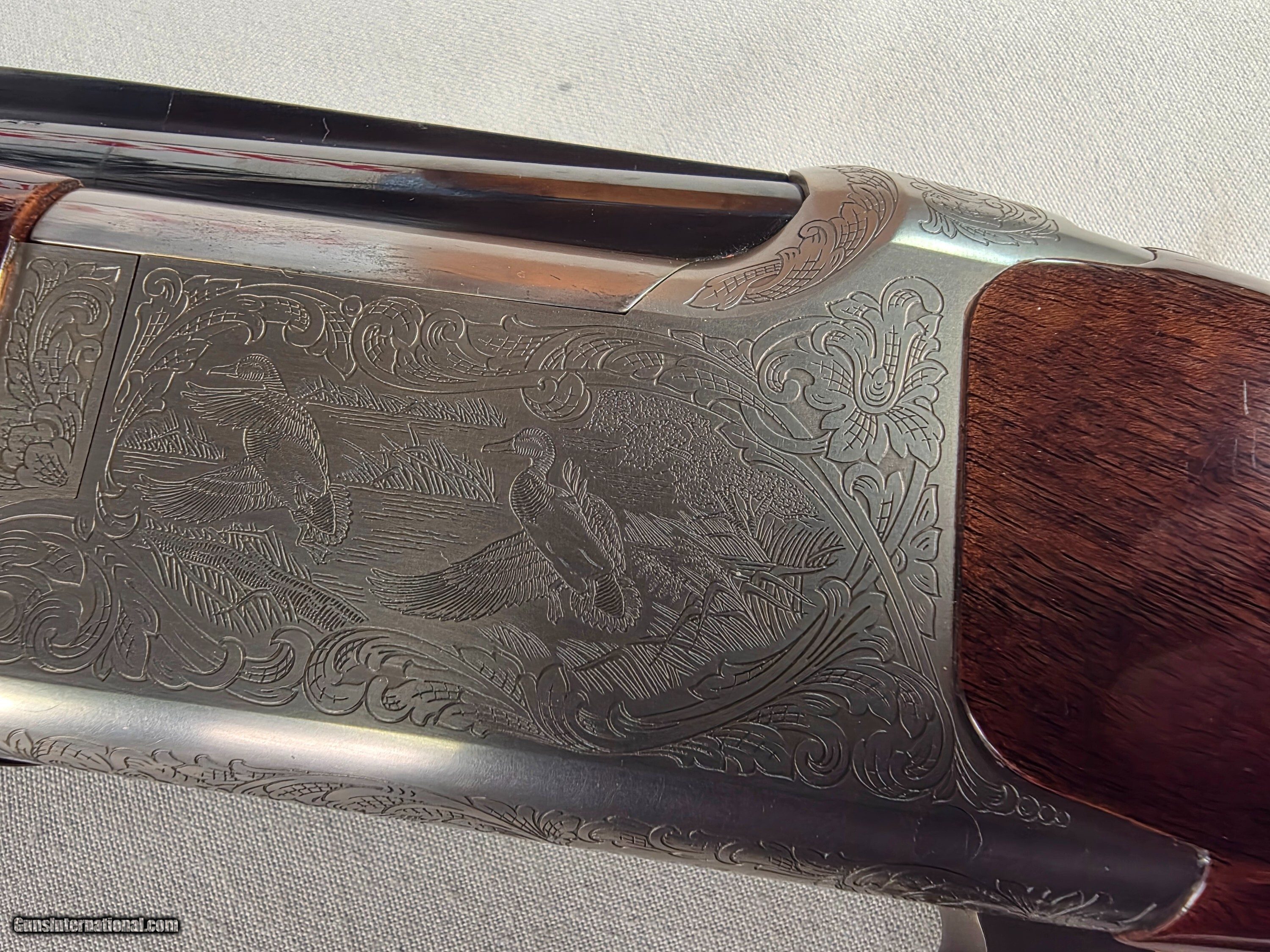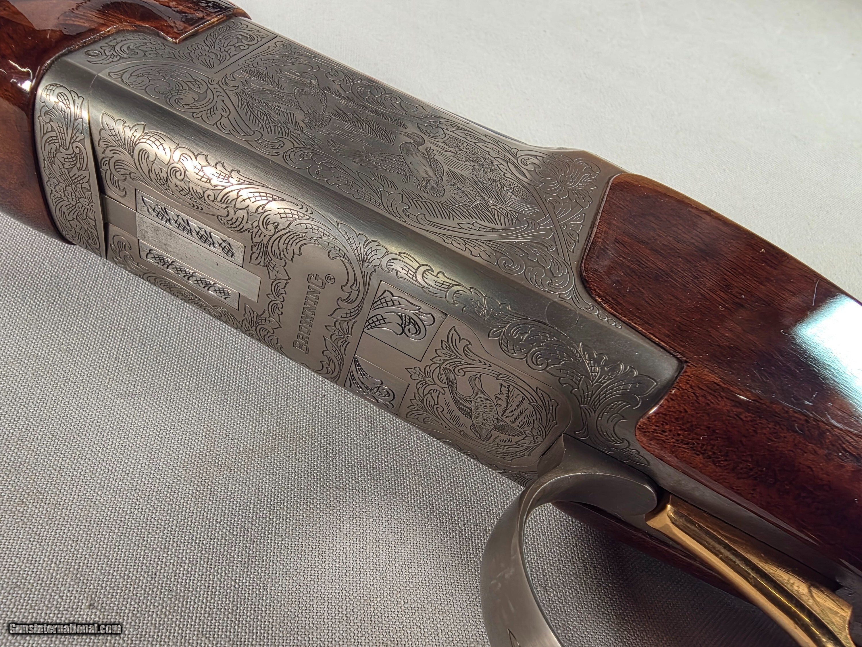 9235 Browning Citori Lighting Grade III, 2 ¾ and 3”, 12 Gauge, 28” barrels, screw in invector plus (M/F), game scene engraved on receiver, Browning butt pad, front brass bead, round knob, AAA++ Walnut stock, single selective trigger, made in 2001. 14 ½ LOP, More pictures at dawsonsdoubles DOT COM
