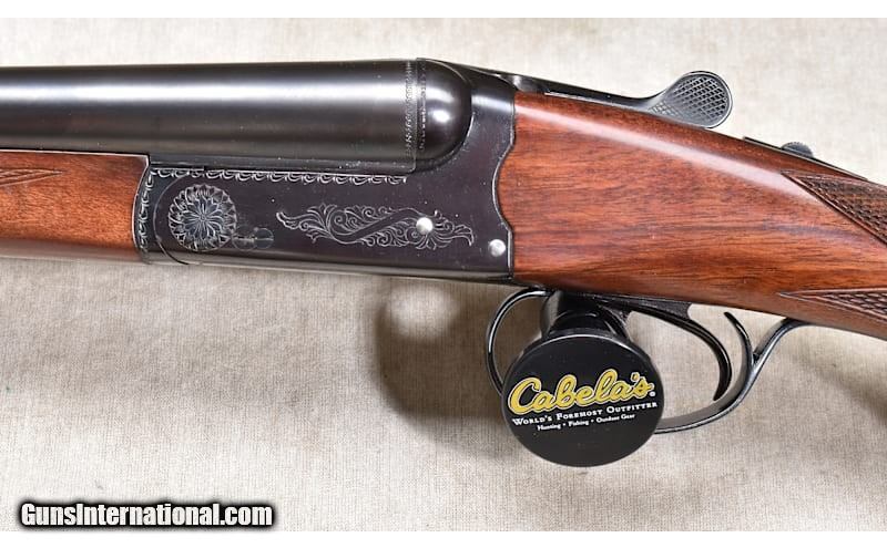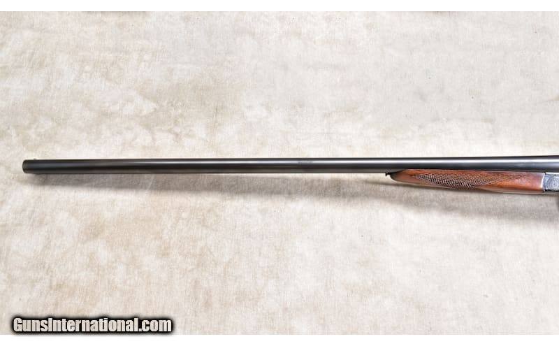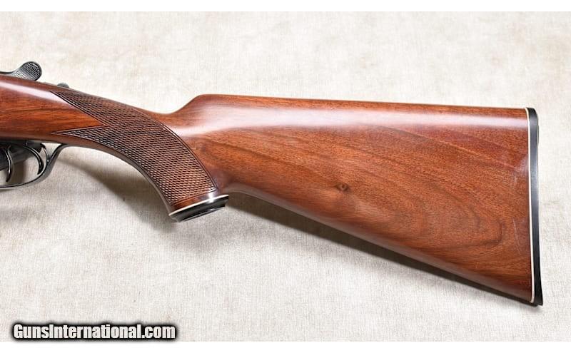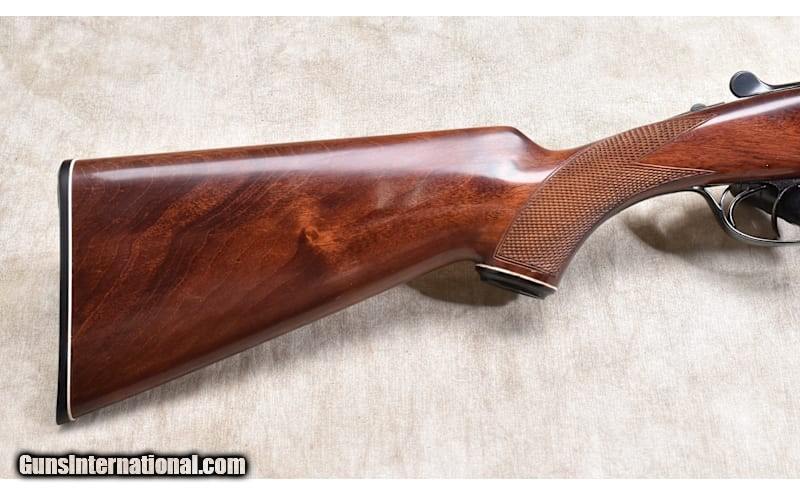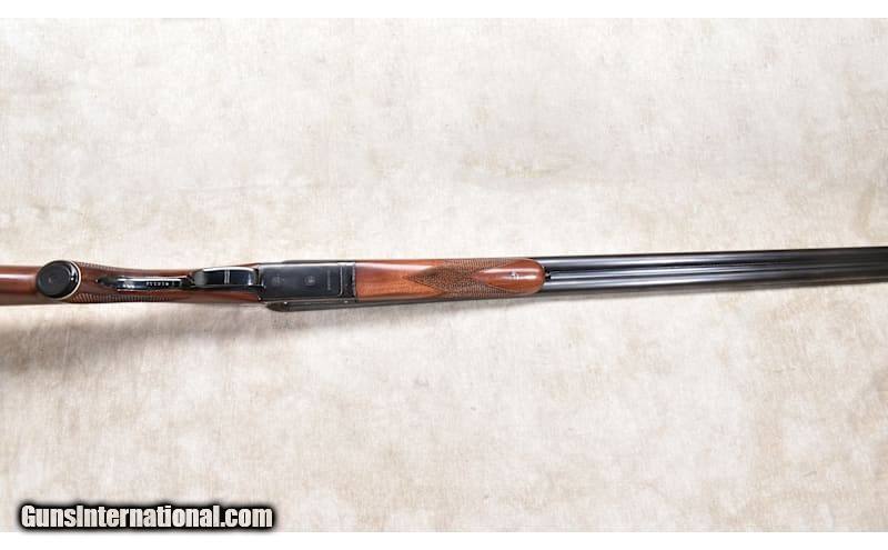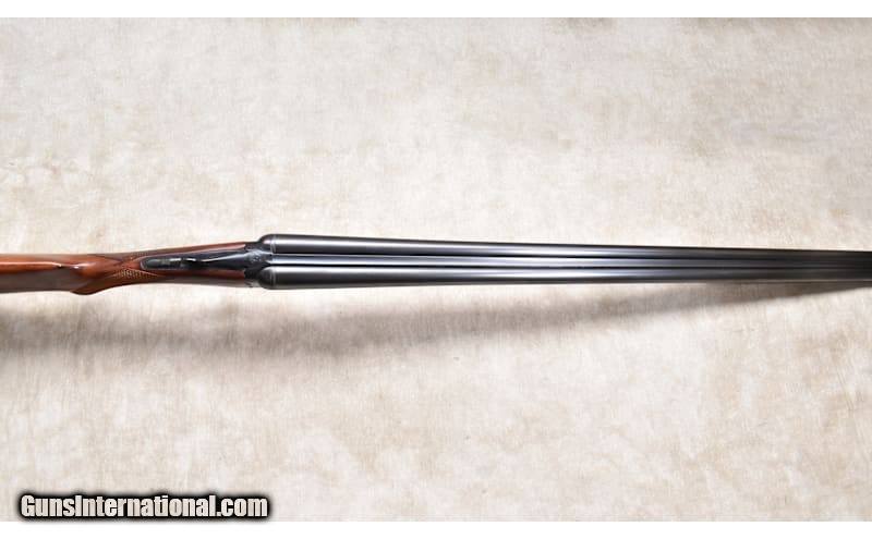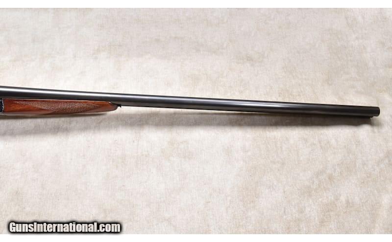 Description: This very traditional side by side favors the B/SS that followed it. It has nice wood, sharp checkering, and a bright bore. The action is tight on the hinge pin, and it closes tight to the face. In truth, it has been used enough to be 'broken in" but has a lot of shooting left in it. 20 Gauge Chambers: "2 rounds, 20 gauge, 2-3/4 or 3-inch Metal Condition: Very good. There is a patch on the barrel. It looks like a "bloody thumbprint" mark. See photo. Wood Condition: Very good. A few shallow scratches. Bore Condition: Shiny and bright Barrels: 28 inches Triggers: Factory double triggers Stock Dimensions: LOP: 13-3/4 inches Fore End: Matching walnut splinter. Butt Pad: Black plastic plate. Weight: 6 lb - 2 oz Sights: Silver bead Chokes: Fixed Modified and Full Item Location: Rogers Price: $1,799.99 Contact Seller |