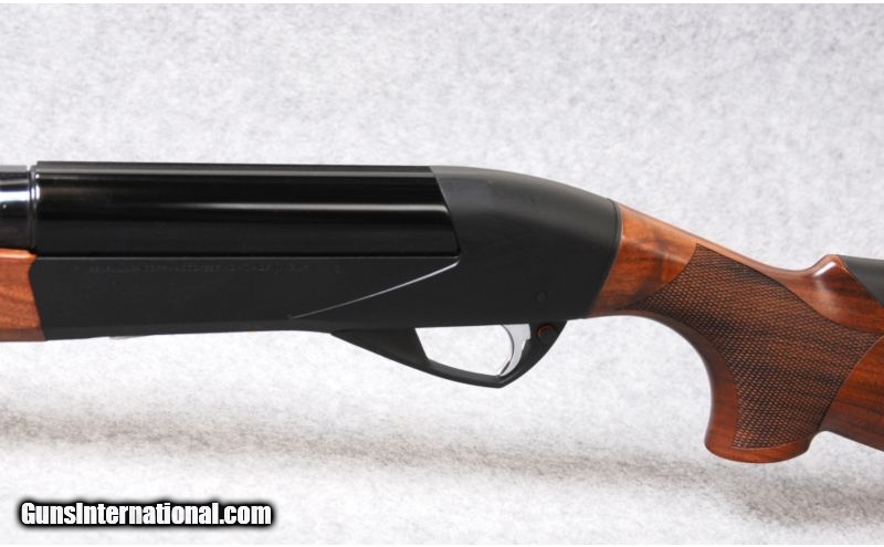 Description: SOLD Caliber Info: 12 gauge. Chambers: 3" chamber. Metal Condition: Black receiver, silver bolt, push-button bolt release, rear trigger guard safety and receiver shims. Wood Condition: Excellent Bore Condition: Excellent. Barrels: 26" barrel with a narrow, serrated surface, graphite, vent rib. Triggers: Pull. Stock: Dark walnut stock with a checkered pistol grip and soft comb insert. Stock Dimensions: LOP: 14 1/4". Fore End: Long, wrap-around checkered fore end. Butt Pad: Progressive Comfort", 1" recoil pad. Sights: Fiber optic front sight and metal center bead. Chokes: Screw-ins. Extras: Comes with the original Benelli hard gun case with tubes and accessories. Item Location: Kansas City, KS |