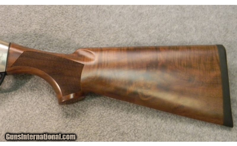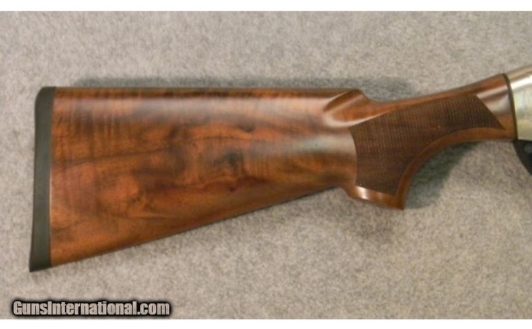 Description: This is a pre-owned Benelli Legacy in 20 gauge. It has a 3 inch chamber, 26 inch vent rib barrel with 1 flush choke tube (Imp Cyl), 4 extended choke tubes (Cyl - Imp Mod - 2 Mod), and red bar front sight with bead mid-sight. It has a 4 shot magazine, engraved nickel finished alloy receiver, cartridge drop lever, select AA checkered walnut stock and forearm, a stock shim kit. This shotgun is in very good condition, it does have a small dent in the left side of the stock and a couple of small scratches on the right. SOLD Manufacturer: 2013 Caliber Info: 20 Gauge Chambers: 2 3/4" - 3 Metal Condition: Shows little to moderate signs of use. Wood Condition: Shows little to moderate signs of use. Bore Condition: Clean and bright. Barrels: 26 Triggers: Gold plated Stock: Checkered AA-Grade satin walnut. Stock Dimensions: LOP=14 1/4 Fore End: Checkered AA-Grade satin walnut. Butt Pad: Factory Benelli recoil pad. Weight: 5.6 lbs Sights: Mid bead and red bar front. Chokes: Crio chokes Extras: Comes with factory case, choke wrench, oil, shims and spacers, manual, 1 flush Imp Cyl choke tube, and 4 extended choke tubes(Cyl - Imp Mod - Mod - Mod). Item Location: Glendale, AZ |